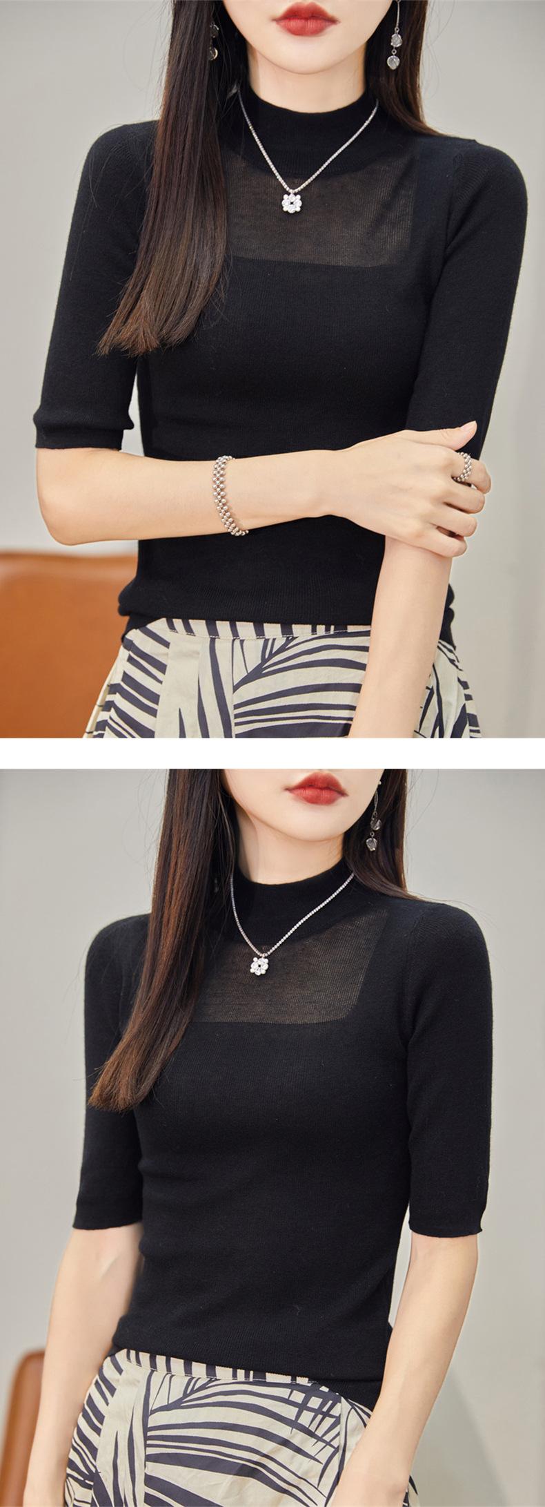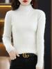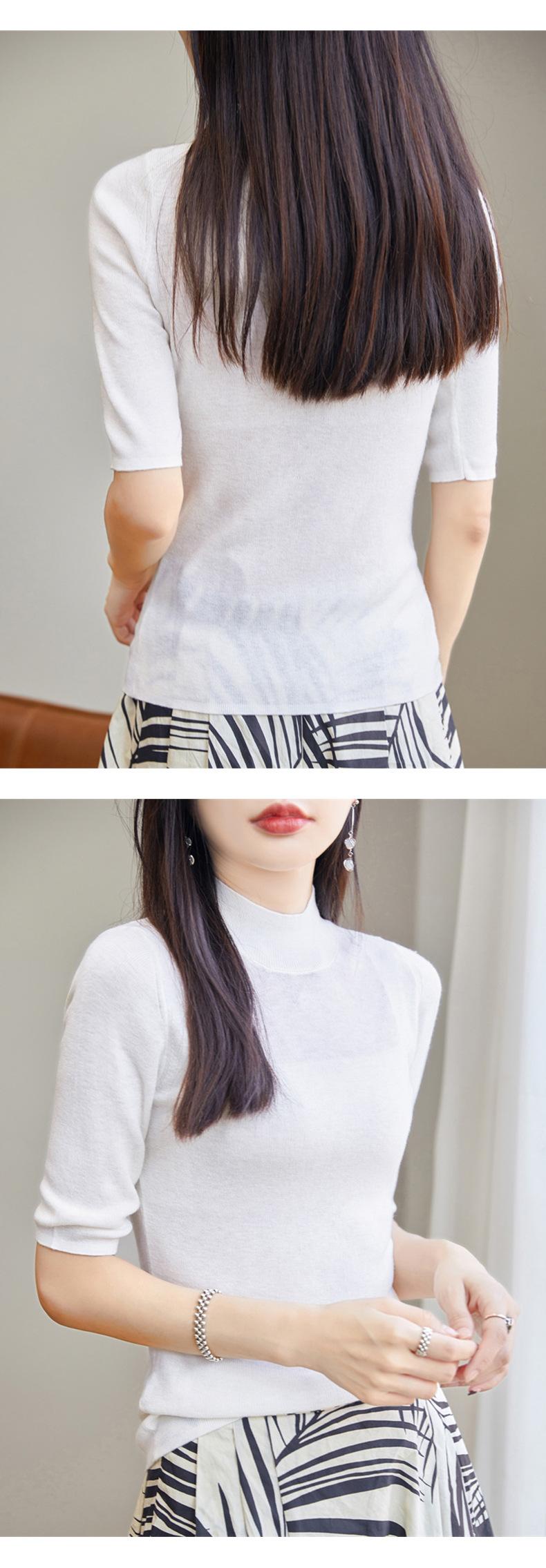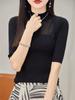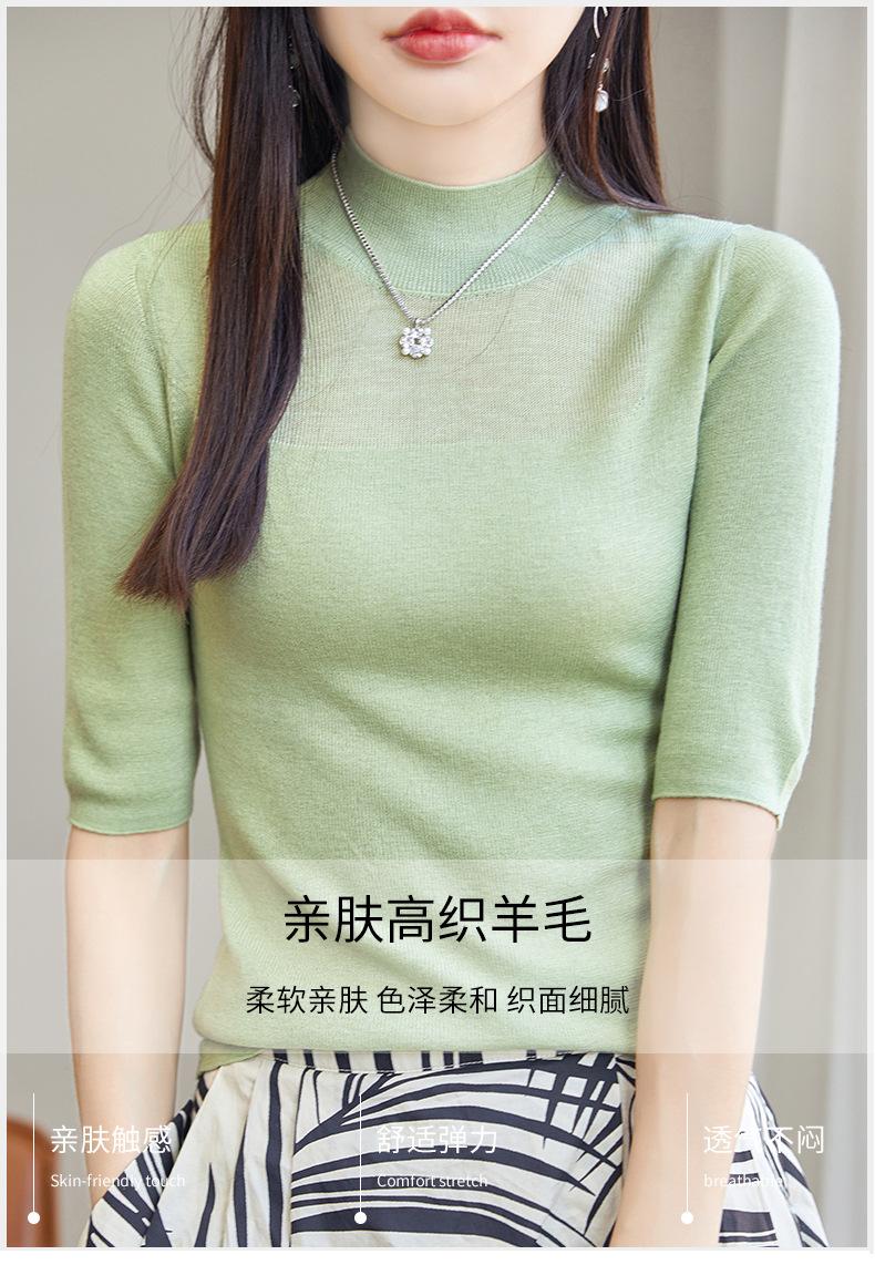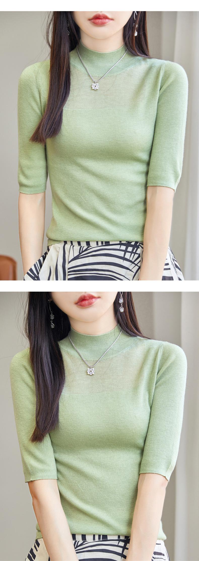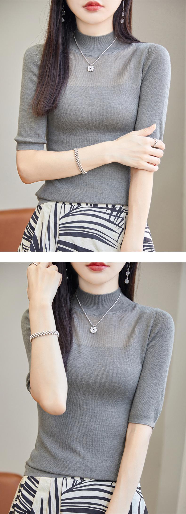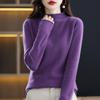 Jersey de punto de lana peinada con cuello alto para mujer, manga media, color liso, elegante, informal, sencillo, ajustado.