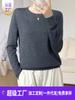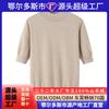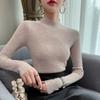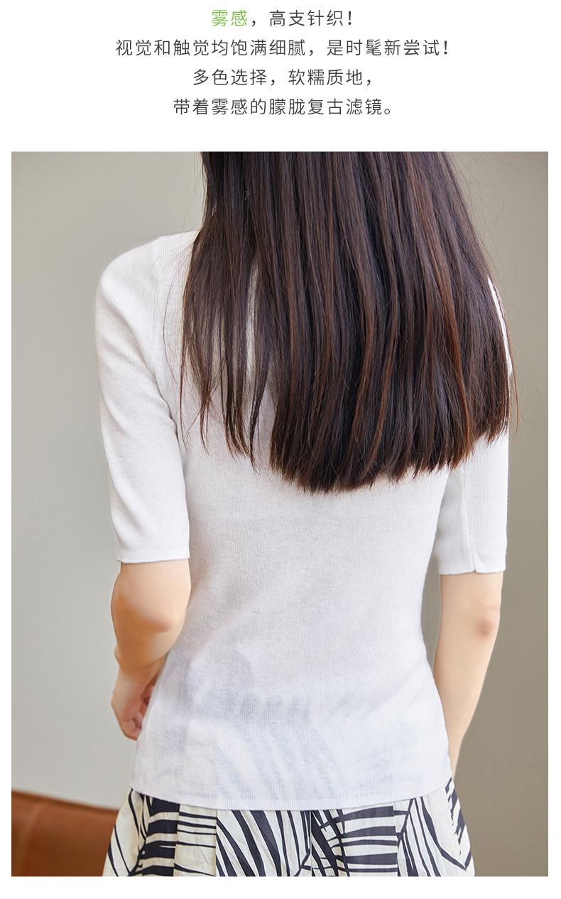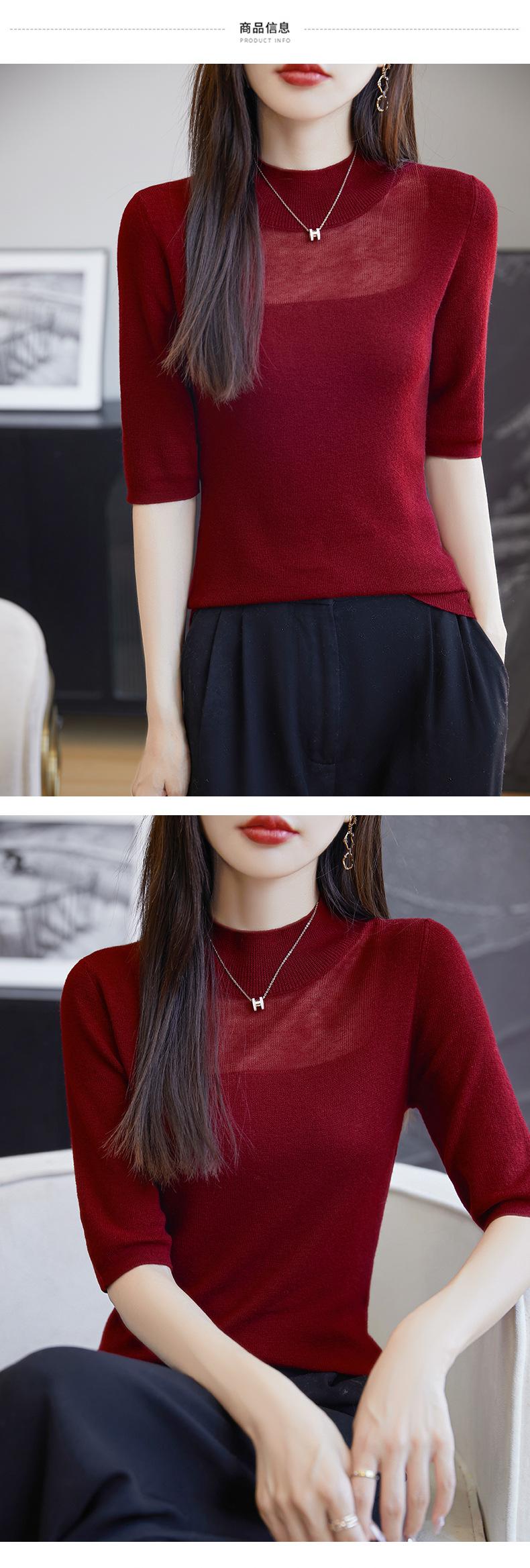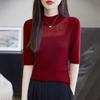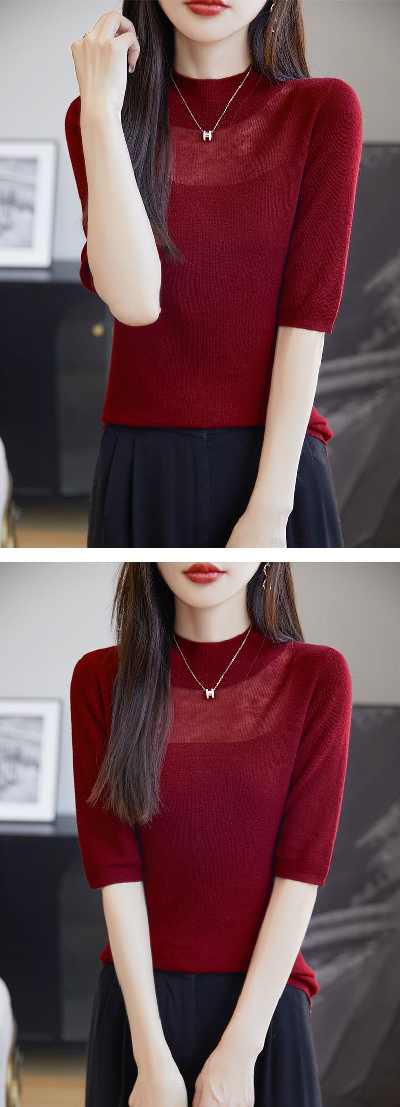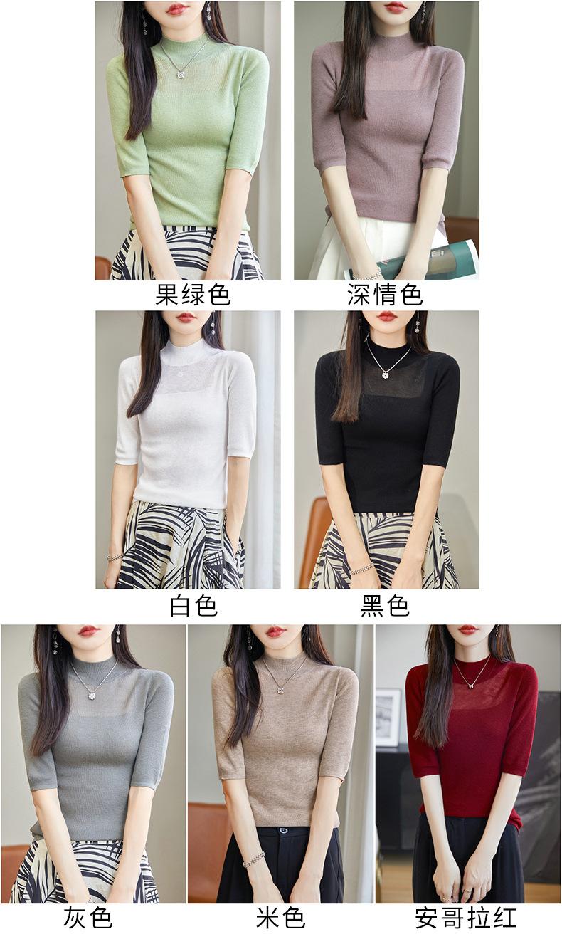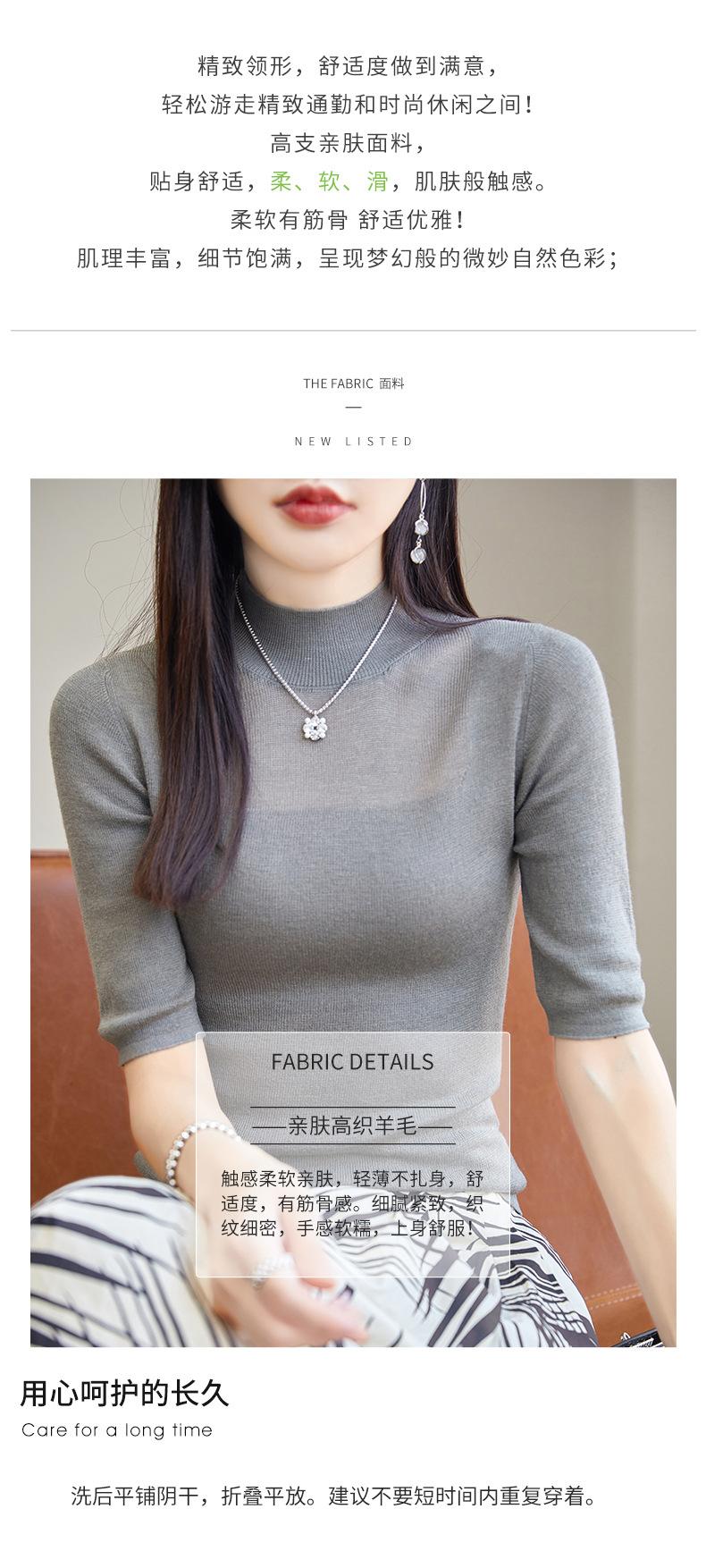 Jersey de punto de lana peinada con cuello alto para mujer, manga media, color liso, elegante, informal, sencillo, ajustado.