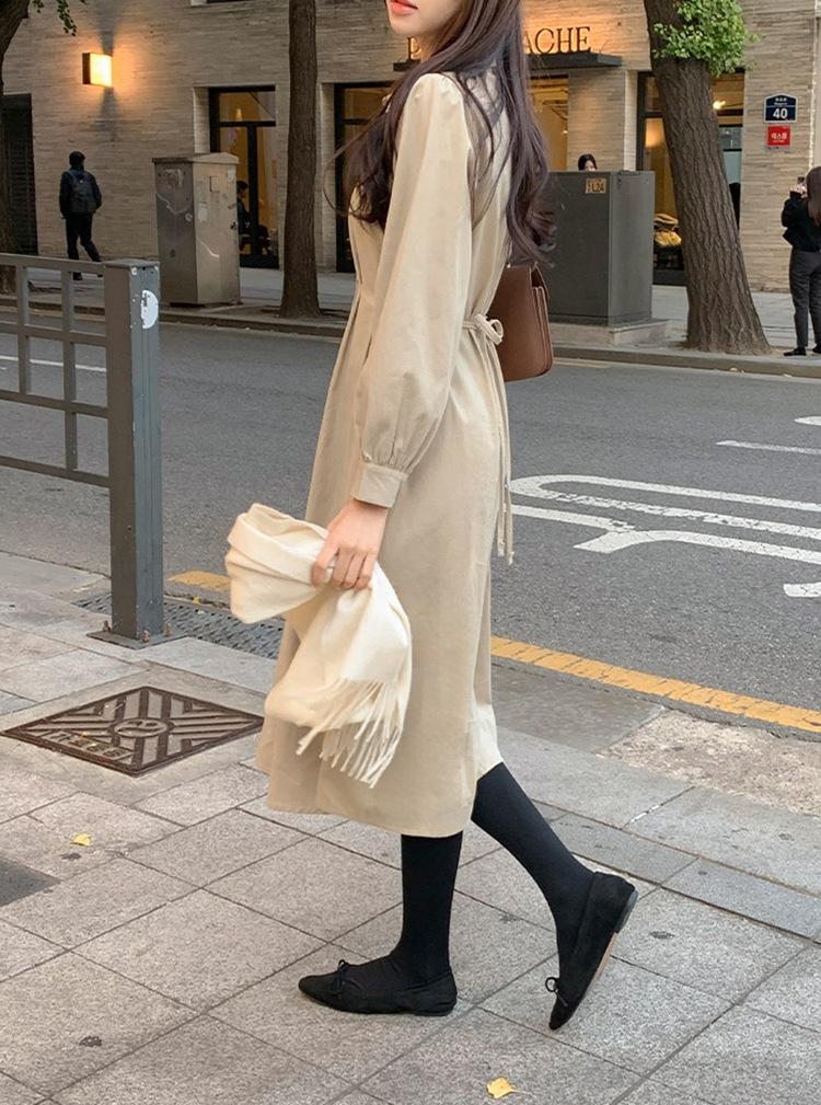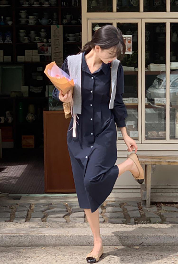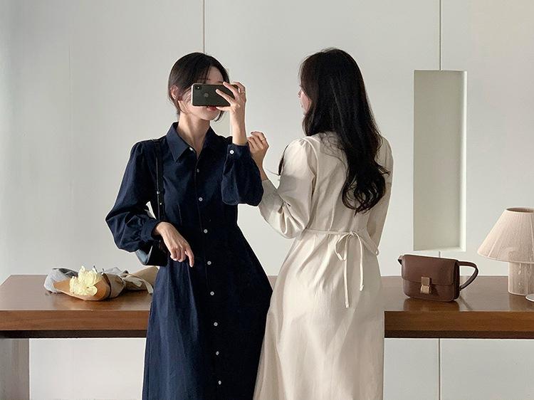 Vestido largo de algodón Lotte 2025, nuevo, japonés y coreano, primavera y verano, para mujer, suelto, con cordones