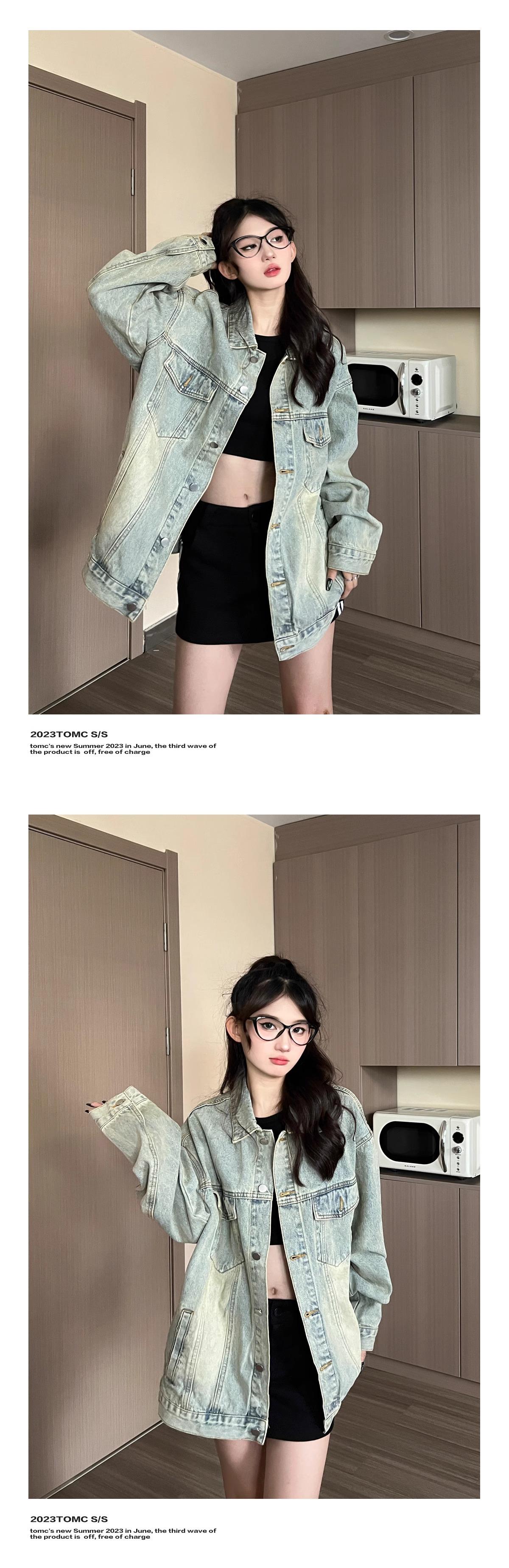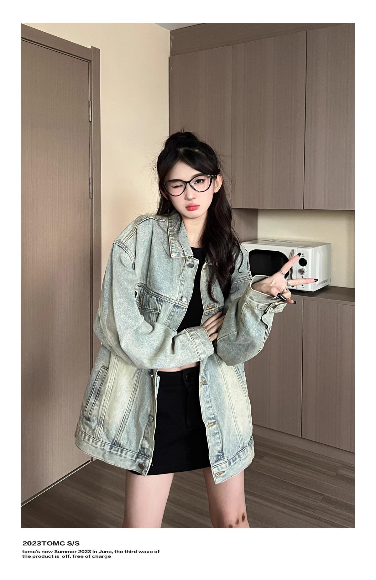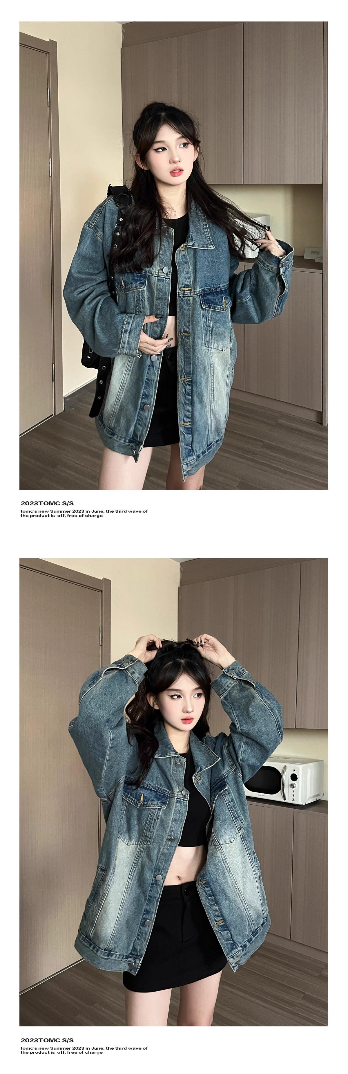 Chaqueta vaquera antigua para mujer, primavera y otoño, estilo coreano, retro, informal, estilo BF, chaqueta holgada de moda, tendencia insA2909