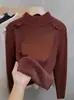 Suéter de terciopelo de una pieza con cuello semi-alto para mujer, camisa acolchada con forro polar, otoño e invierno 2024, nuevo suéter, chaqueta interior, marea