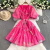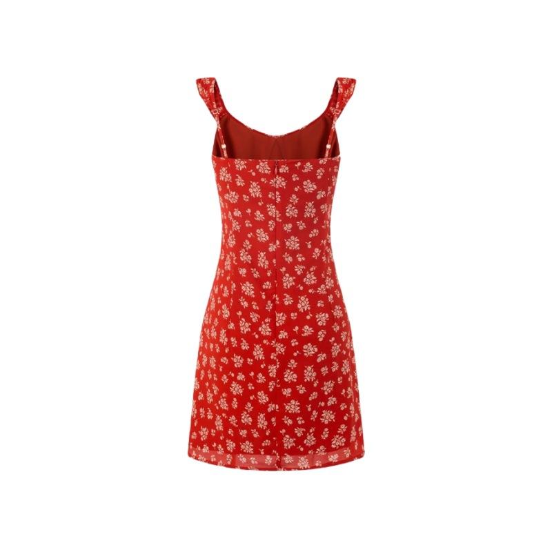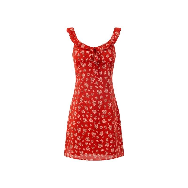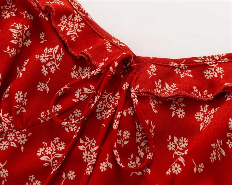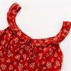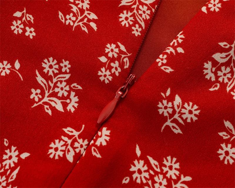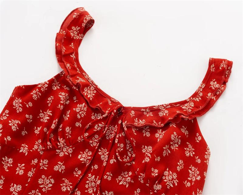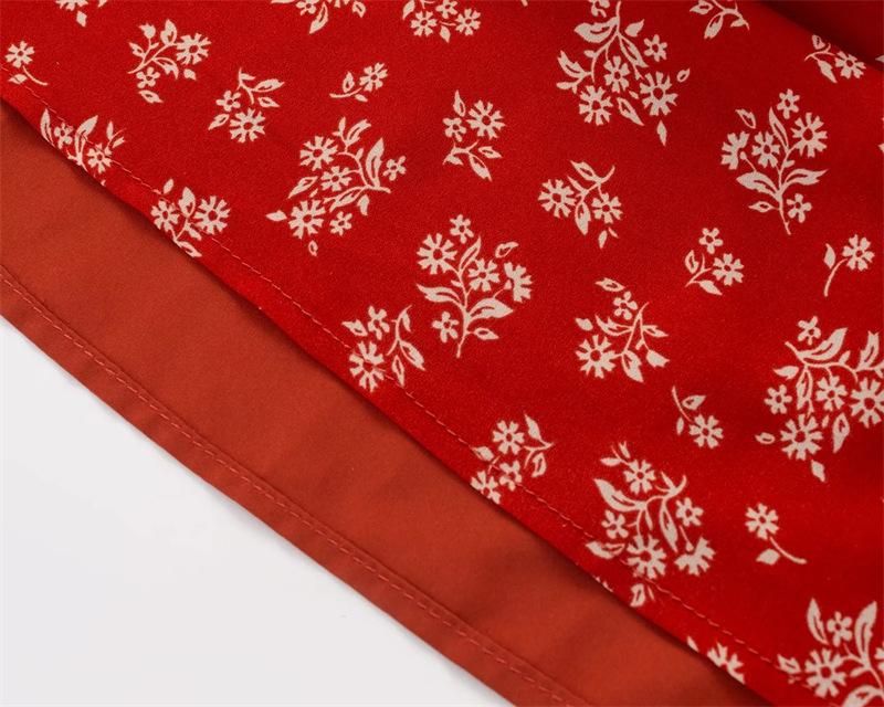 Falda floral roja retro de estilo francés con vestido lencero para mujer, recién llegada de verano, falda de corte A con cuello en V y cordones