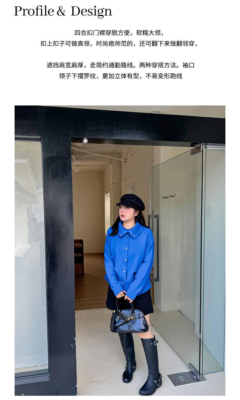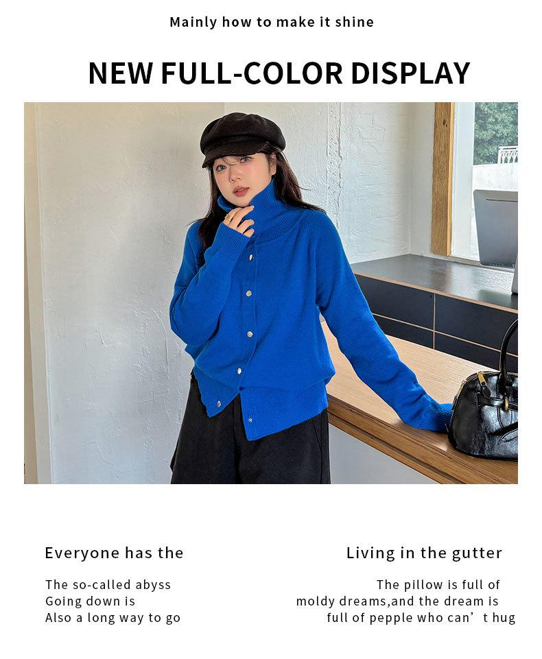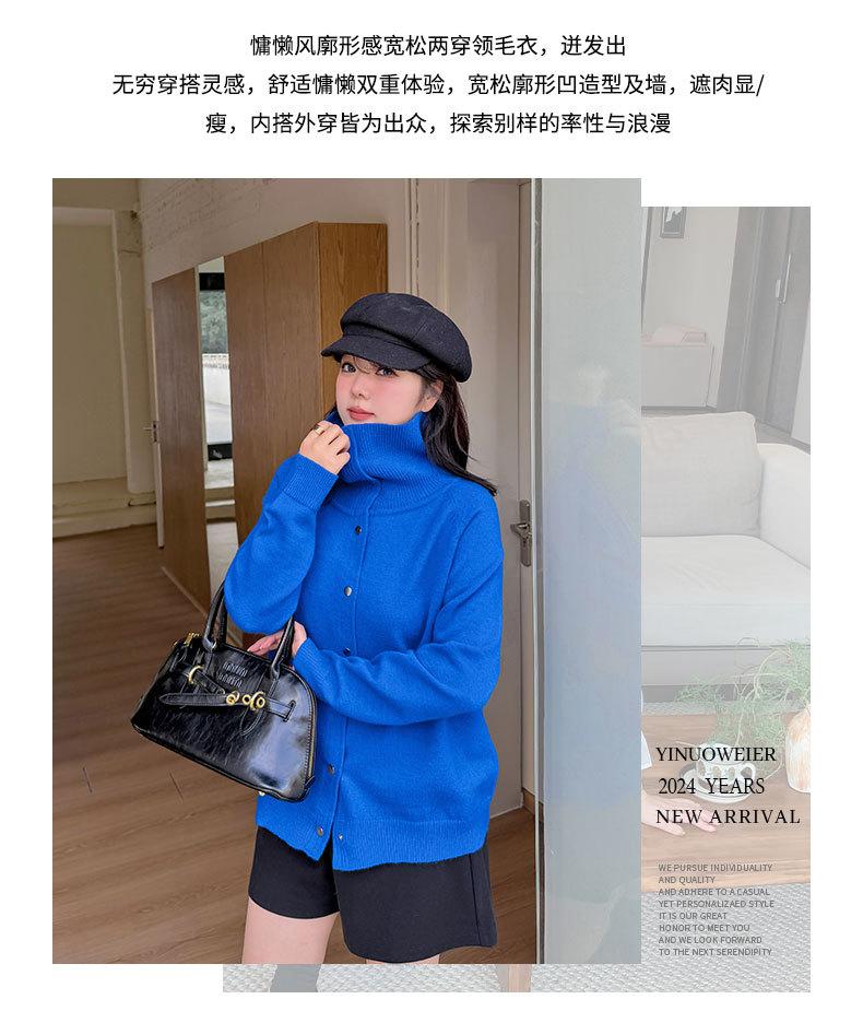 Cárdigan Inno Talla Grande para Mujer con Cuello Alto/Solapa Dos Usos Invierno Nuevo Look Adelgazante Top 442004