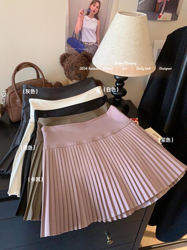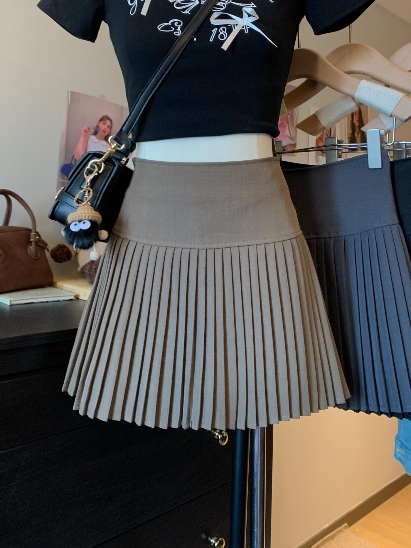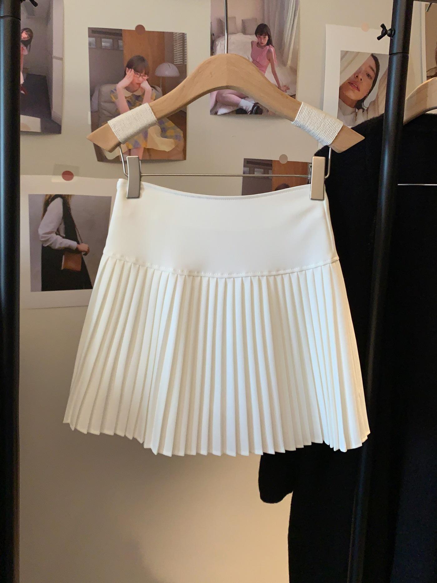 Foto Real Primavera y Verano Estilo Coreano Nuevo Traje Cintura Alta Falda Plisada de Mujer Versátil Antitransparente Falda Corta Línea A