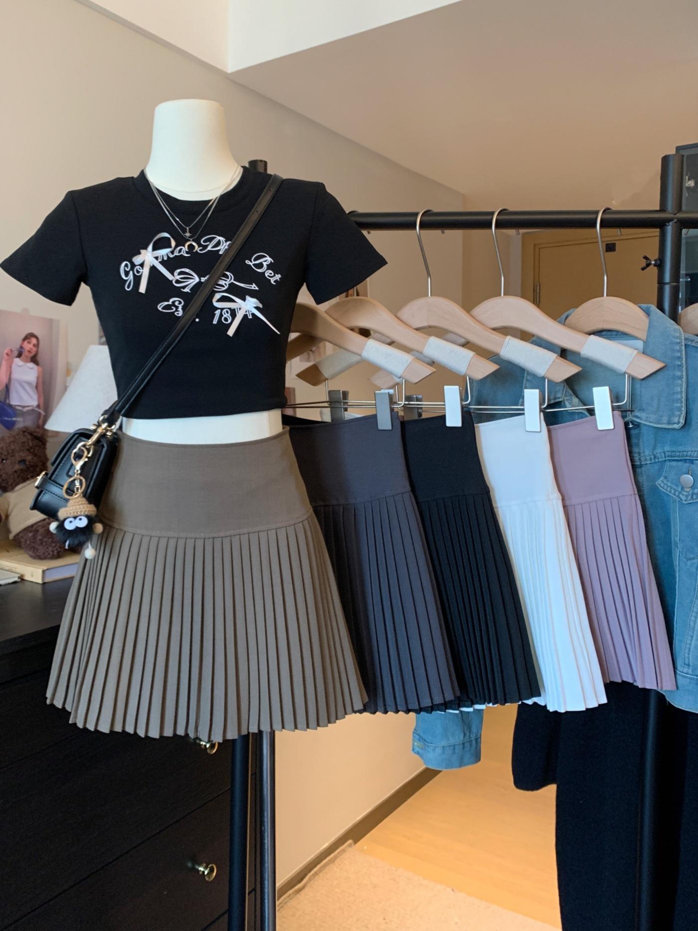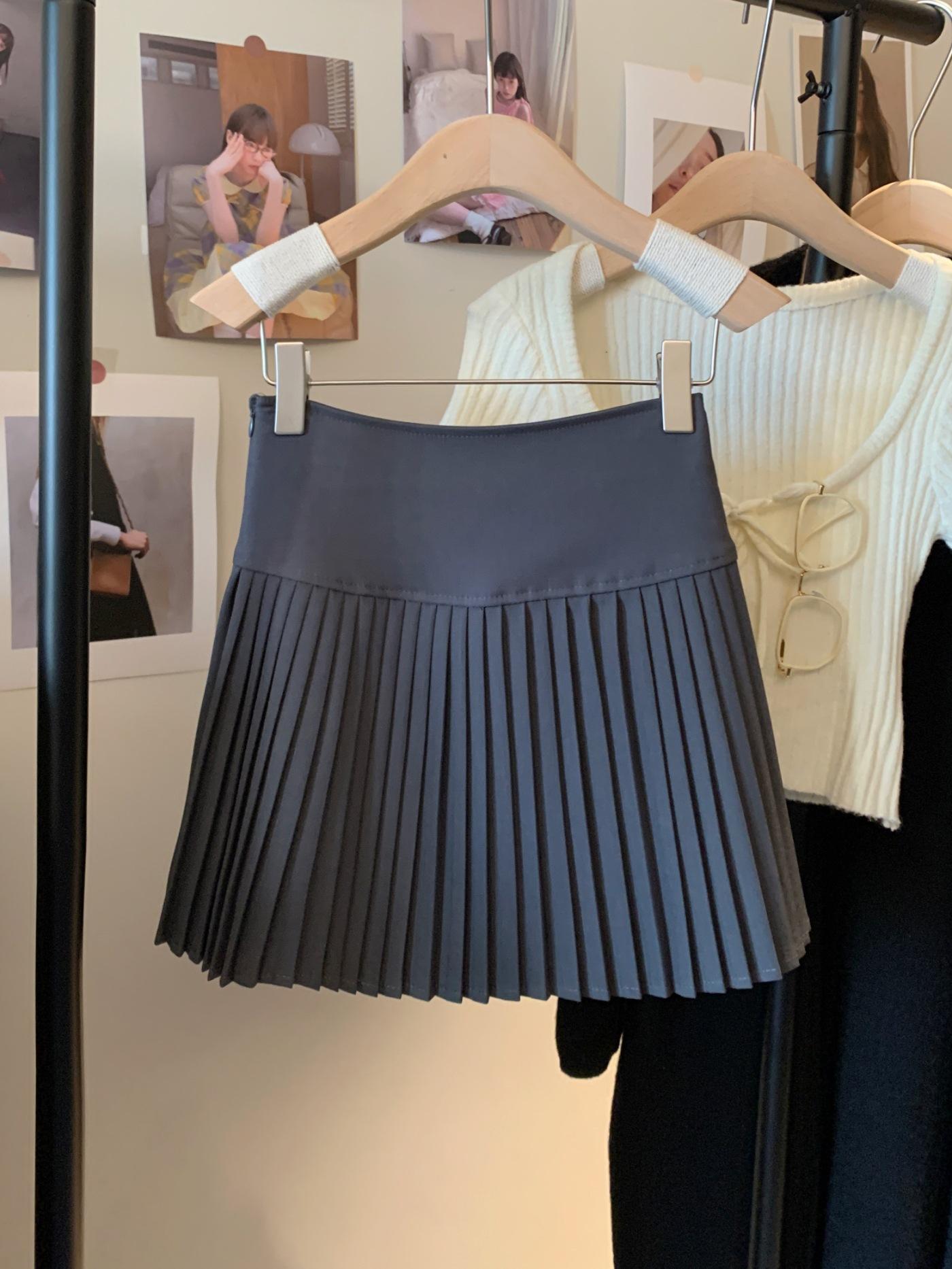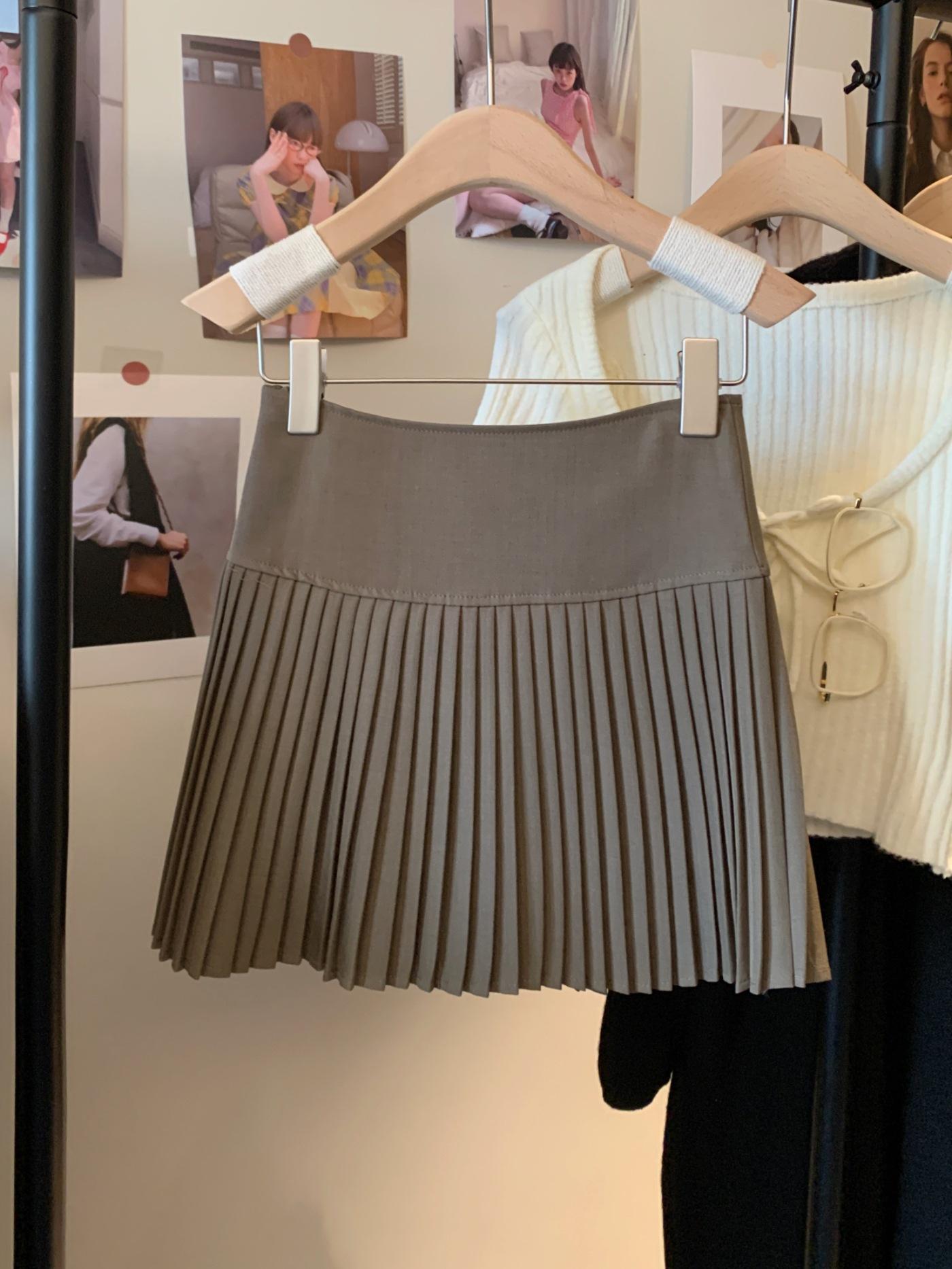 Foto Real Primavera y Verano Estilo Coreano Nuevo Traje Cintura Alta Falda Plisada de Mujer Versátil Antitransparente Falda Corta Línea A