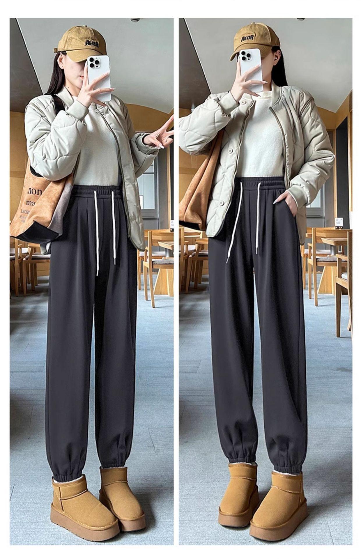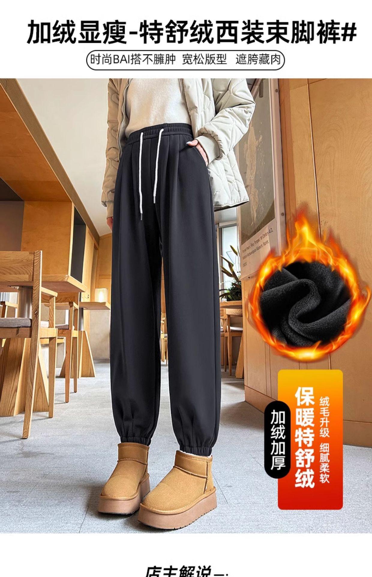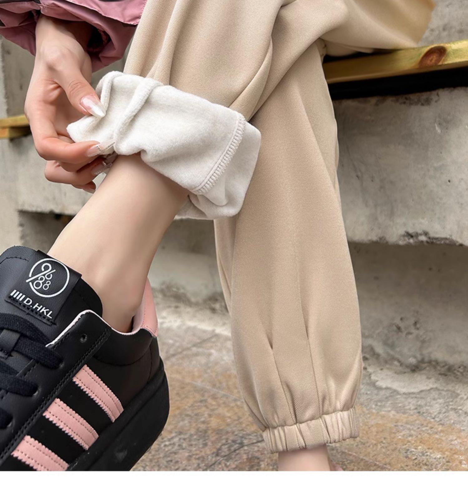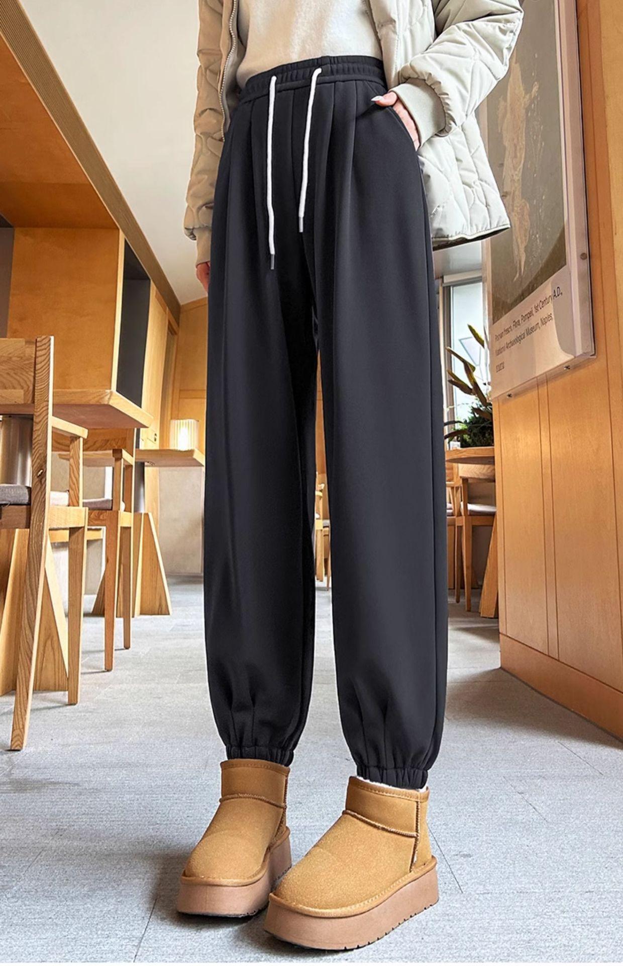 Pantalones de pierna gruesa con forro polar de talla grande para mujer 2024, pantalones bombachos casuales que combinan con todo para mujer, pantalones cálidos de otoño e invierno para chica gordita.