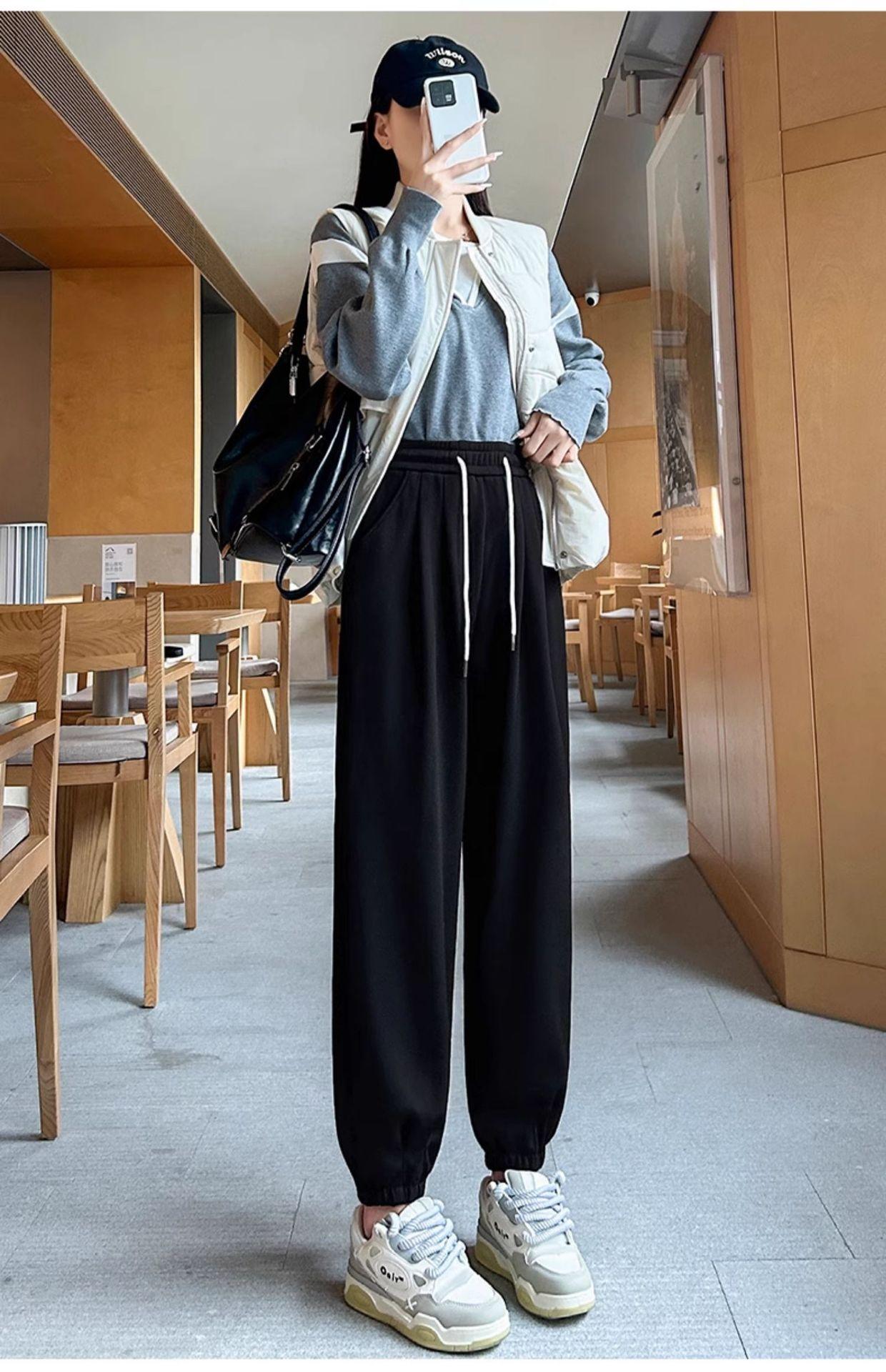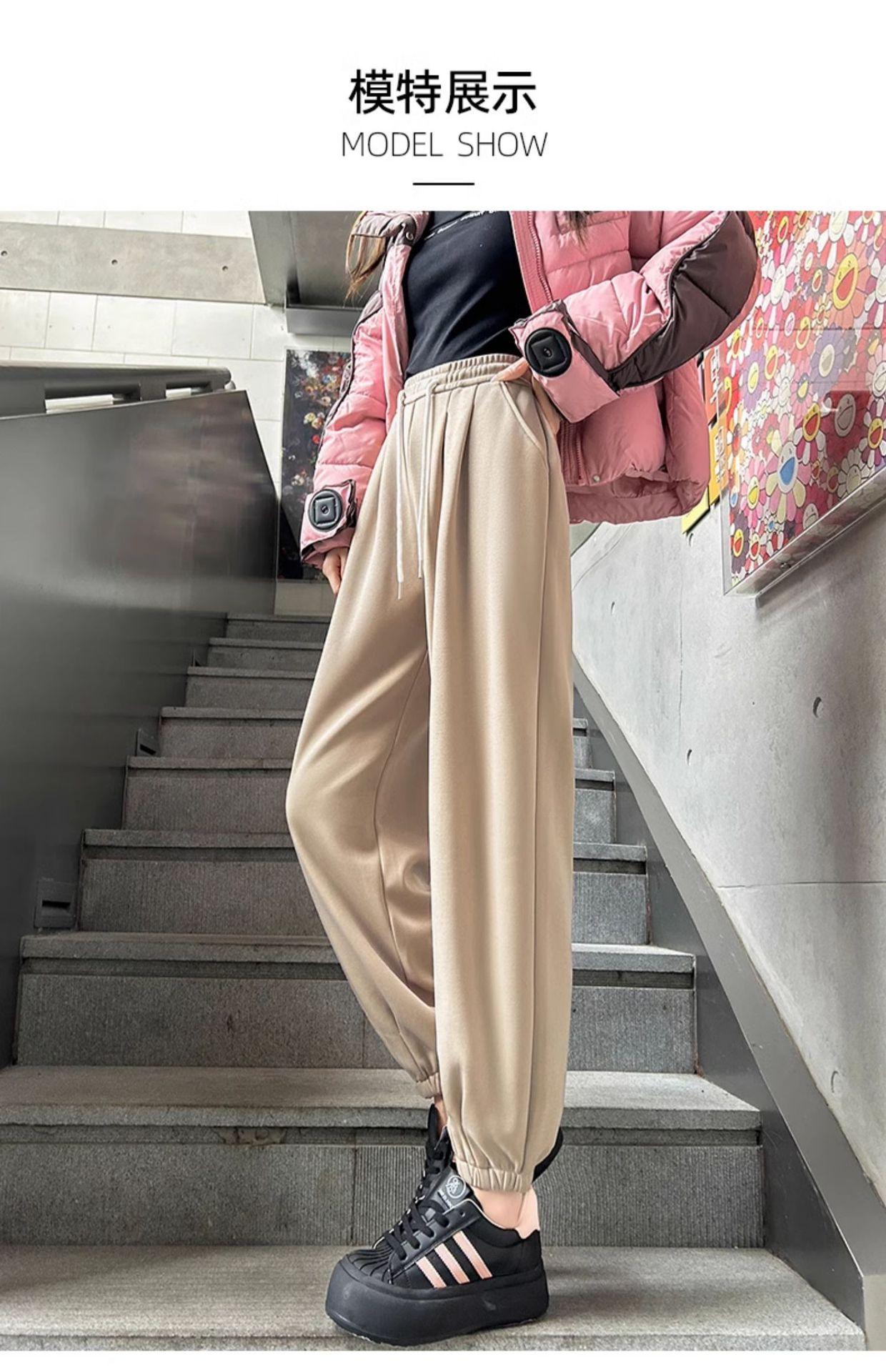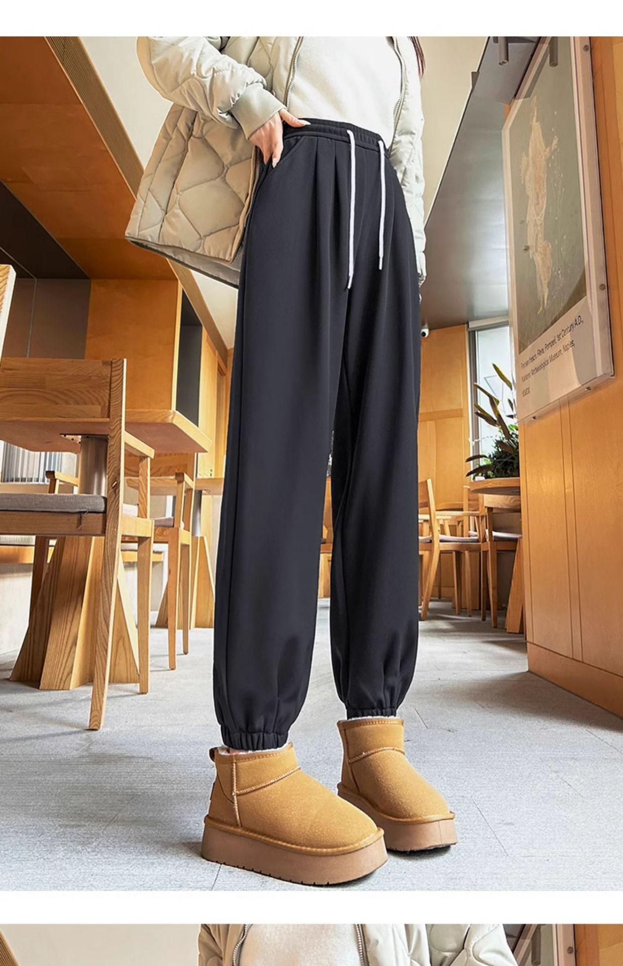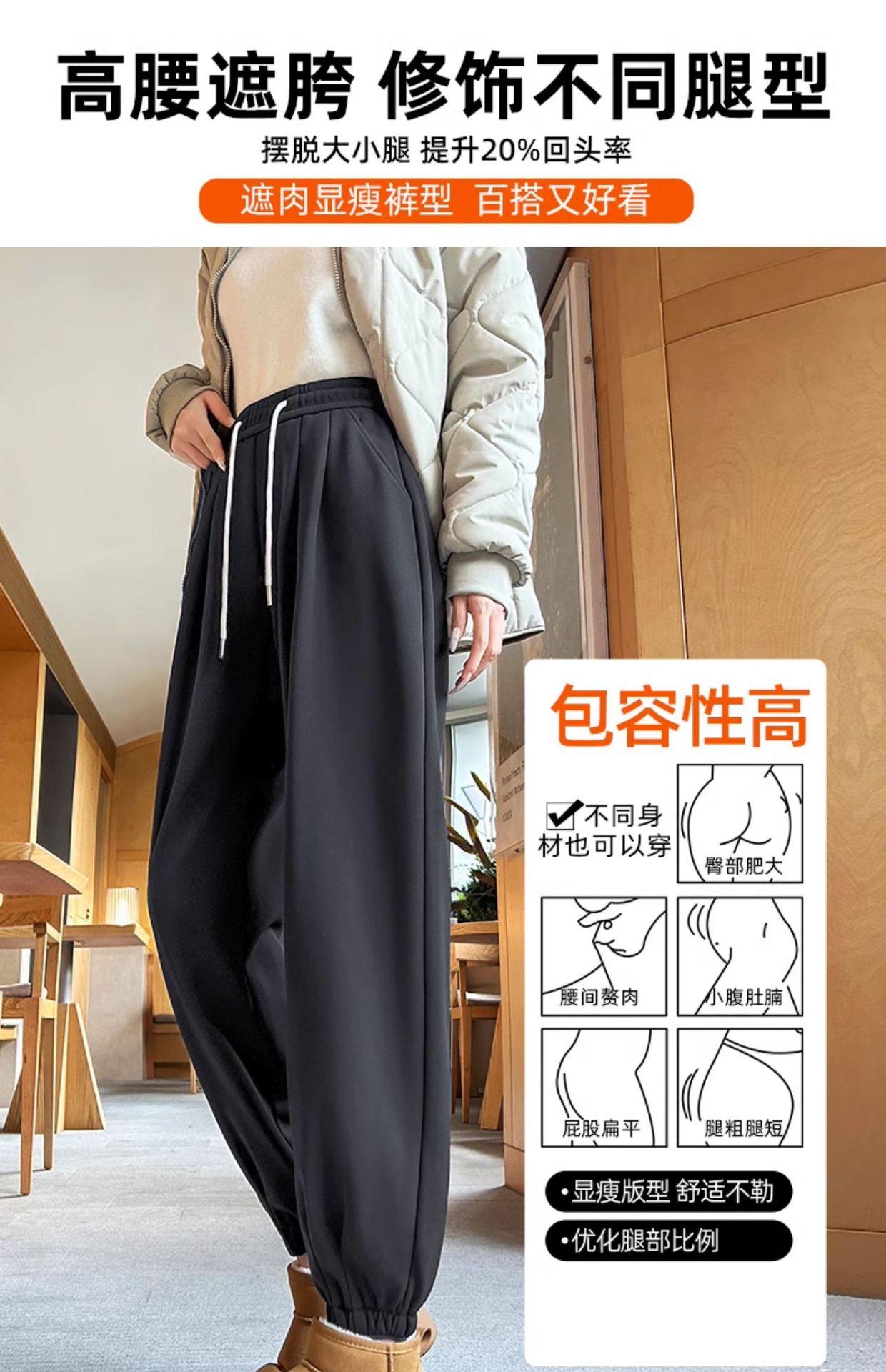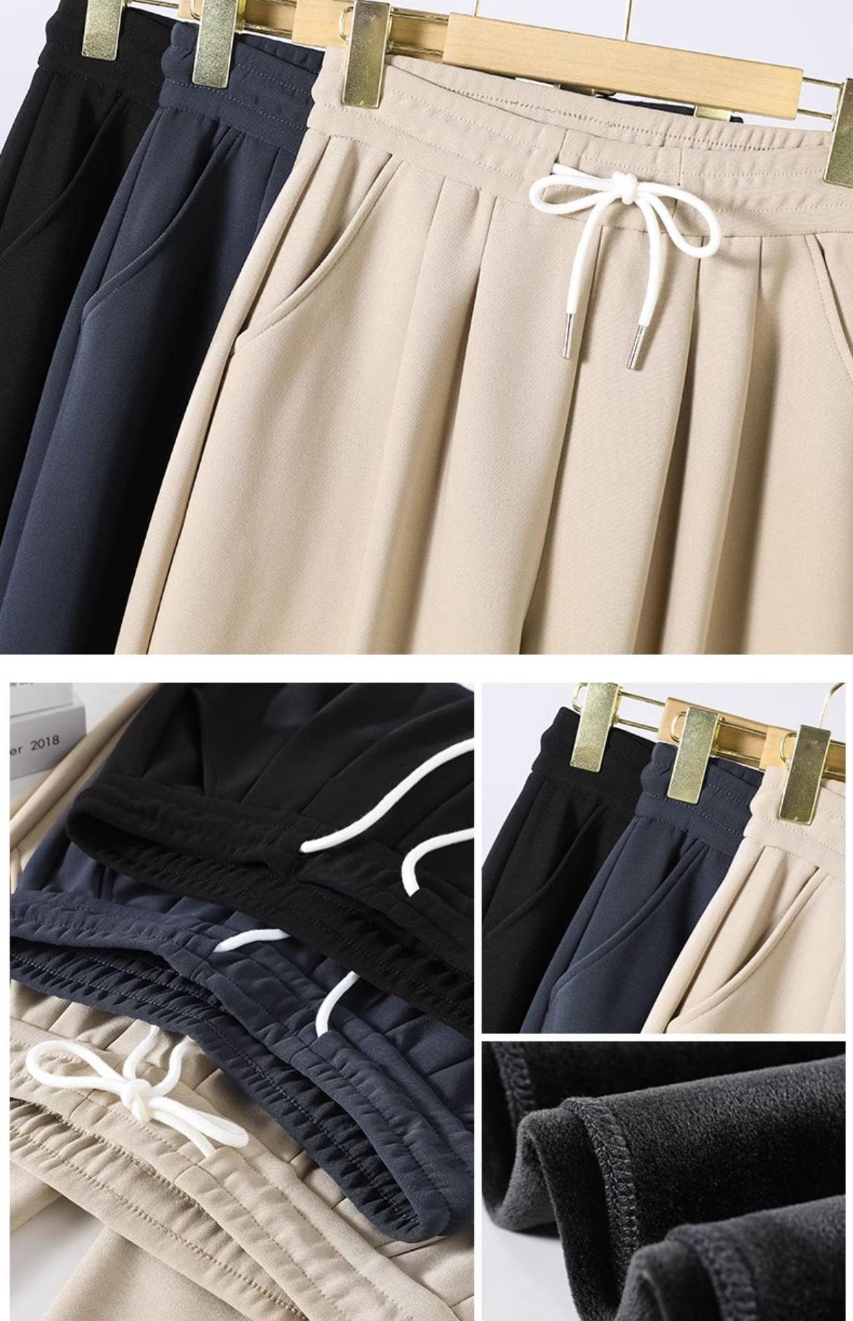 Pantalones de pierna gruesa con forro polar de talla grande para mujer 2024, pantalones bombachos casuales que combinan con todo para mujer, pantalones cálidos de otoño e invierno para chica gordita.