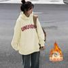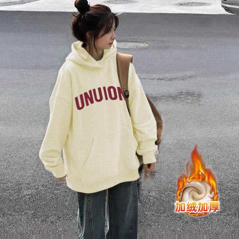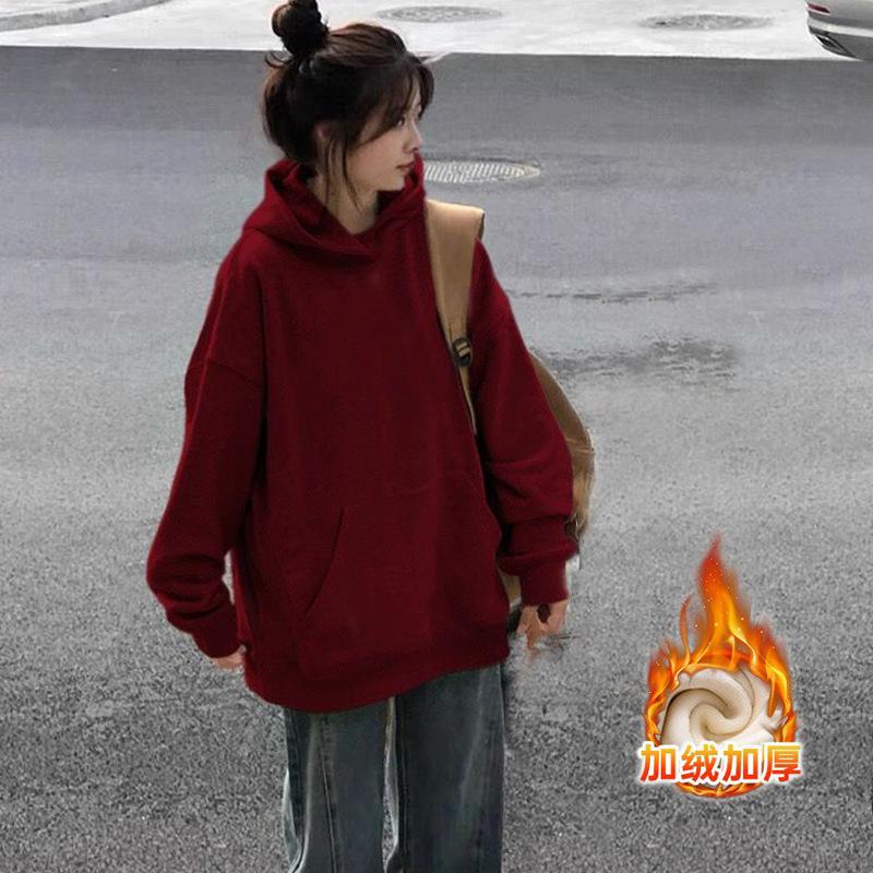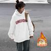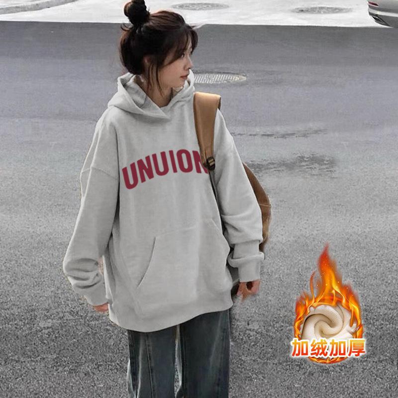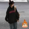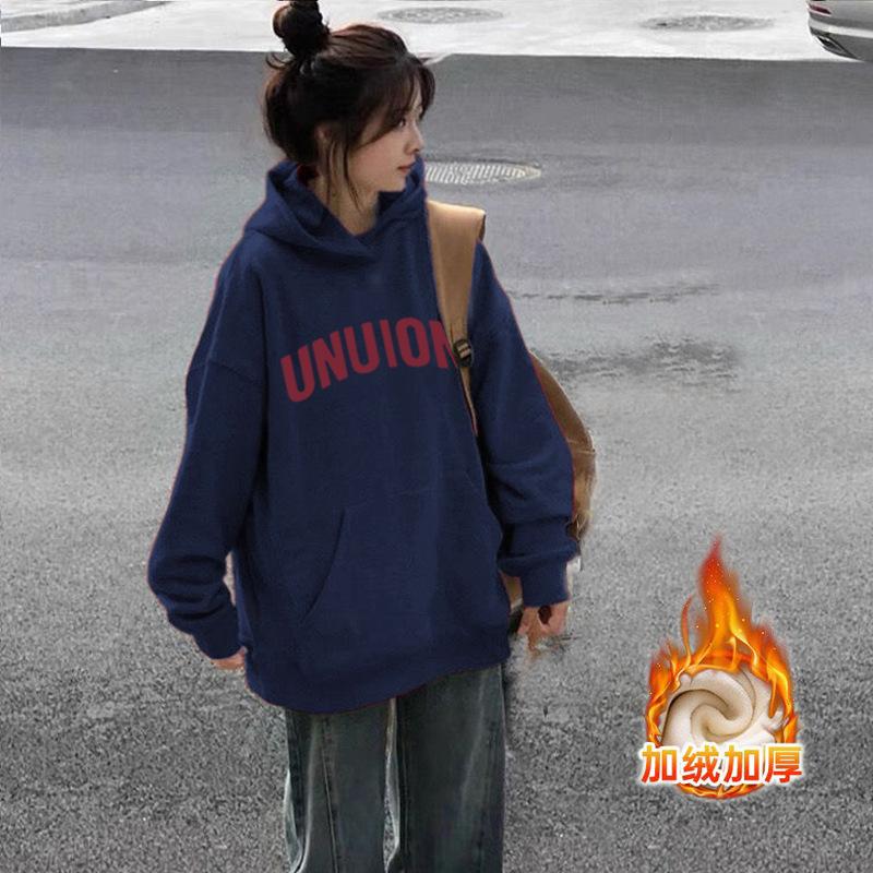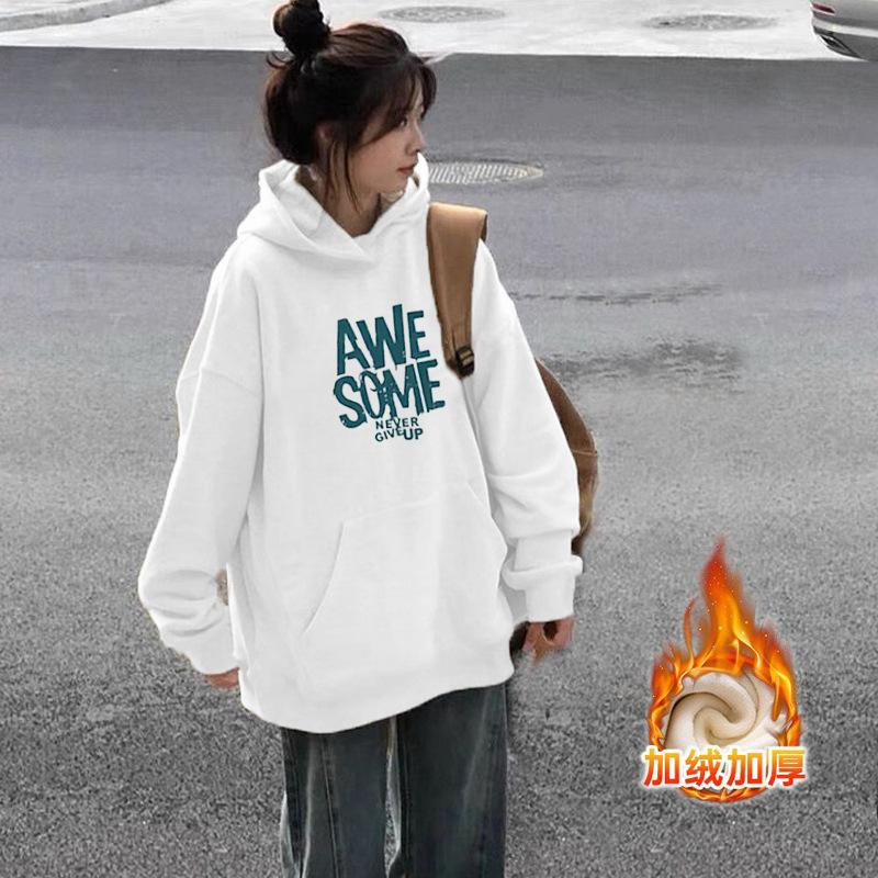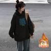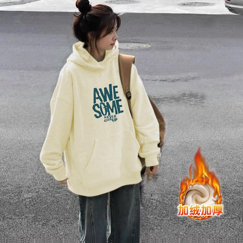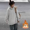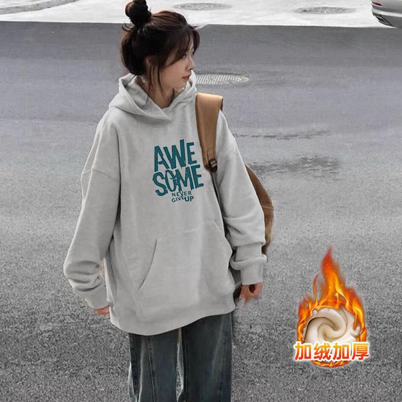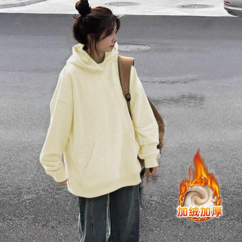 Sudadera con capucha para mujer, forrada de vellón, gruesa, para otoño e invierno, nueva, estilo coreano, talla grande, holgada, informal, cálida, combina con todo, chaqueta de moda.