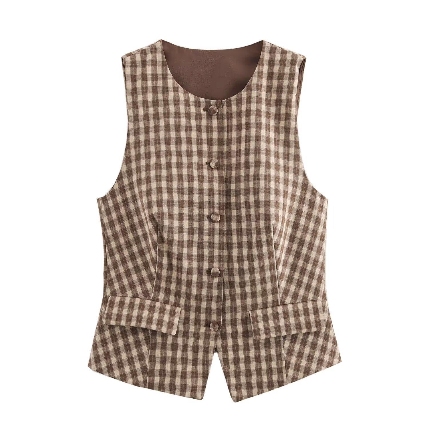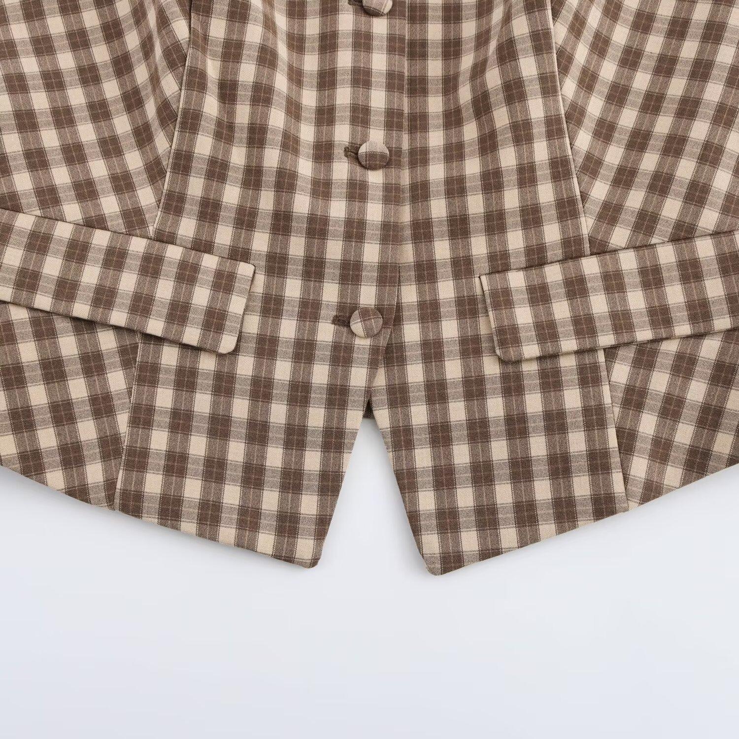 Traje de falda y pantalón con chaleco ajustado a cuadros para mujer europea y americana de comercio exterior transfronterizo de Amazon, primavera 2025
