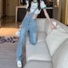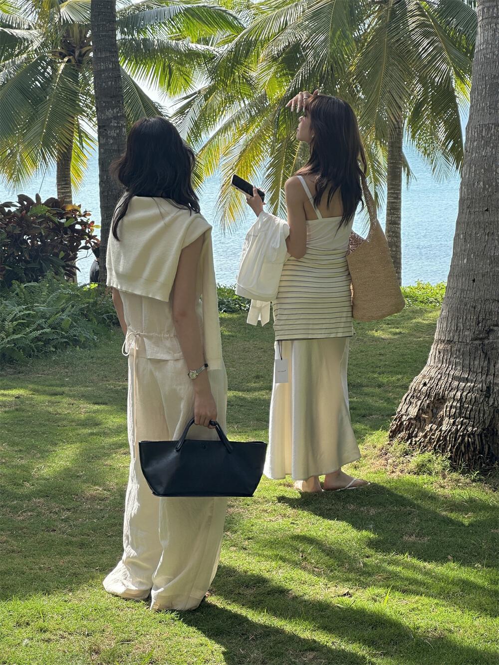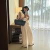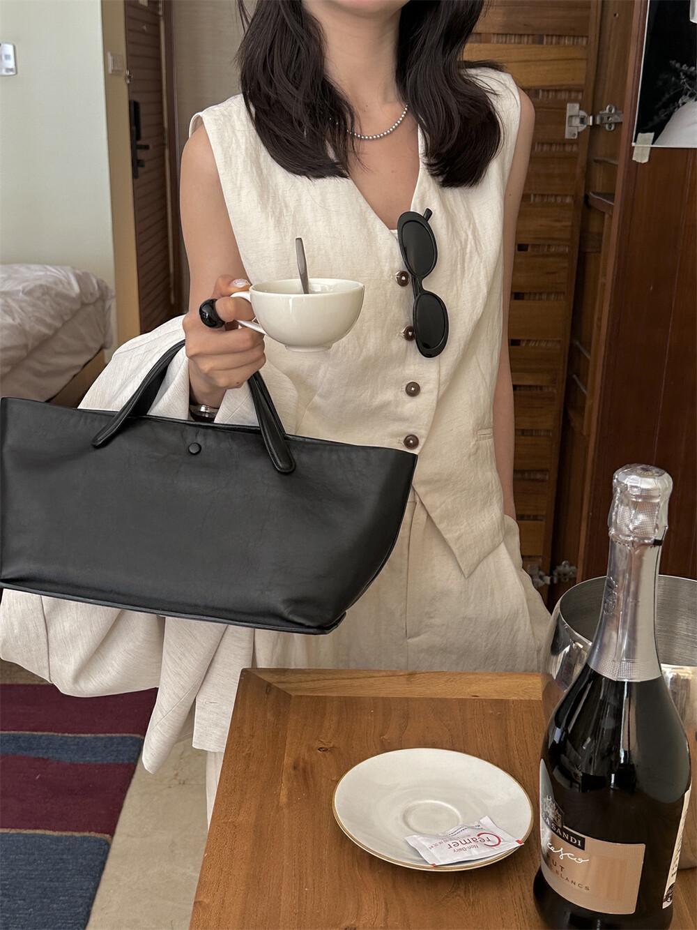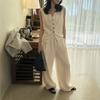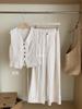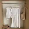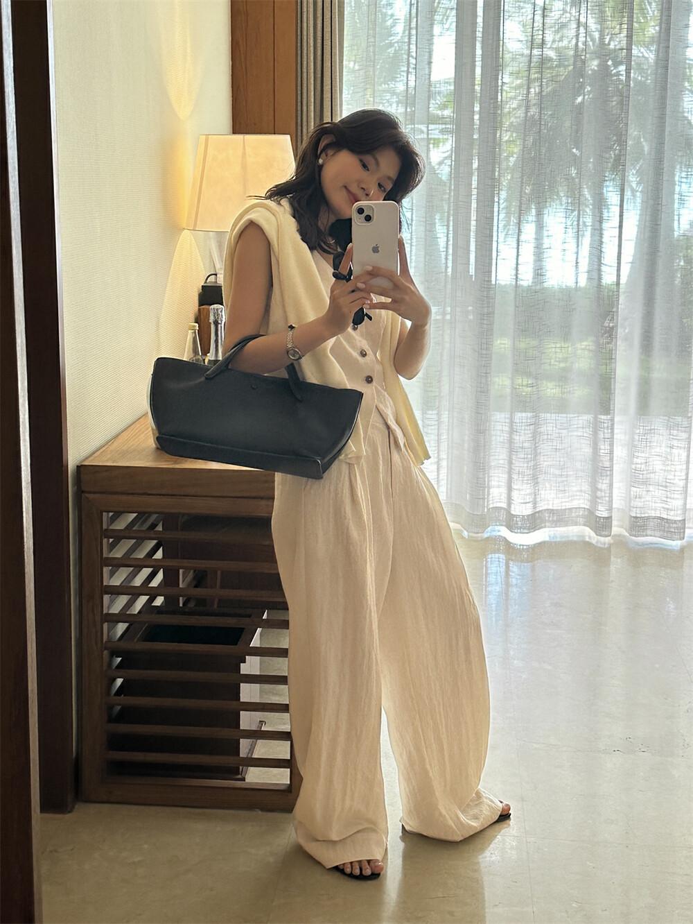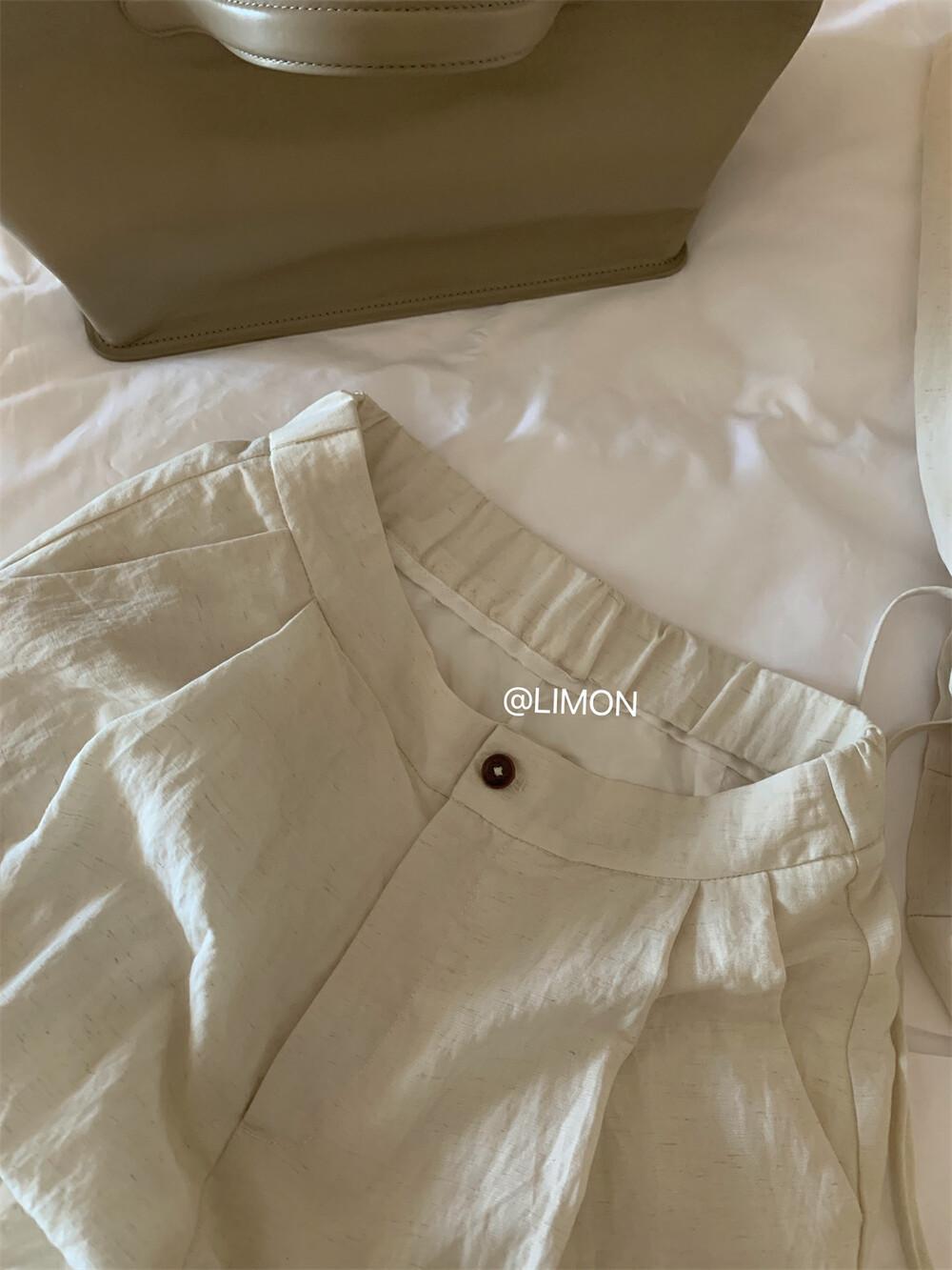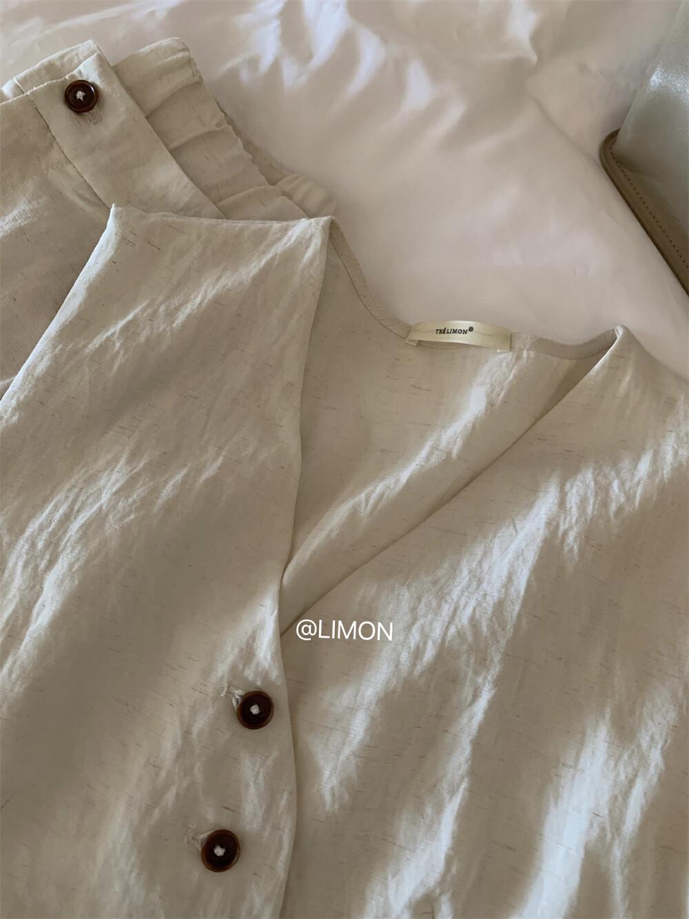 EL LIMON Té Verde de Limón Premium Sense Ajuste Slim Cuello en V Chaleco de Lino Pantalones de Pierna Ancha para Mujer Traje de Pantalón Casual Verano