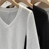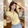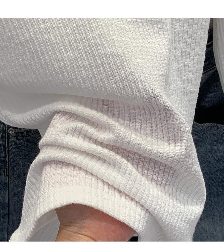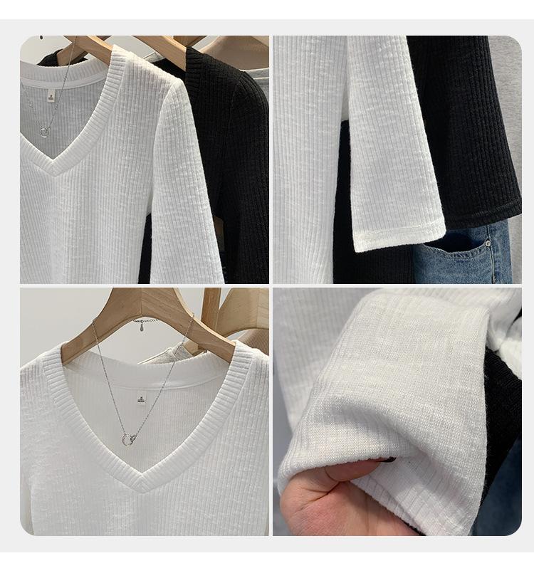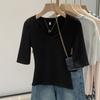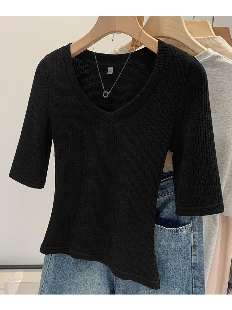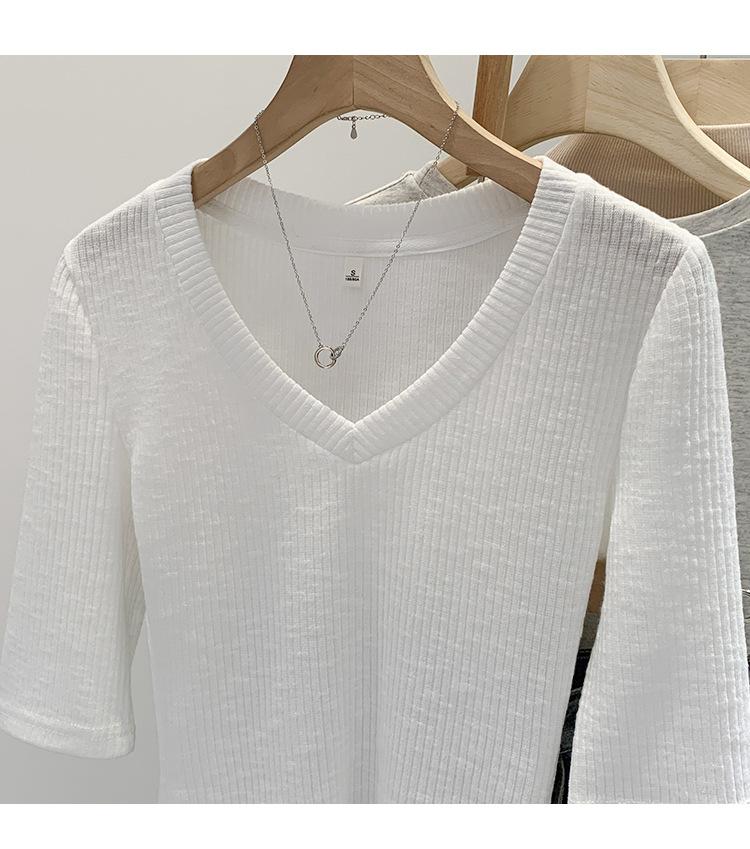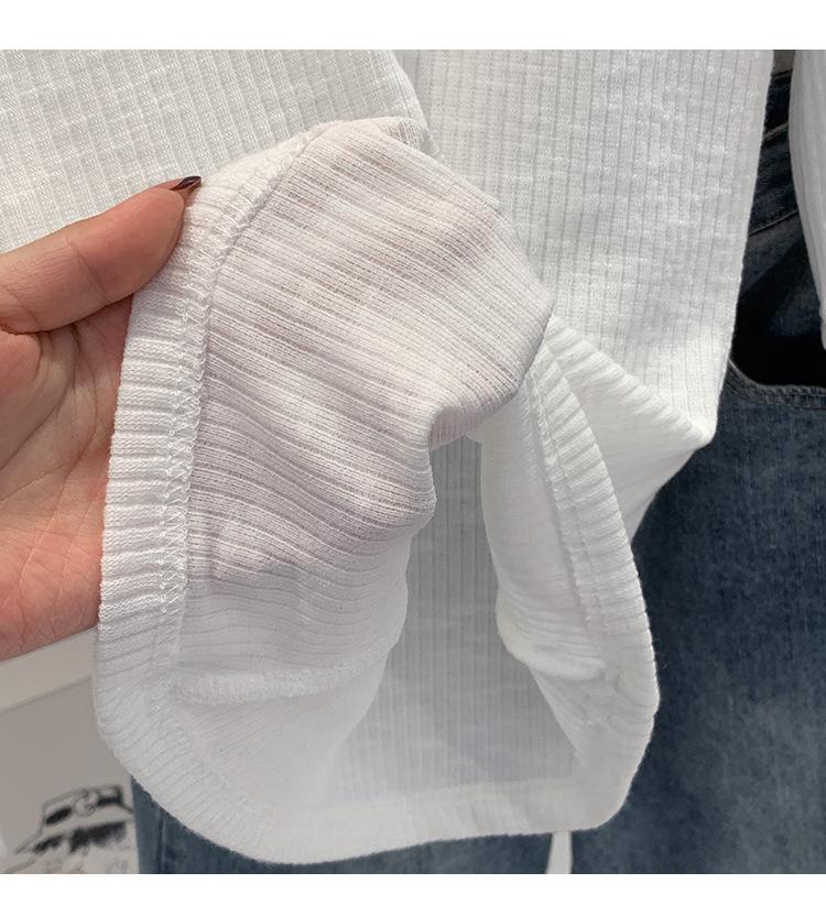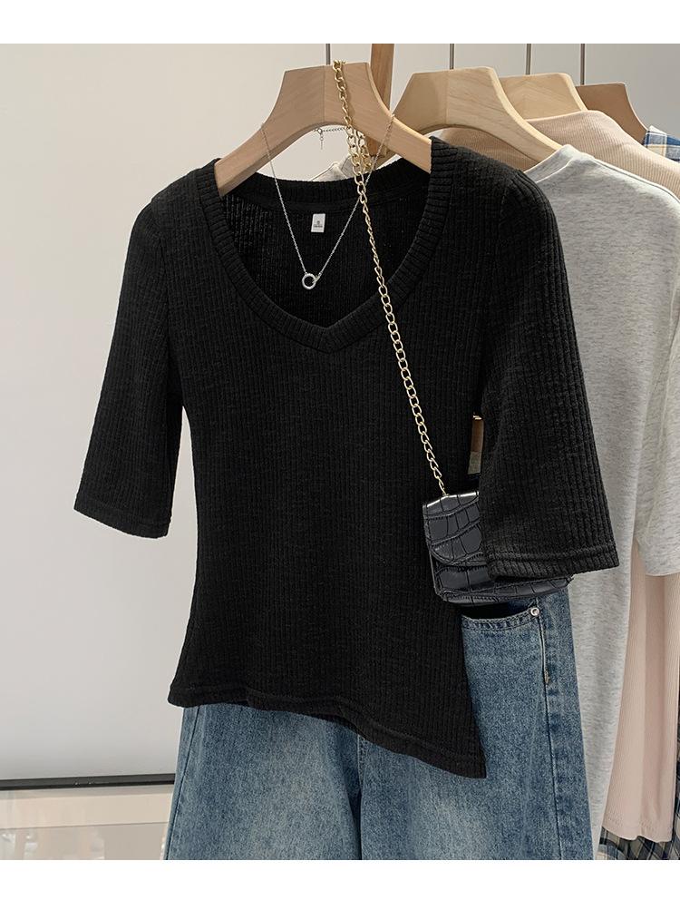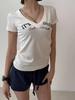 Playera Blanca de Manga Corta con Cuello en V y Textura en el Hombro Derecho para Mujer, Tendencia 2025 Principios de Otoño Verano, Nueva Elegante Slim Top Corto