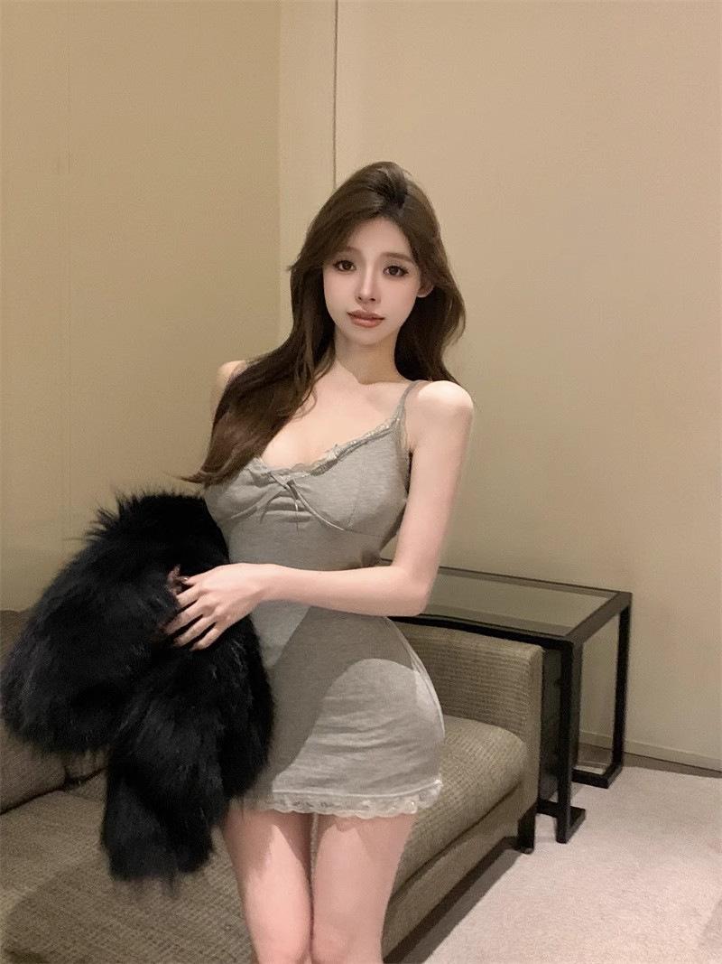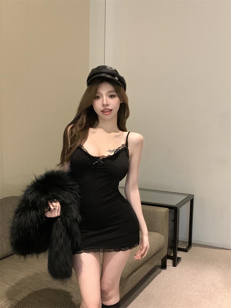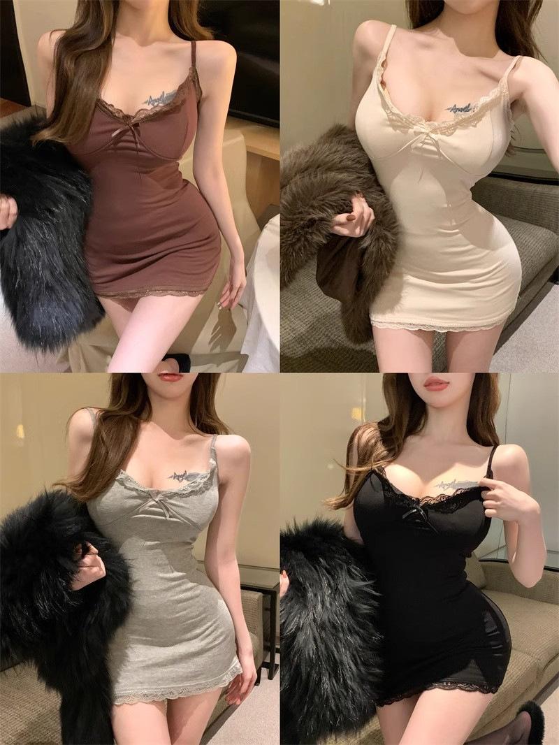 Compra Vestido con Liguero de Encaje Deseo Puro Albaricoque para Mujer Primavera y Verano 2024 Nuevo Falda Ajustada a la Cintura con Lazo al por mayor en Joom.pro