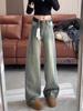 Vaqueros vintage de pierna ancha a rayas para mujer, primavera 2025, nuevos pantalones rectos holgados con cintura alta y efecto adelgazante.