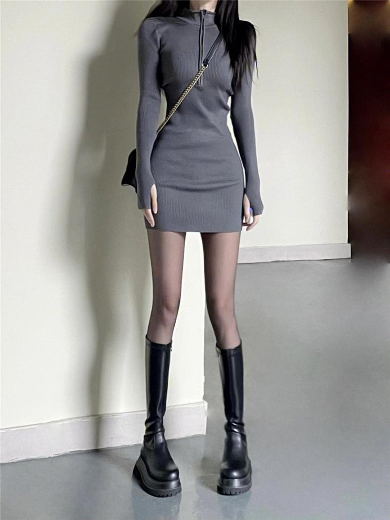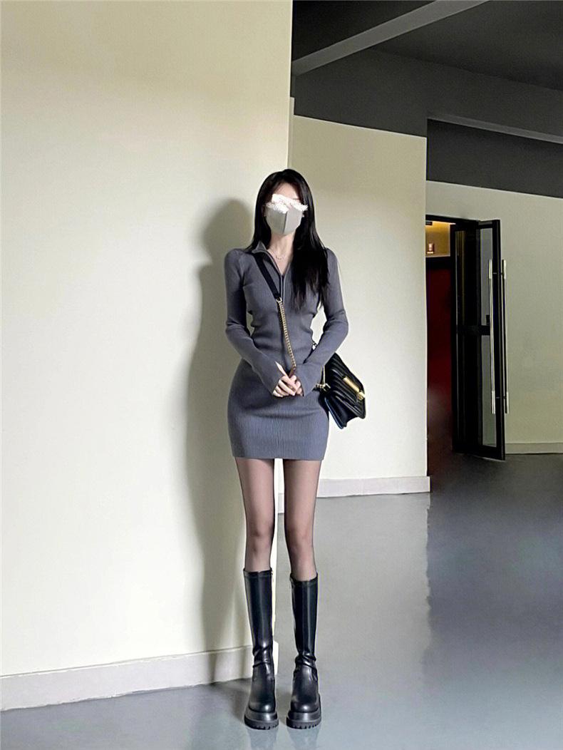 Ropa Nueva de Primavera 2023 Falda Ajustada Gris Vestido de Hilo Otoño e Invierno Falda de Madrastra para Chica Hot