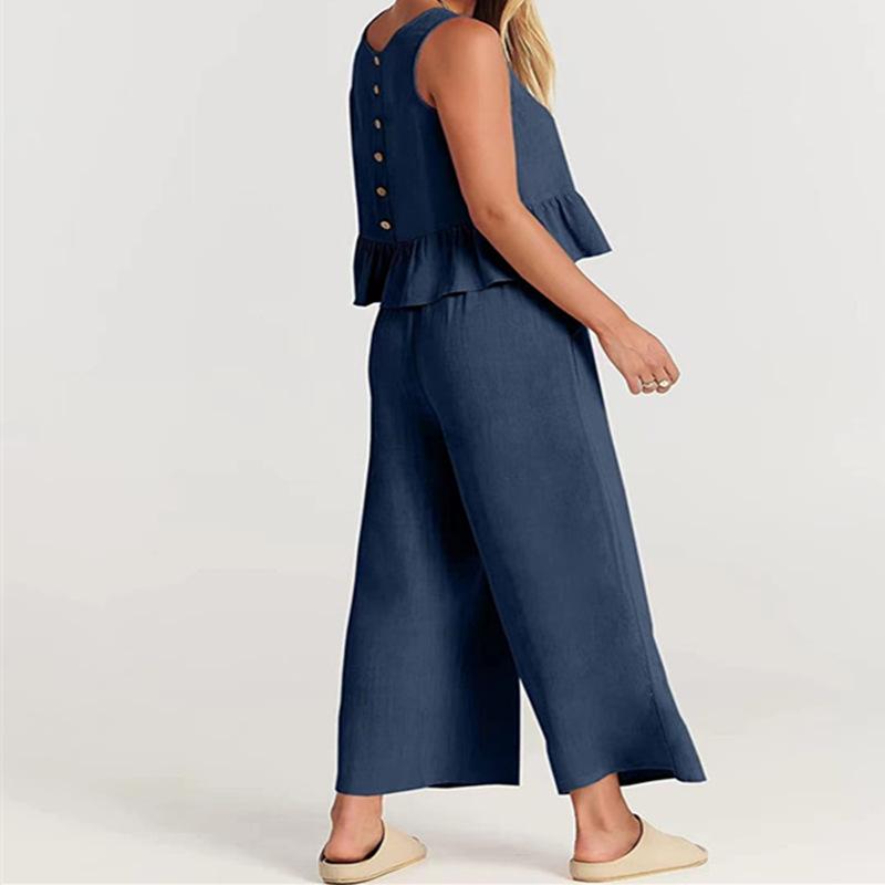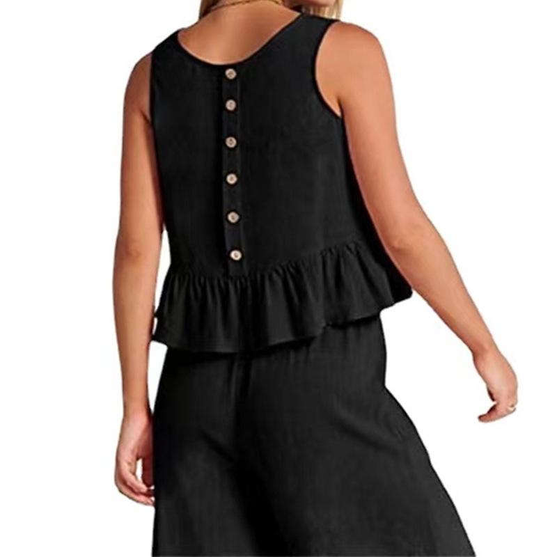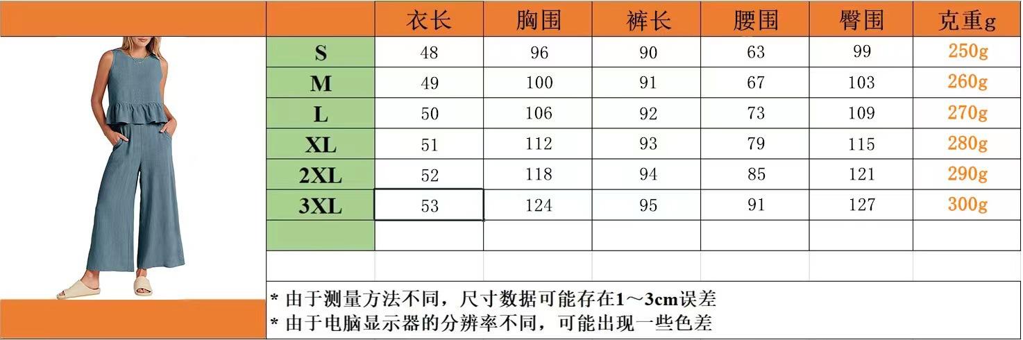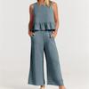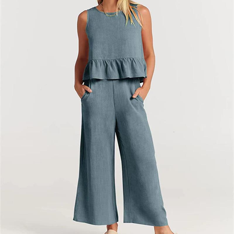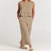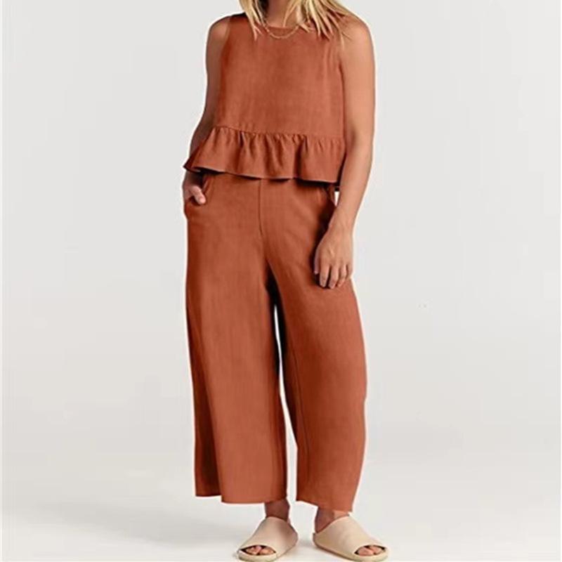 Verano 2023 Ropa de Mujer de Comercio Exterior Europea y Americana Amazon Chaleco Plisado sin Mangas Pantalones Anchos hasta el Tobillo Traje Elegante de Color Sólido