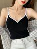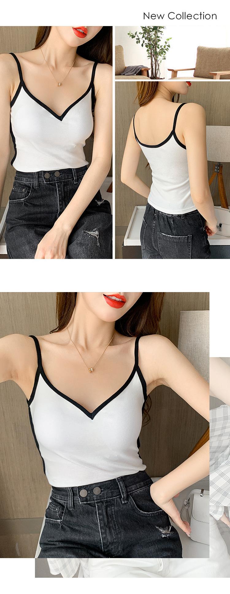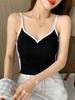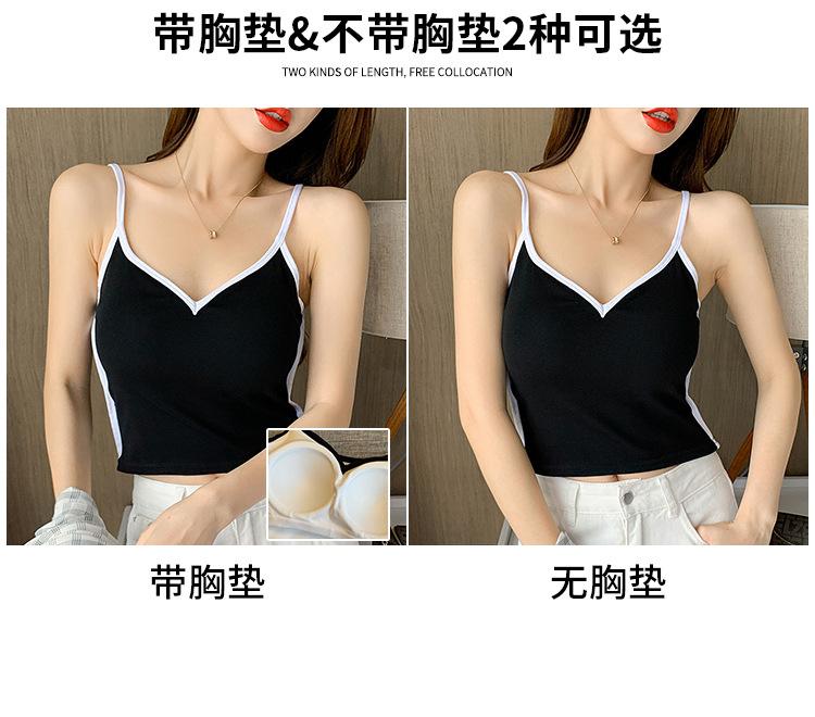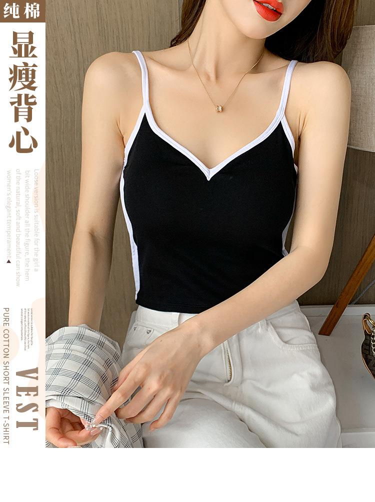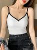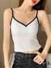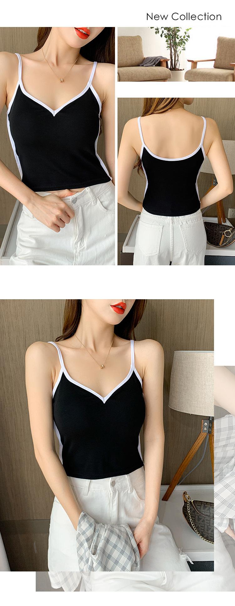 Camisola de Algodón Puro para Mujer, Ajustada y Sexy, Fondo Moderno y Elegante, Top Corto sin Mangas de Color Contrastante para Ropa Interior y Exterior
