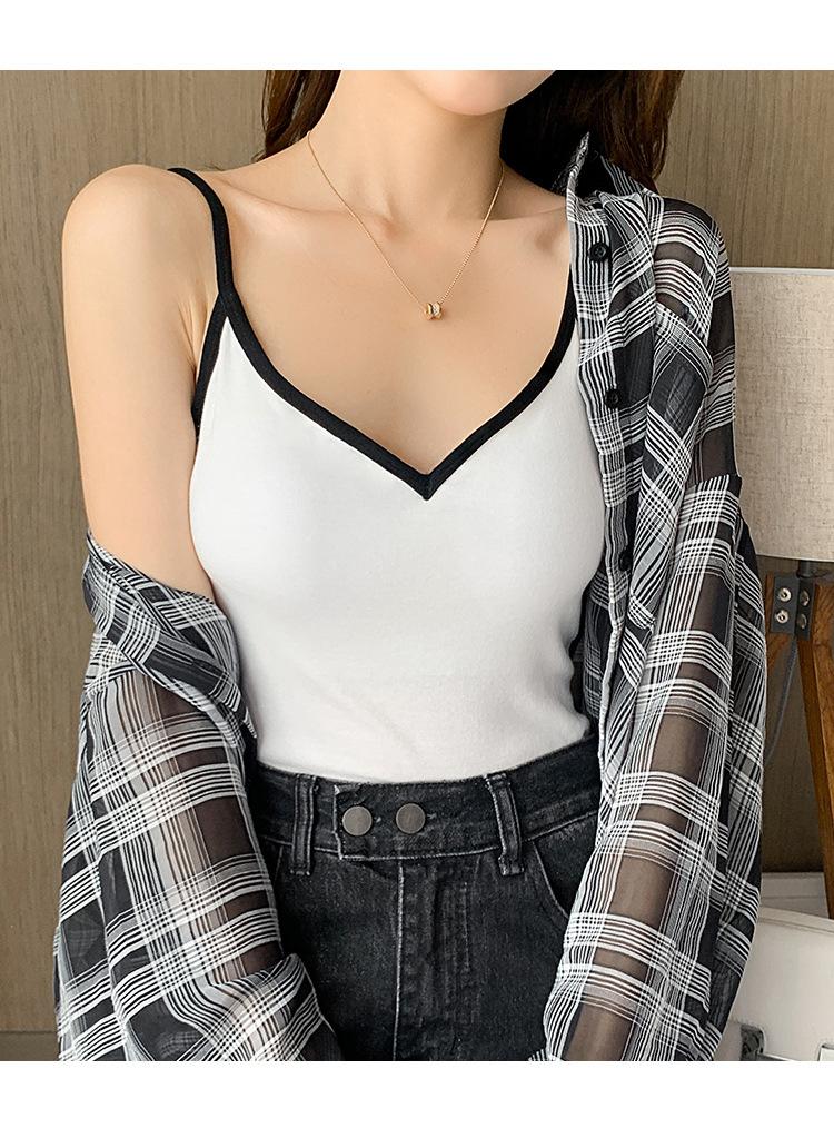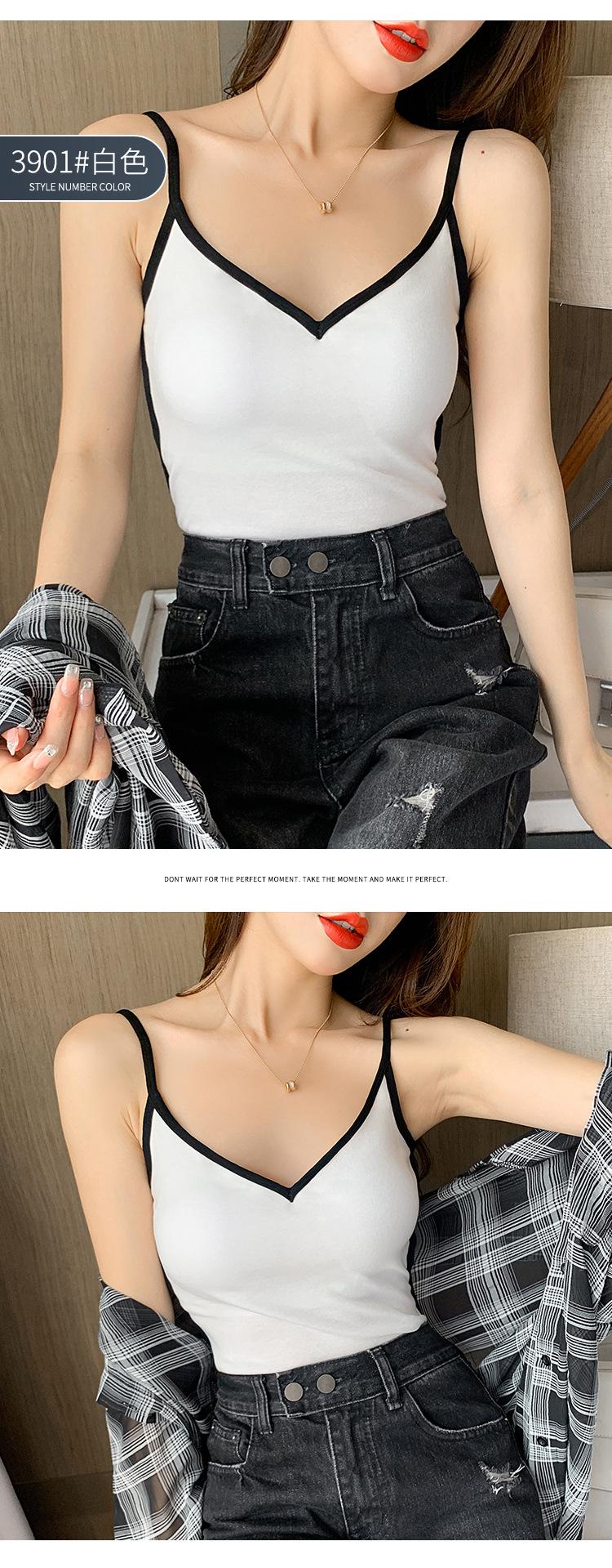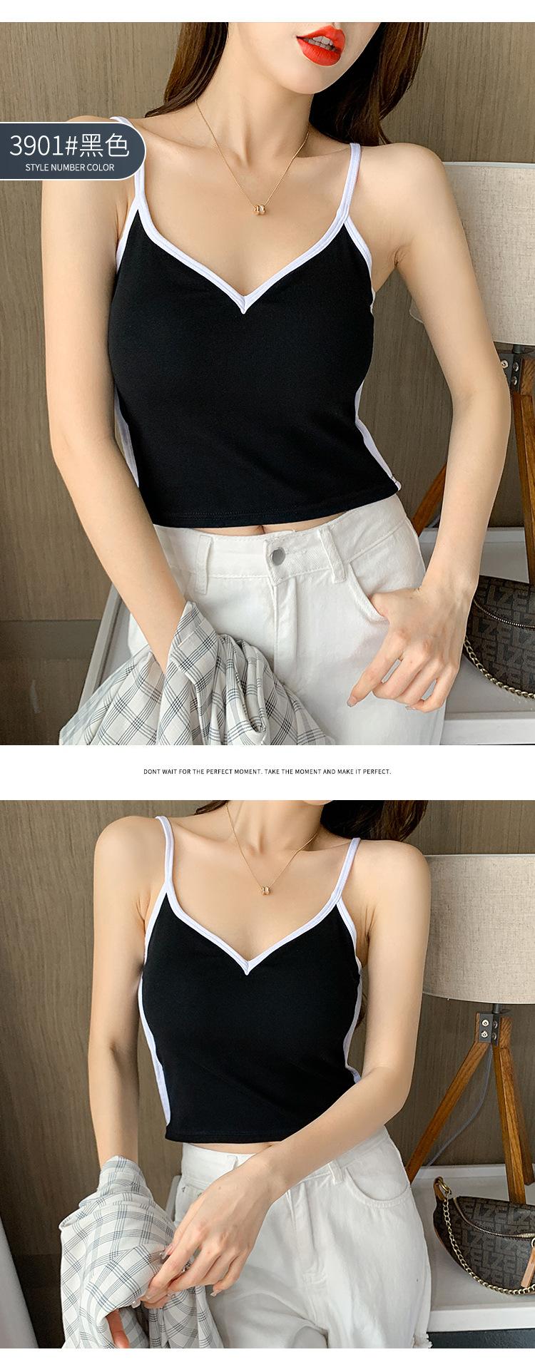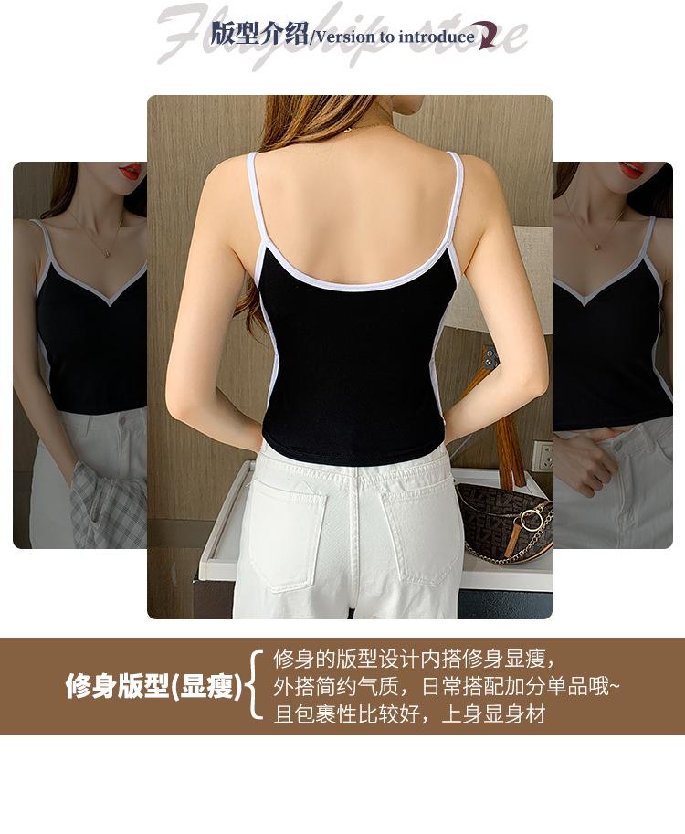 Camisola de Algodón Puro para Mujer, Ajustada y Sexy, Fondo Moderno y Elegante, Top Corto sin Mangas de Color Contrastante para Ropa Interior y Exterior