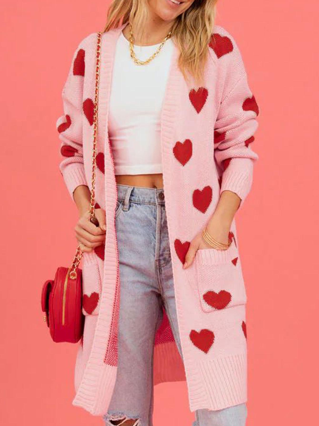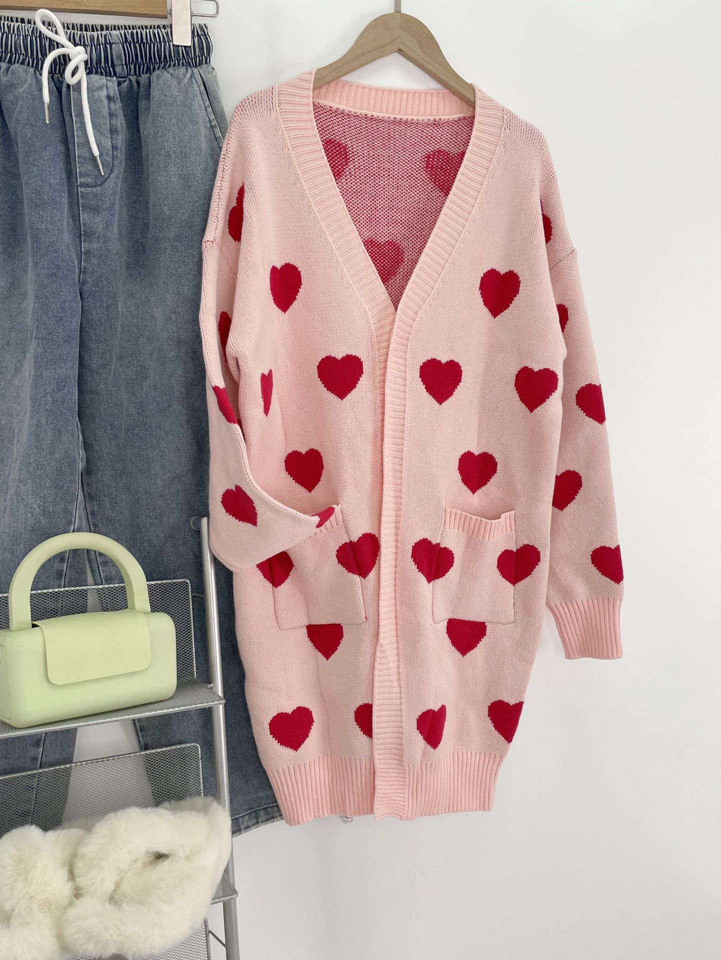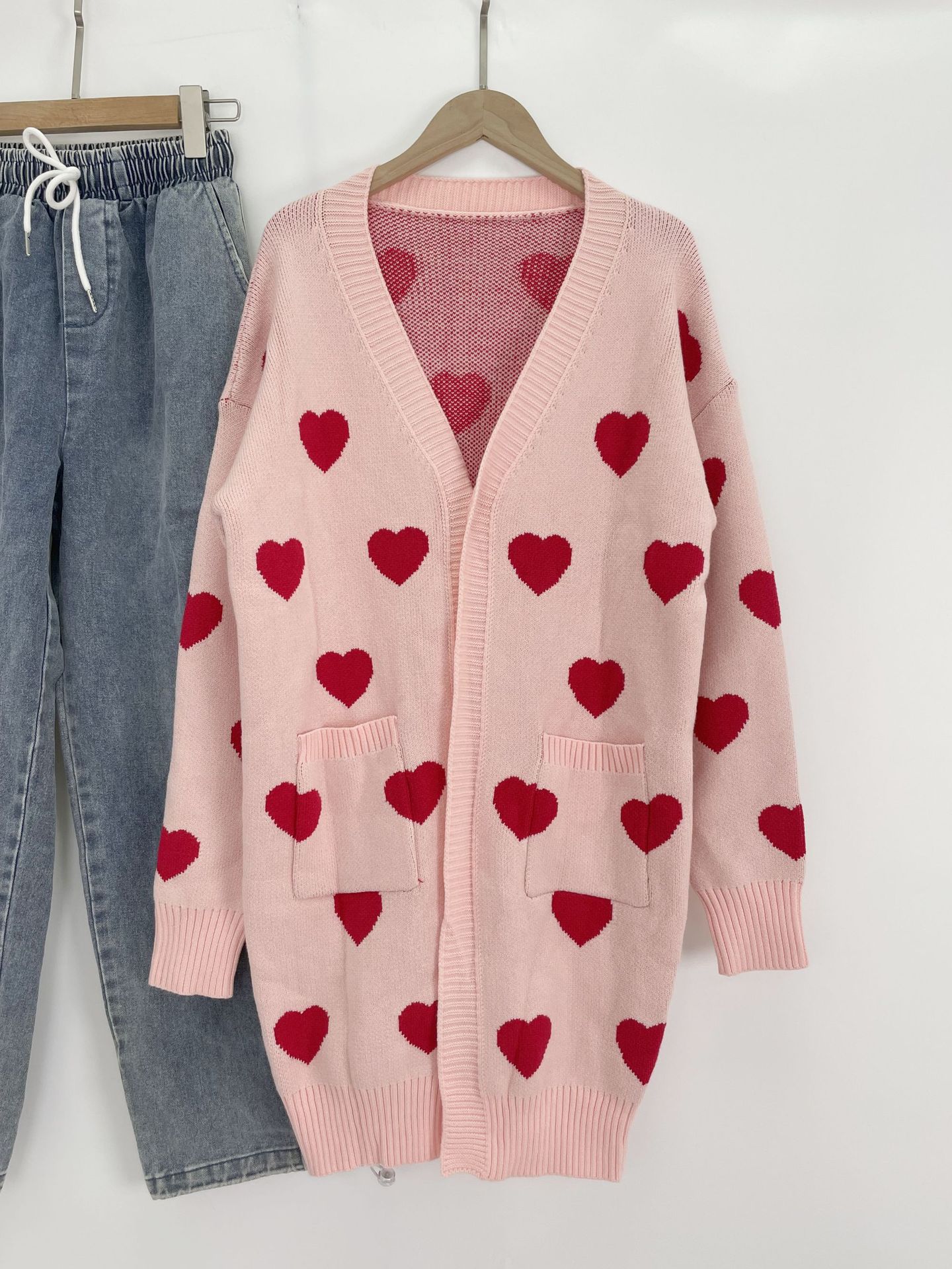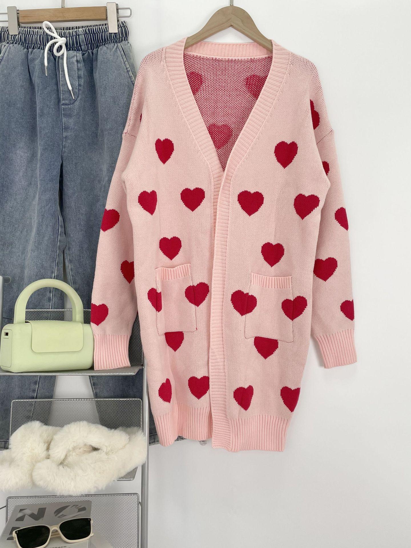 Suéter Nuevo Europeo y Americano Transfronterizo 2025 Chaqueta para Mujer Otoño e Invierno Cárdigan Tejido Amor Sin Botones Largo Medio
