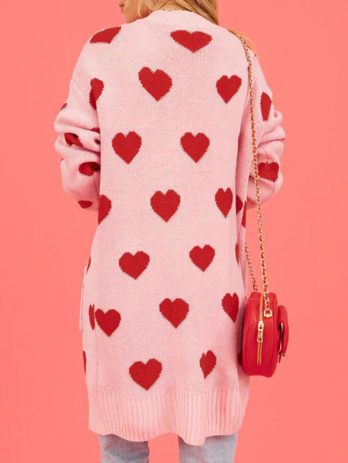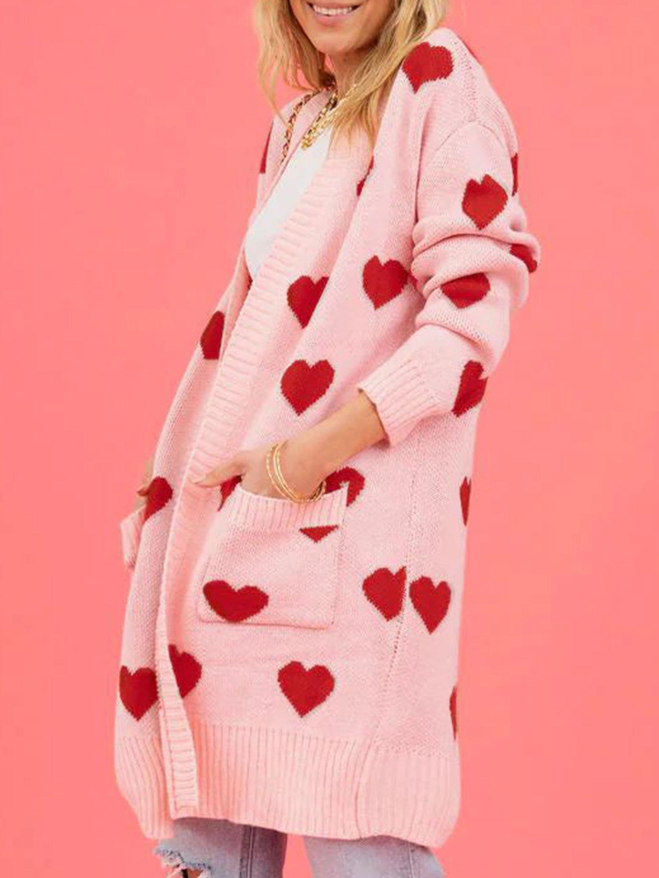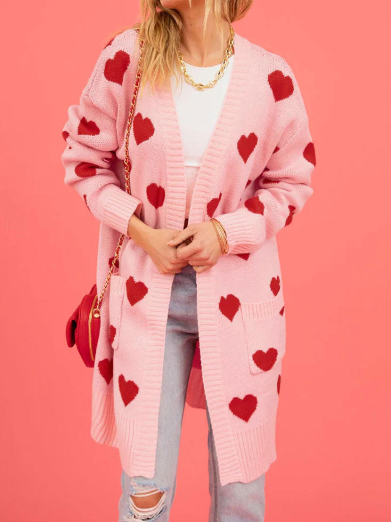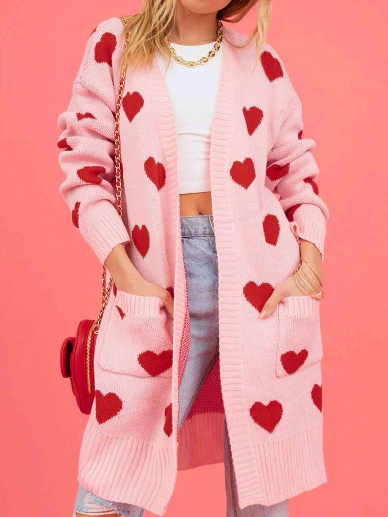 Suéter Nuevo Europeo y Americano Transfronterizo 2025 Chaqueta para Mujer Otoño e Invierno Cárdigan Tejido Amor Sin Botones Largo Medio