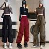 8007-25 Principios de Primavera Nuevo Estilo Europeo y Americano Color Sólido Básico Cintura Alta Tubo Recto Pantalones Casuales Sueltos Pantalones Casuales