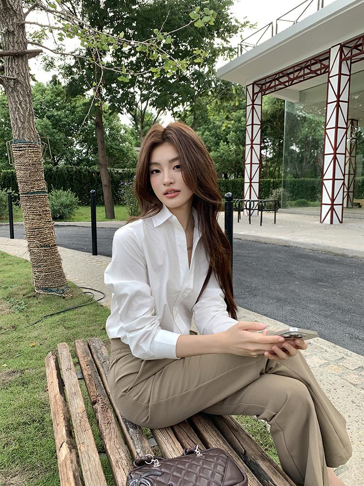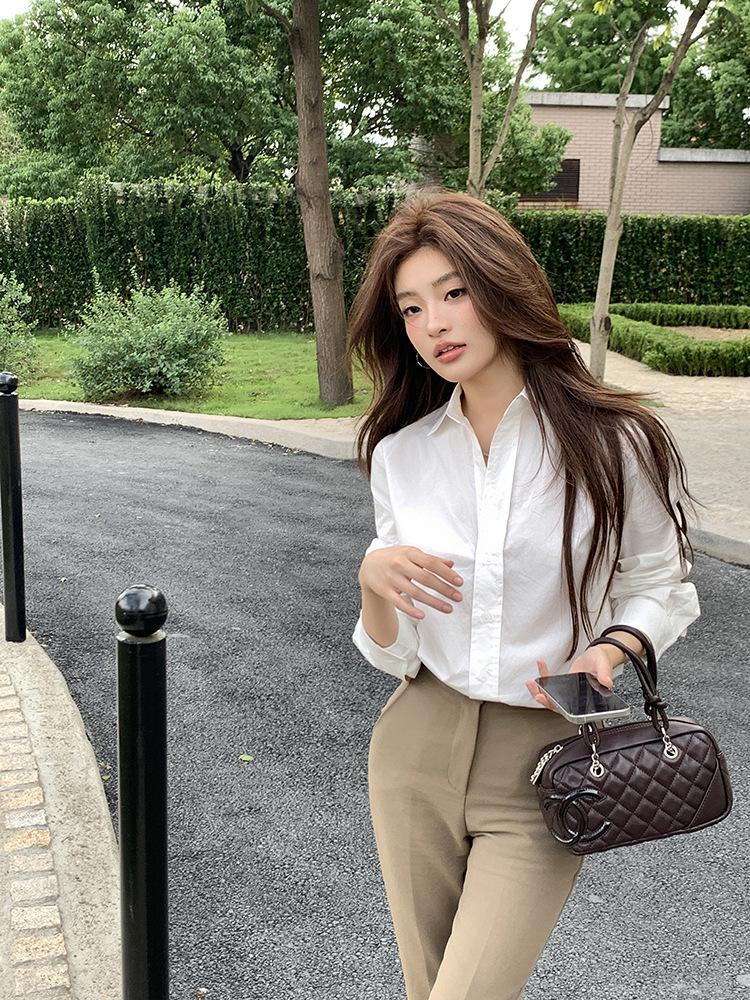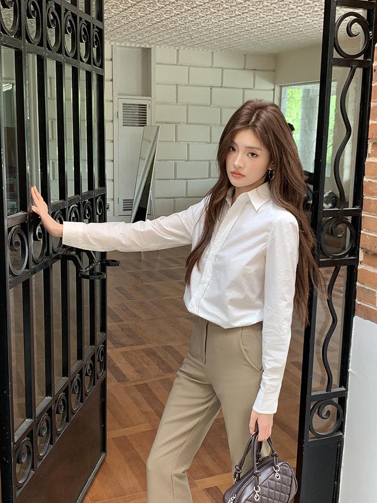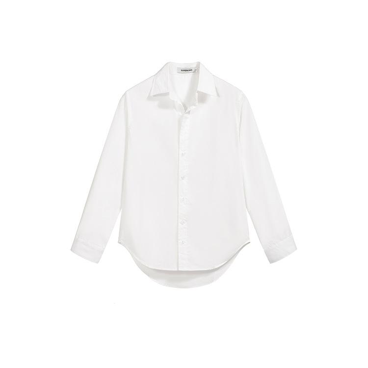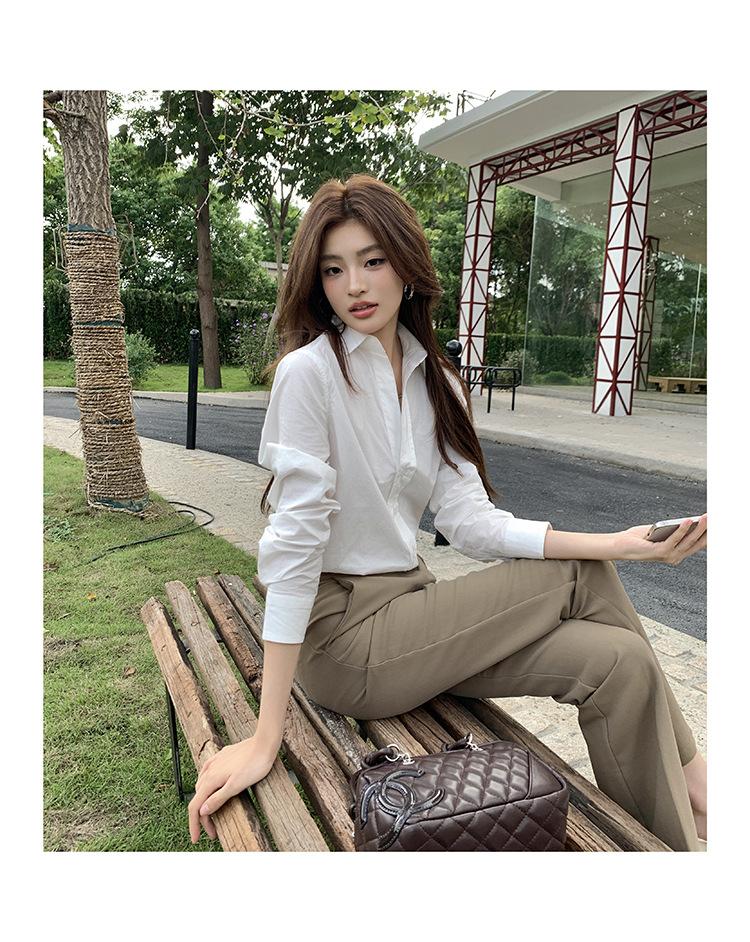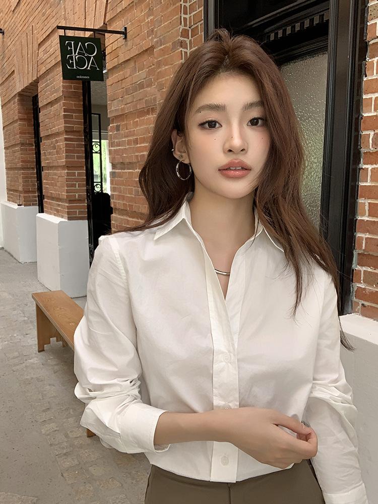 Foto real primavera y verano 2025 nuevo temperamento combinable top suelto moda casual camisa blanca pura de manga larga para mujer