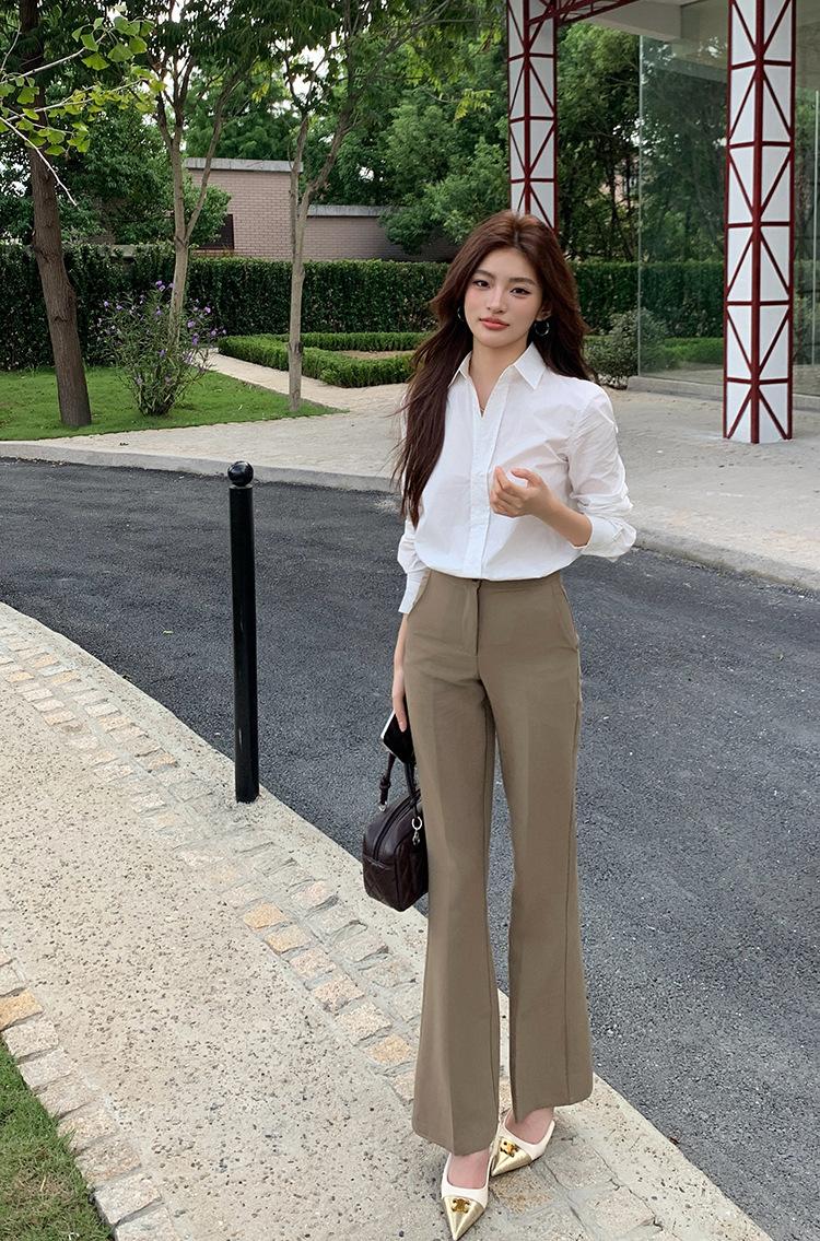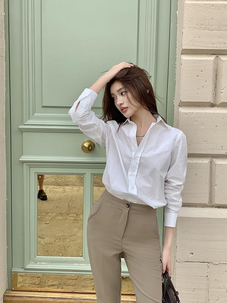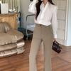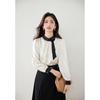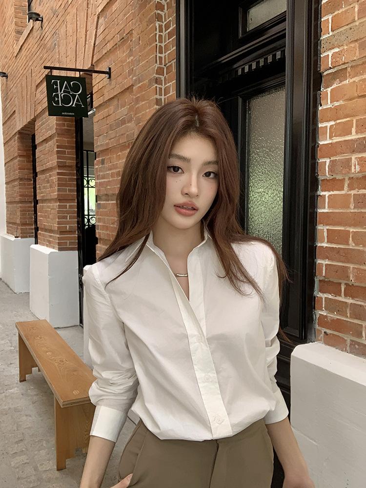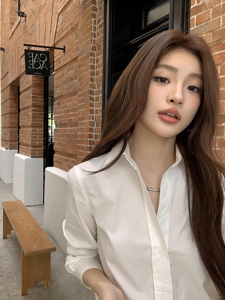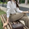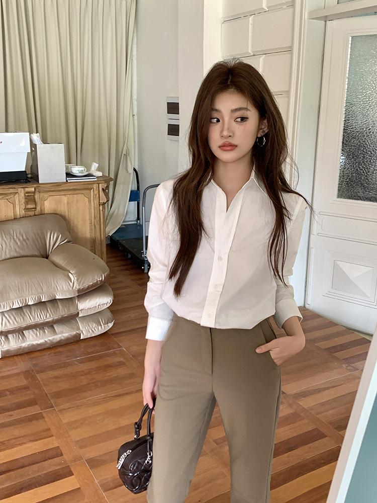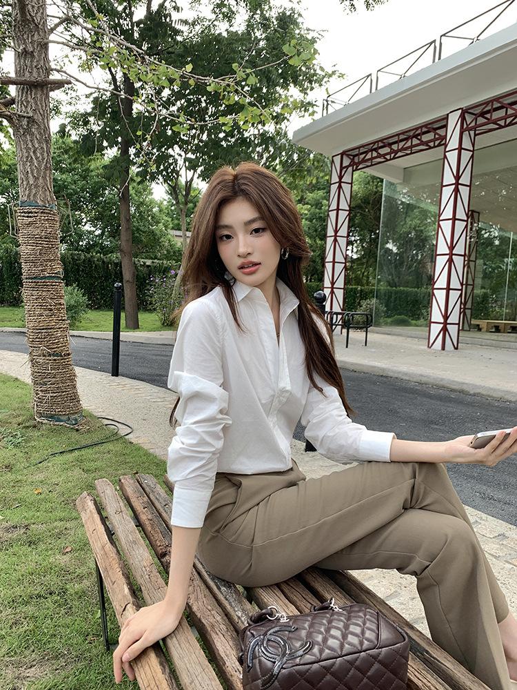 Foto real primavera y verano 2025 nuevo temperamento combinable top suelto moda casual camisa blanca pura de manga larga para mujer