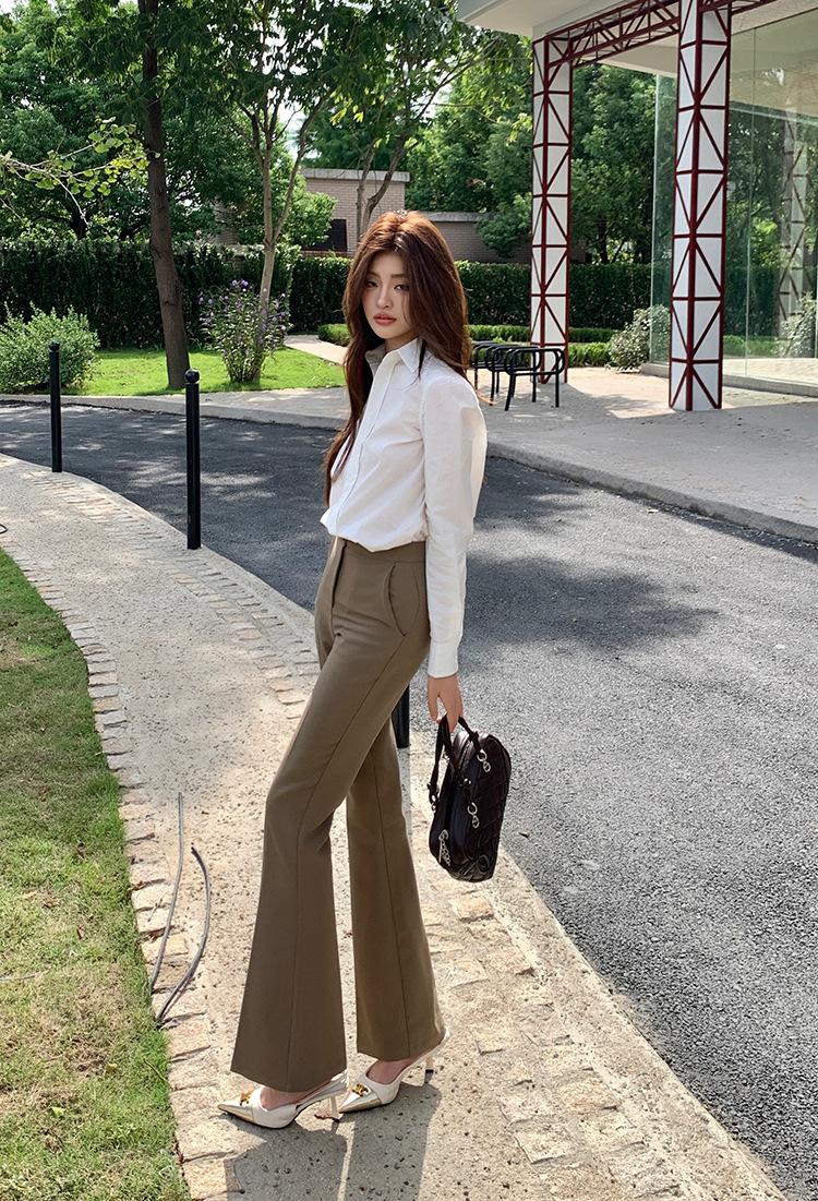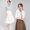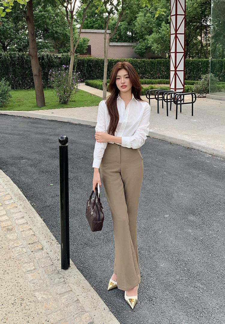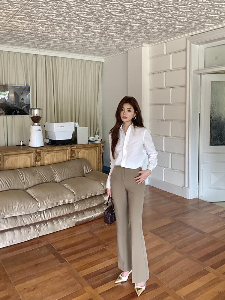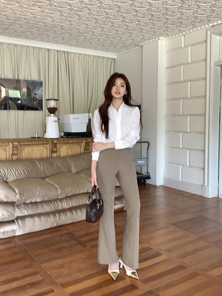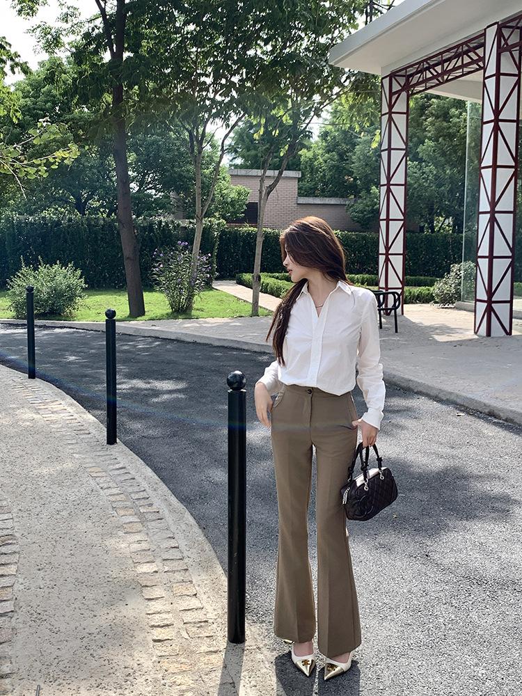 Foto real primavera y verano 2025 nuevo temperamento combinable top suelto moda casual camisa blanca pura de manga larga para mujer