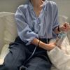 Camisa coreana Dongdaemun de manga larga, holgada, informal, de color puro, estilo francés de alta calidad, con cuello en V y diseño de cinta para mujer