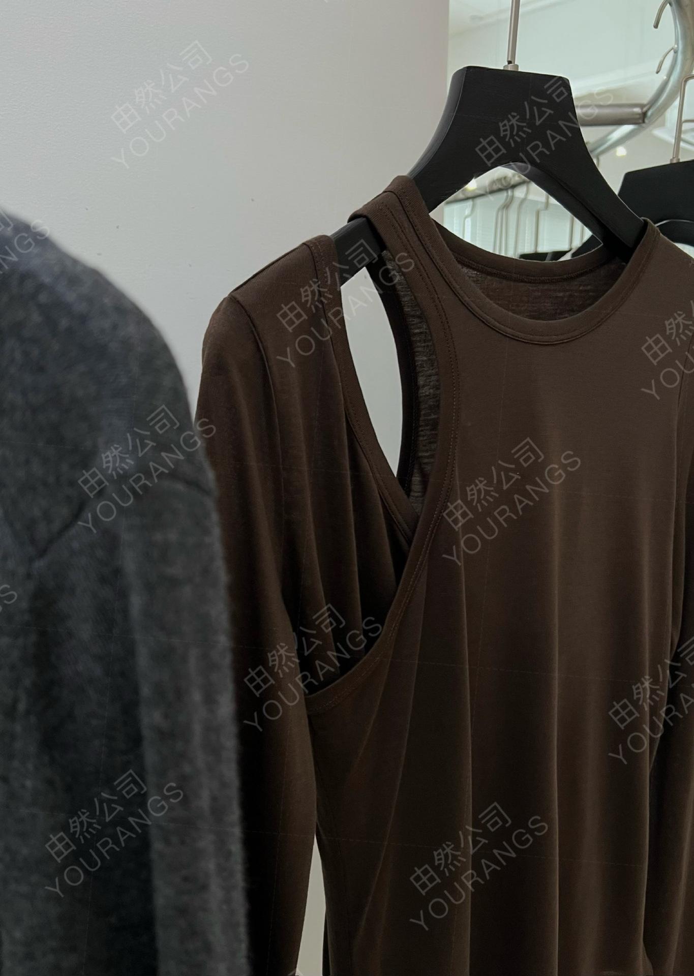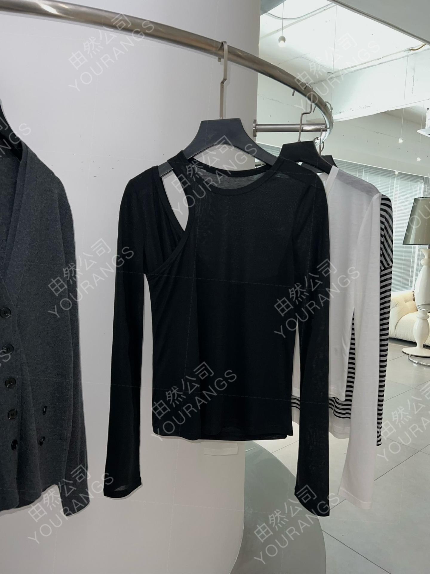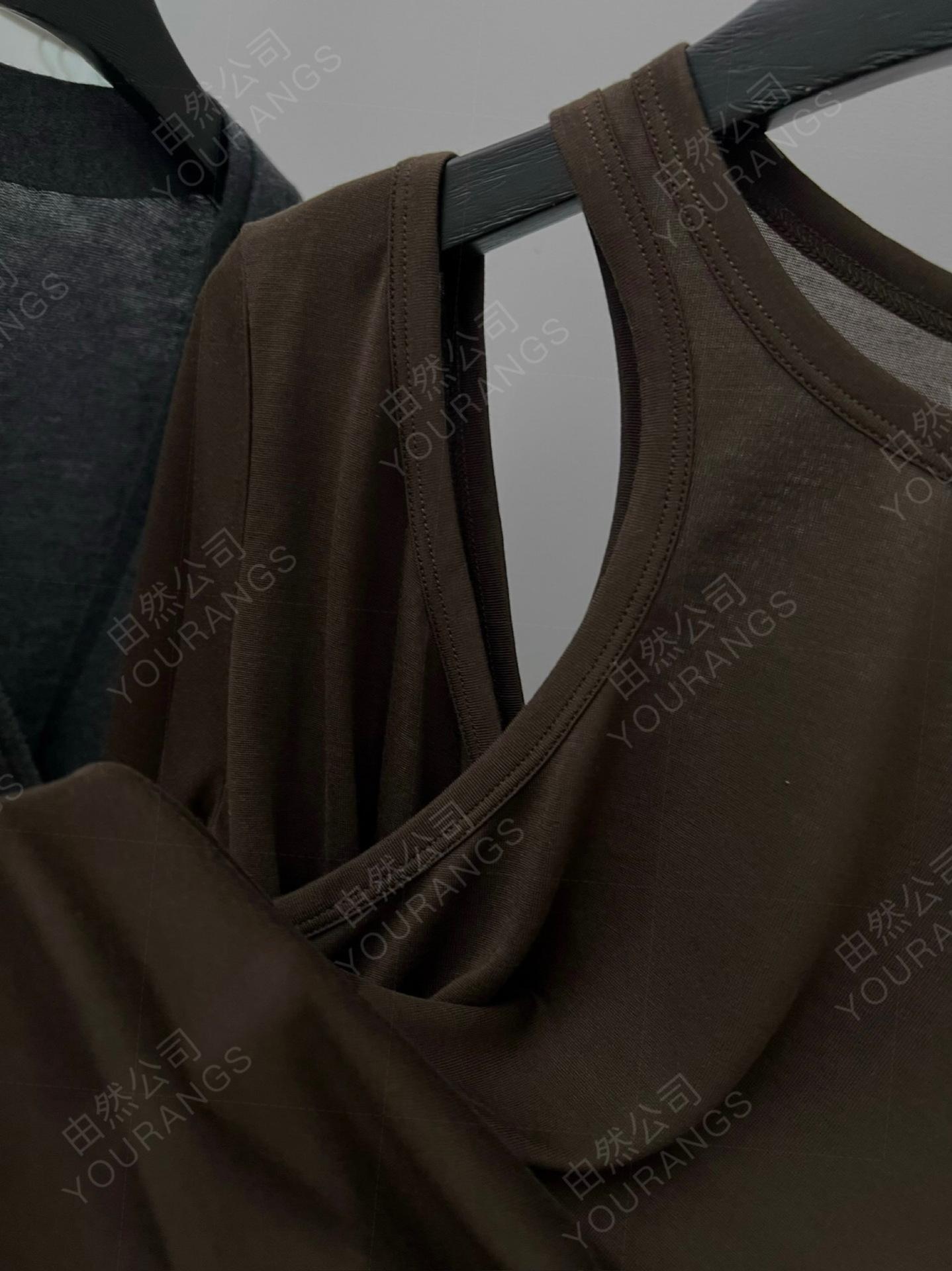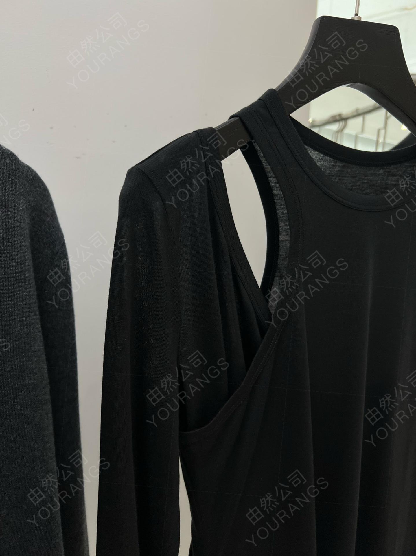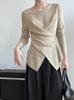[Kui Qing 90] Suéter de punto de manga larga con estructura irregular de doble capa, con hilo súper suave Tencel de Four Seasons FK Lanjing