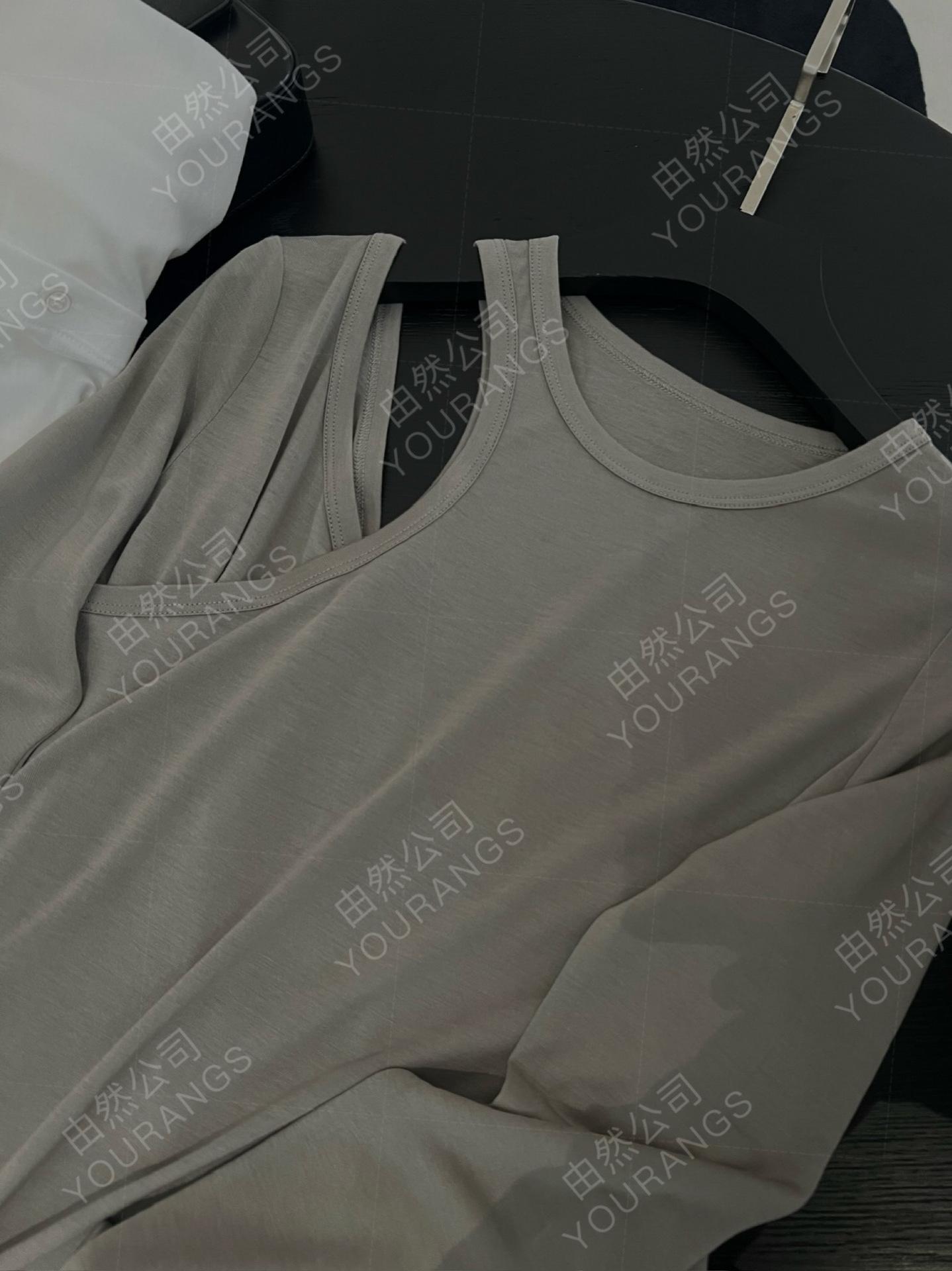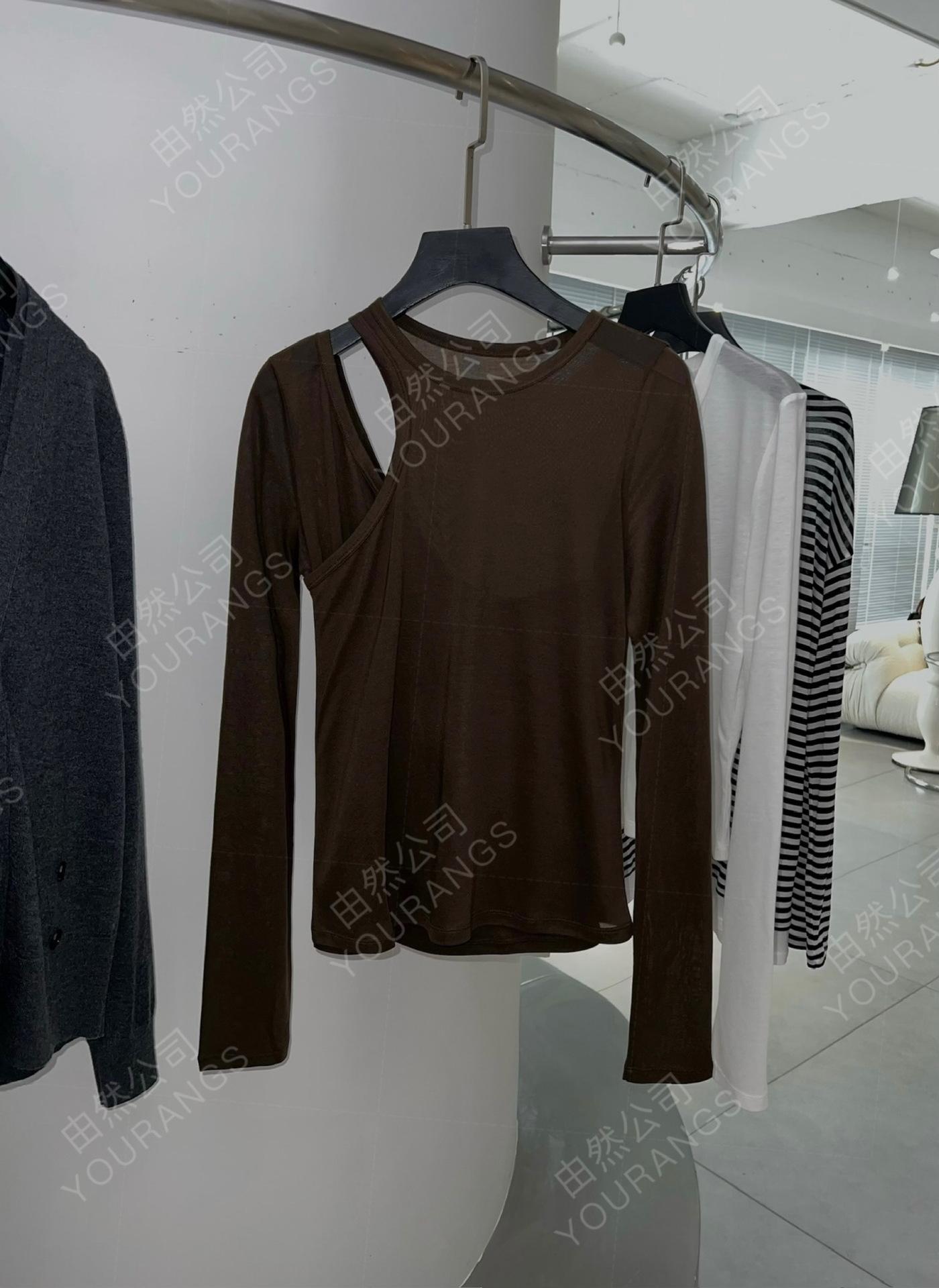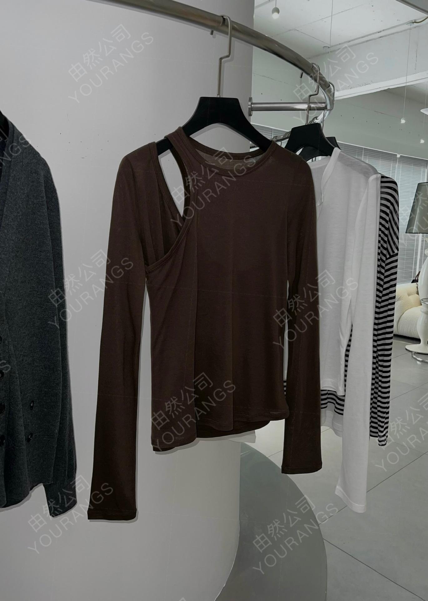 [Kui Qing 90] Suéter de punto de manga larga con estructura irregular de doble capa, con hilo súper suave Tencel de Four Seasons FK Lanjing