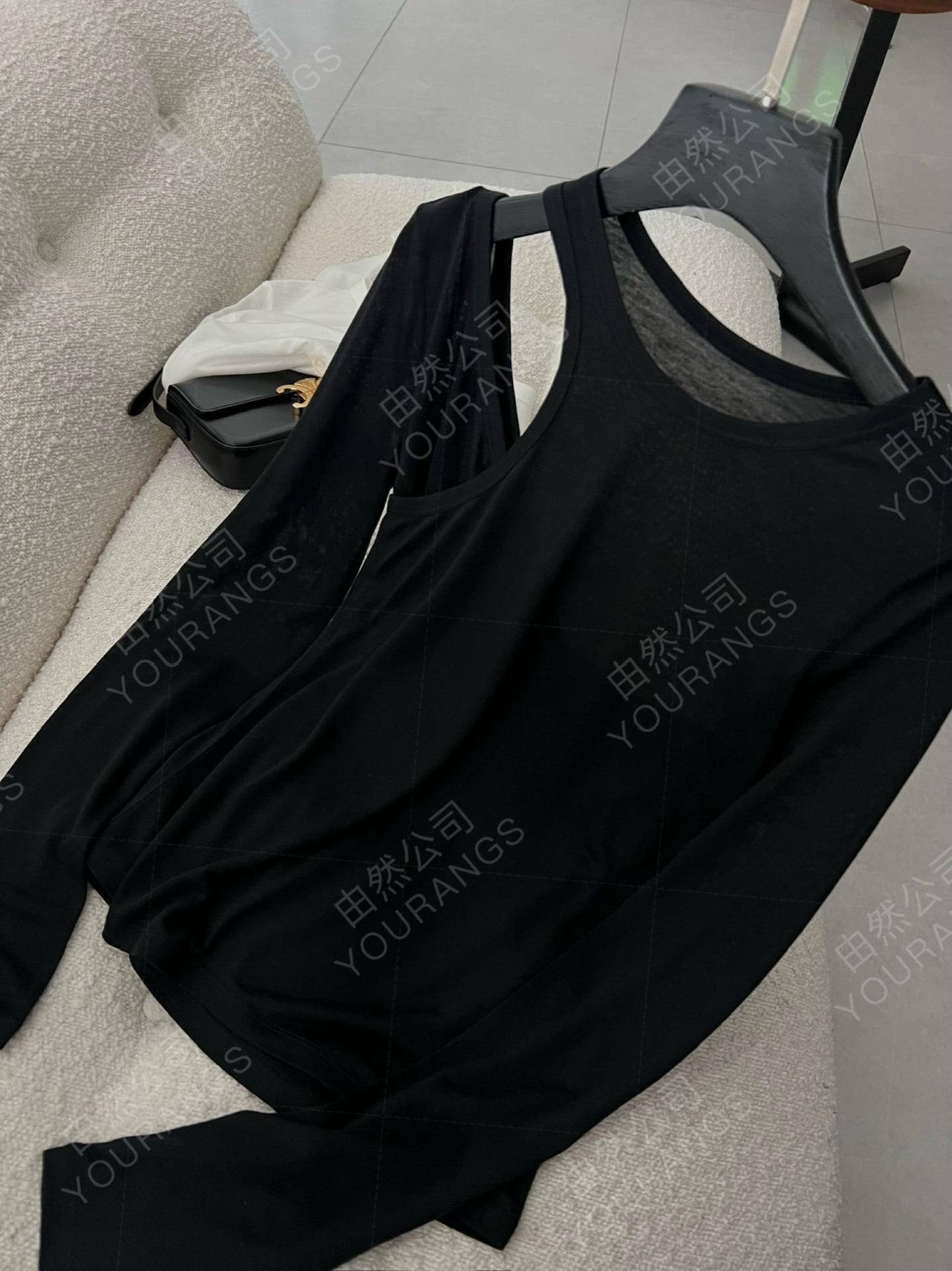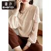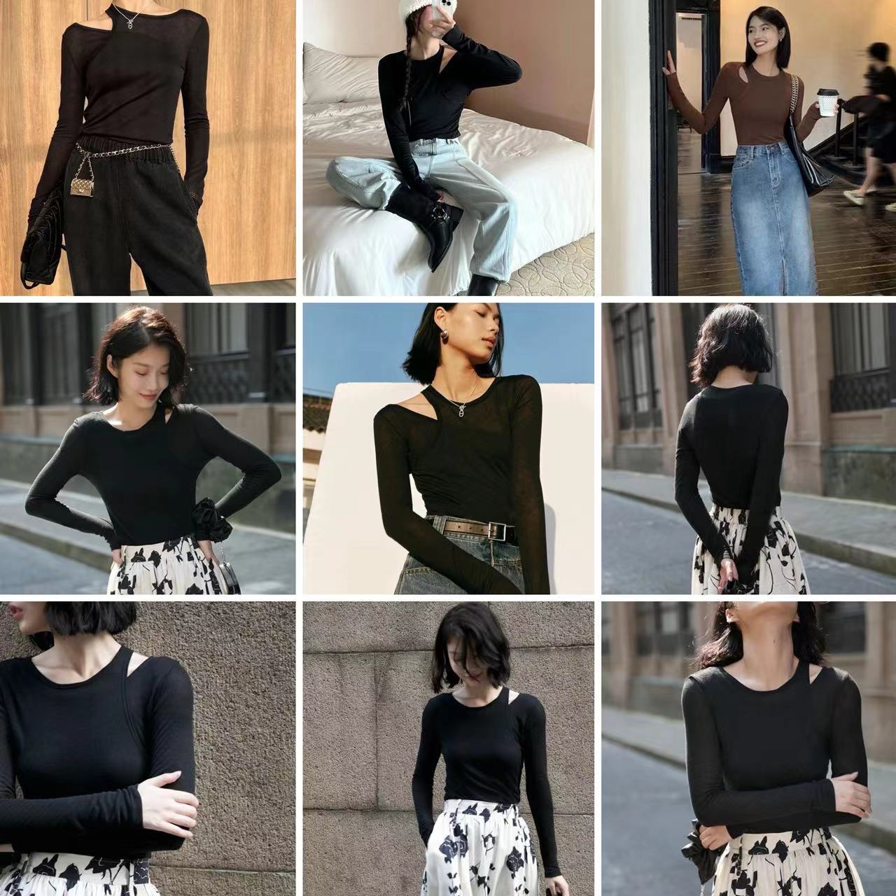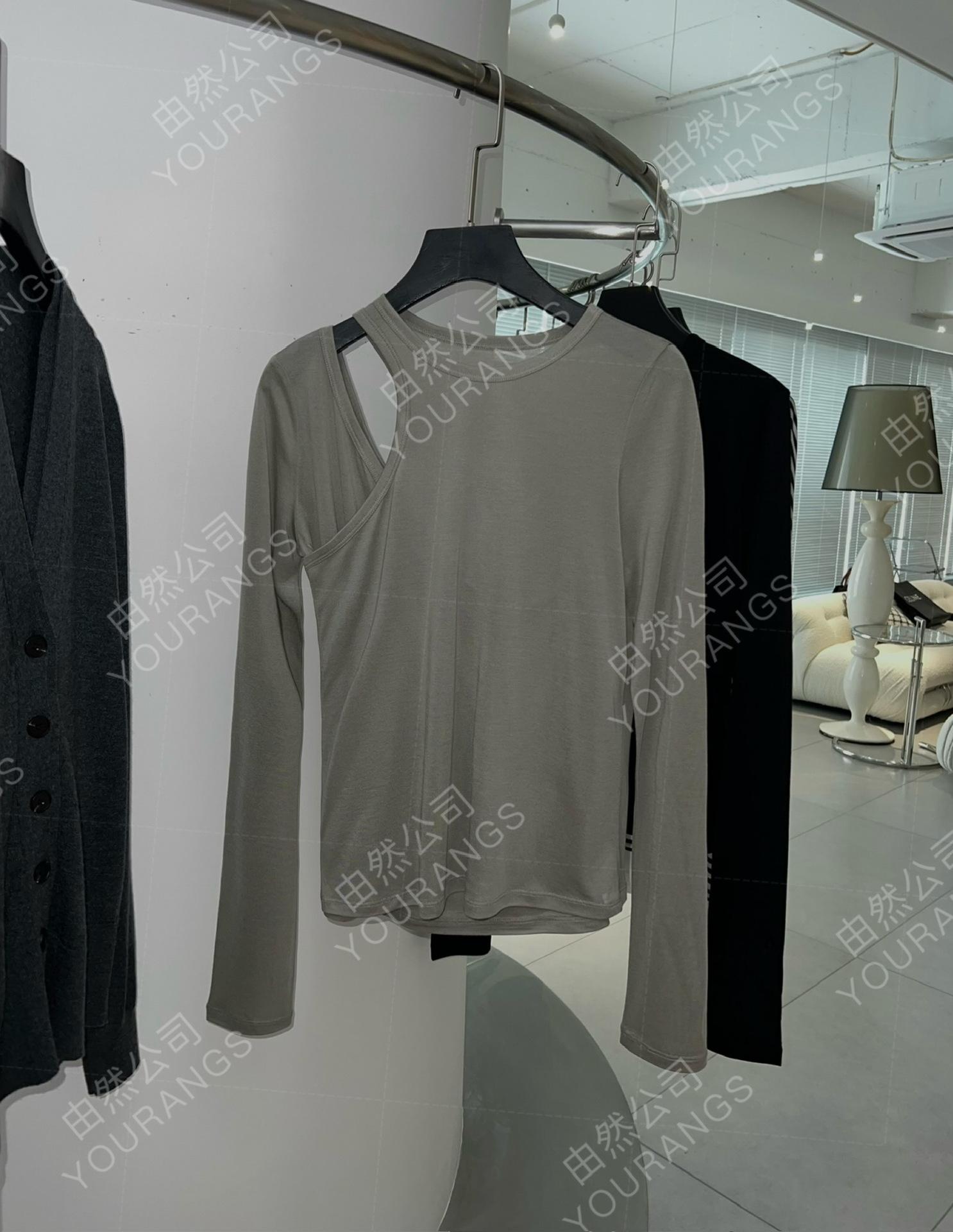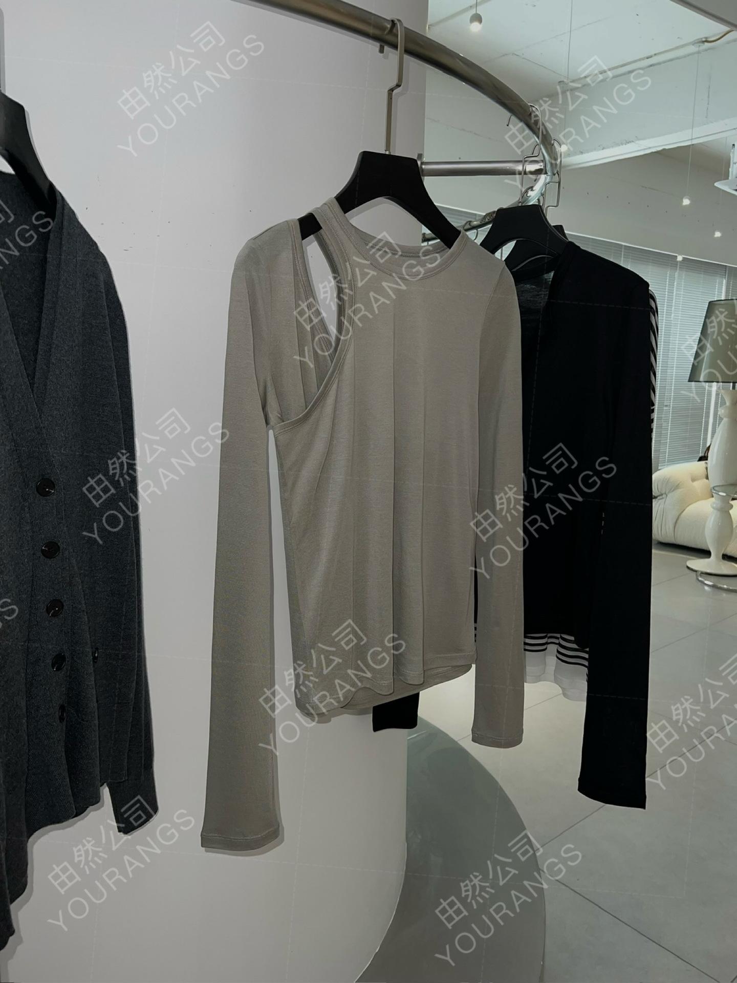 [Kui Qing 90] Suéter de punto de manga larga con estructura irregular de doble capa, con hilo súper suave Tencel de Four Seasons FK Lanjing