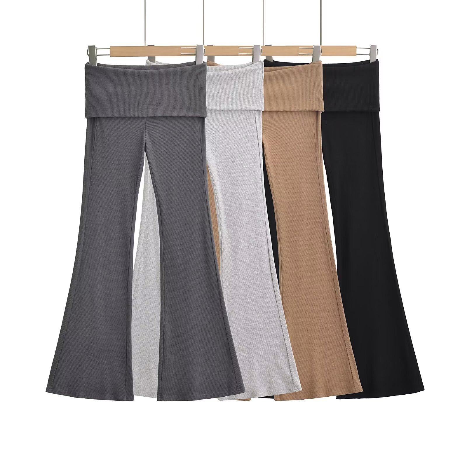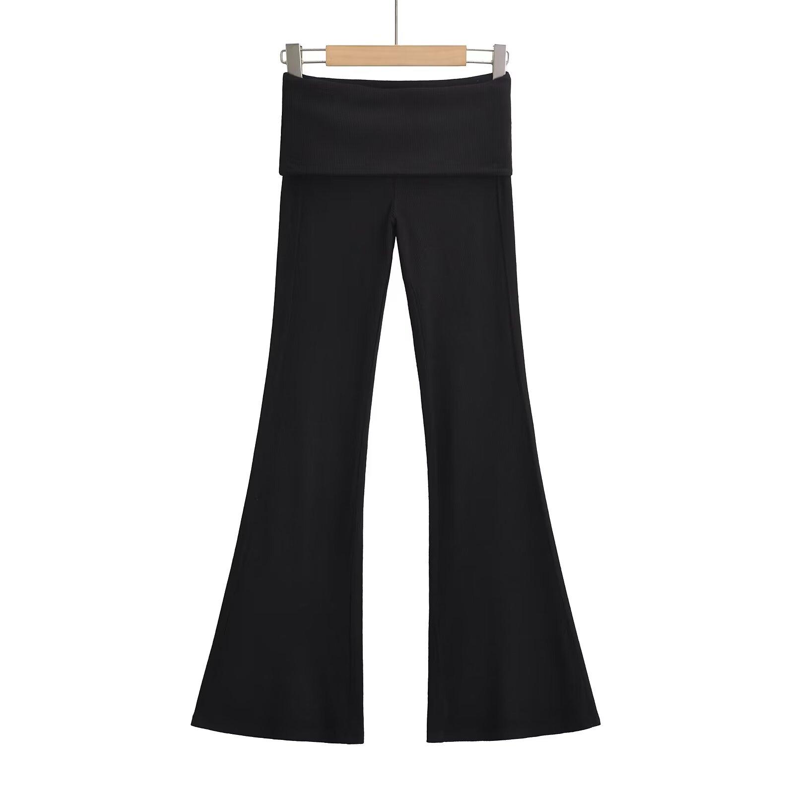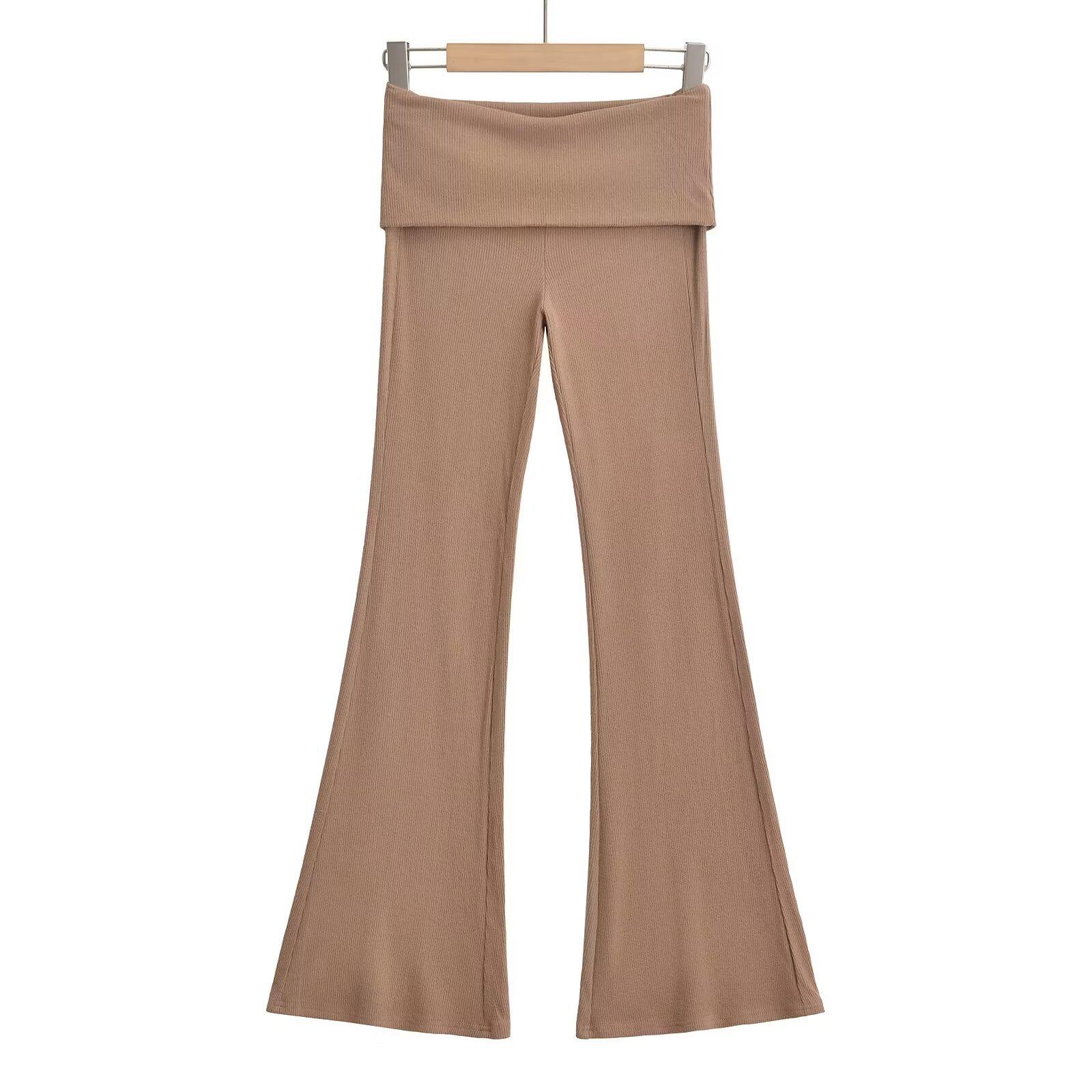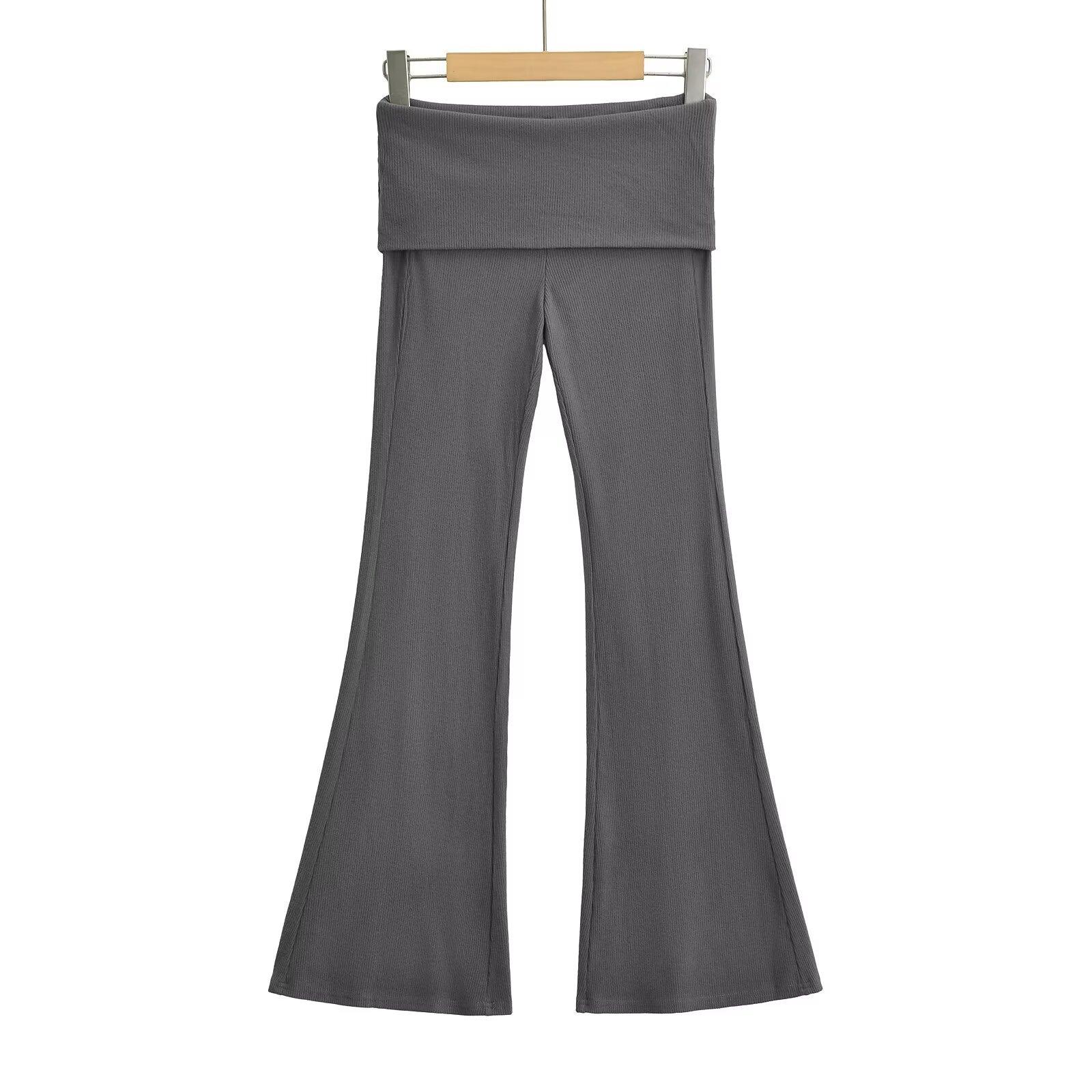 Diseño sentido pila cintura vuelta micro acampanados pantalones mujer 2024 otoño nuevo europeo y americano chica caliente casual elástico pantalones casuales