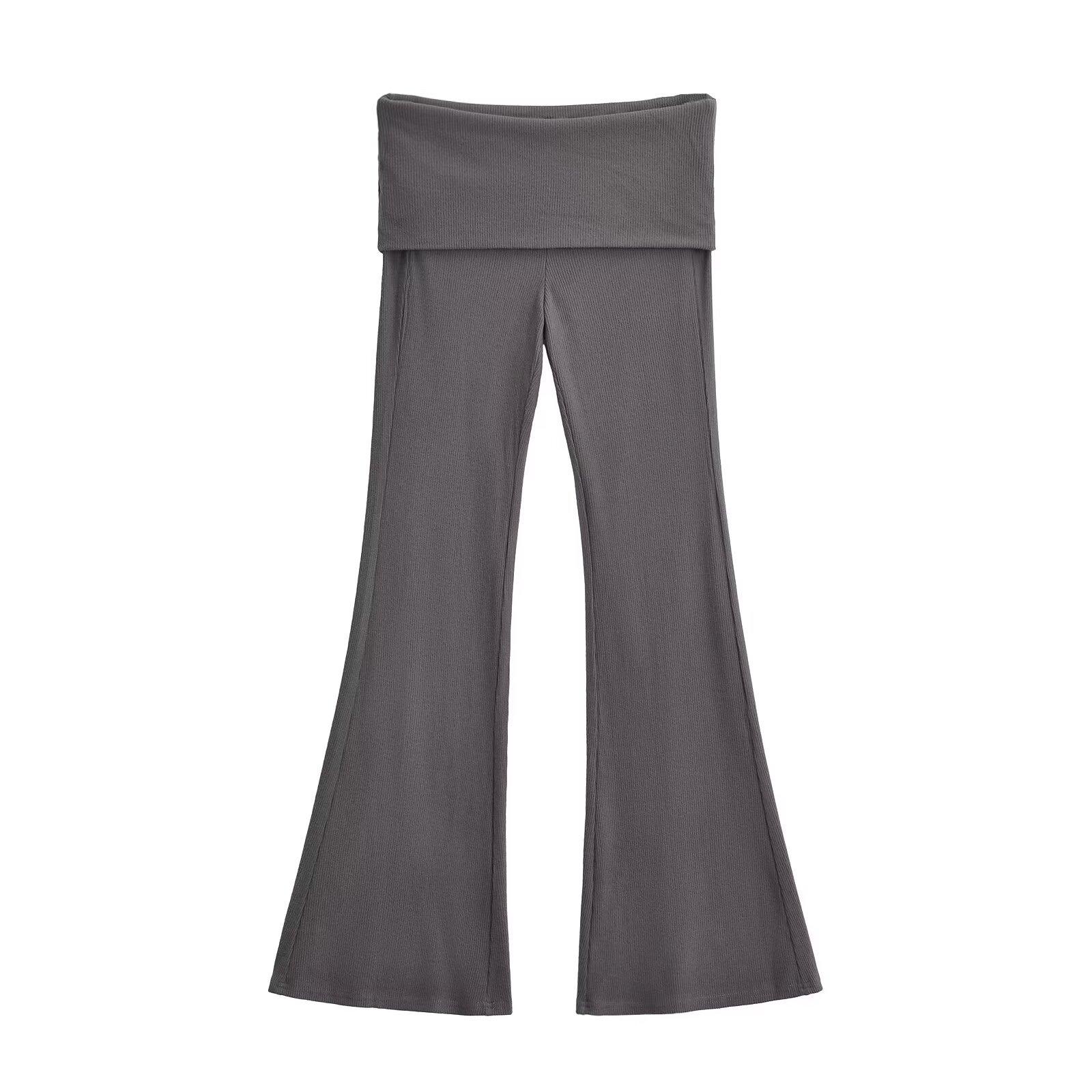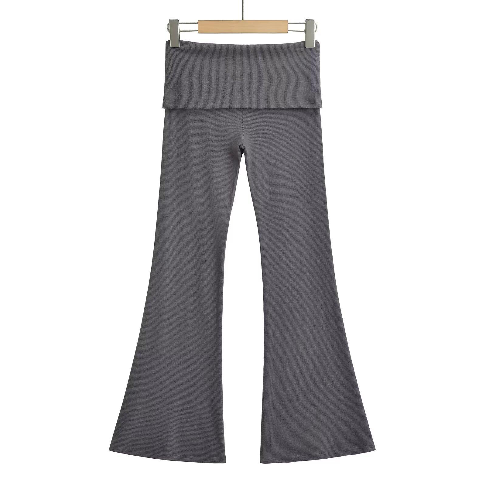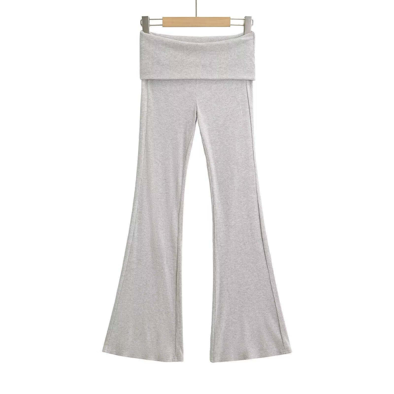 Diseño sentido pila cintura vuelta micro acampanados pantalones mujer 2024 otoño nuevo europeo y americano chica caliente casual elástico pantalones casuales