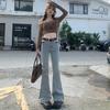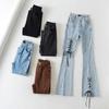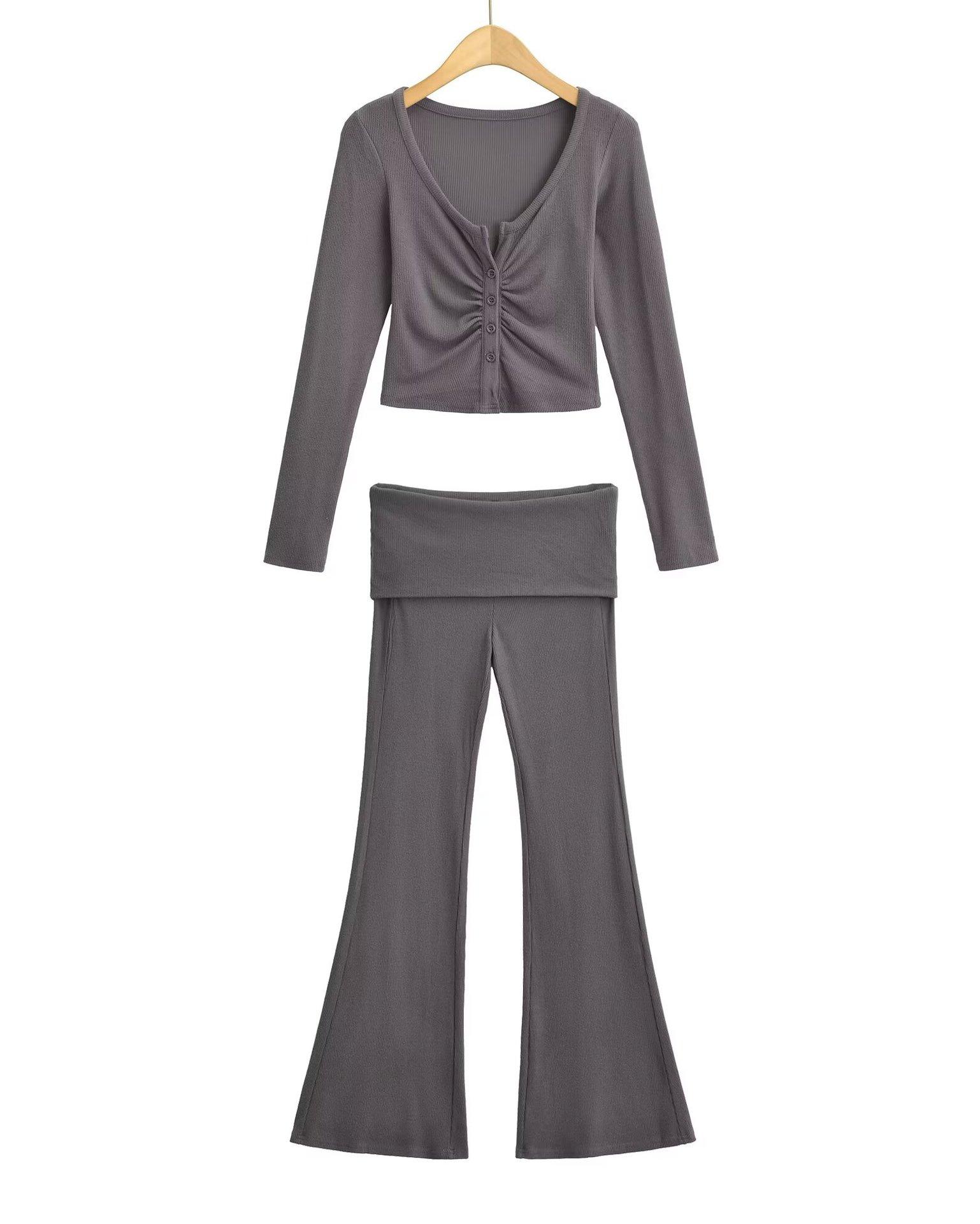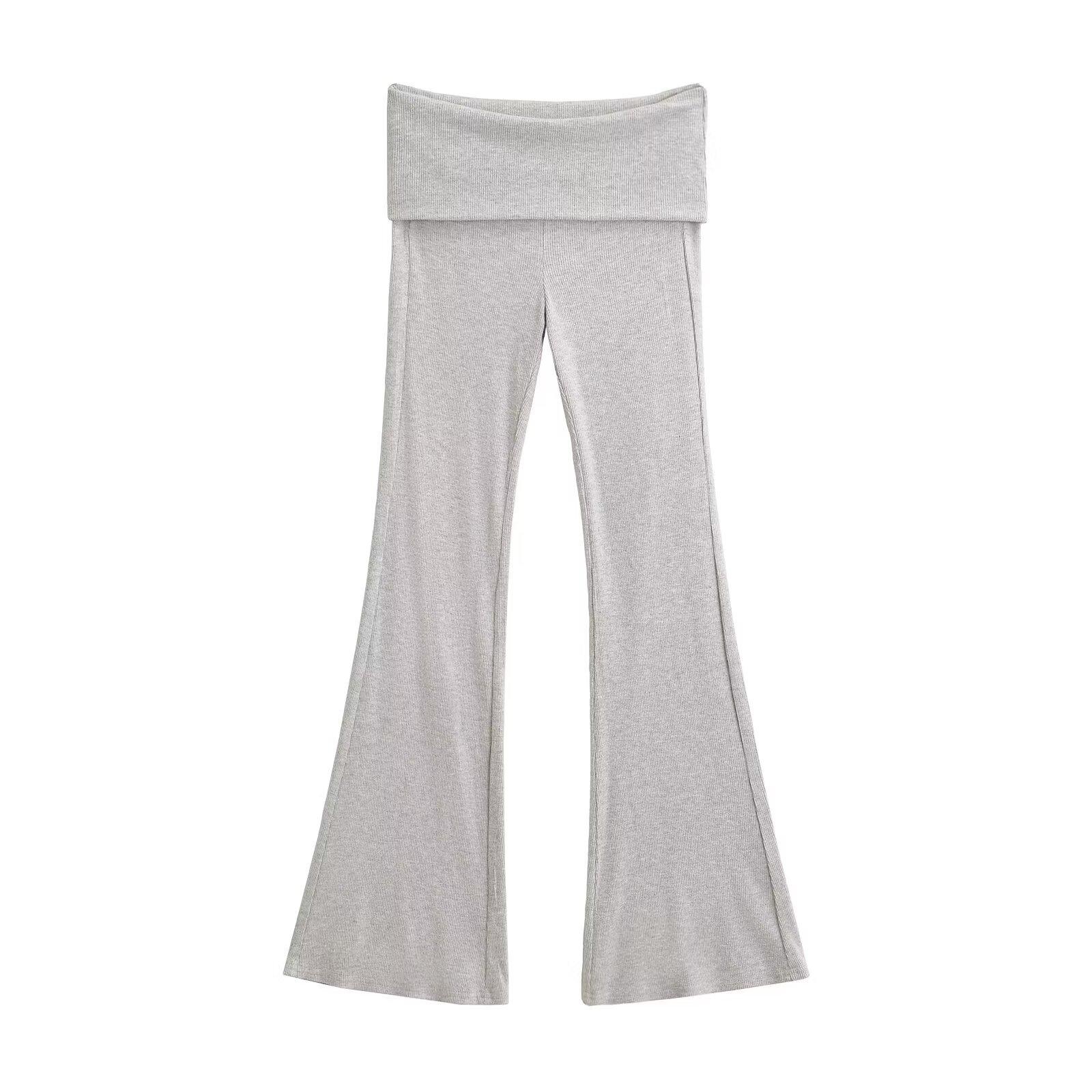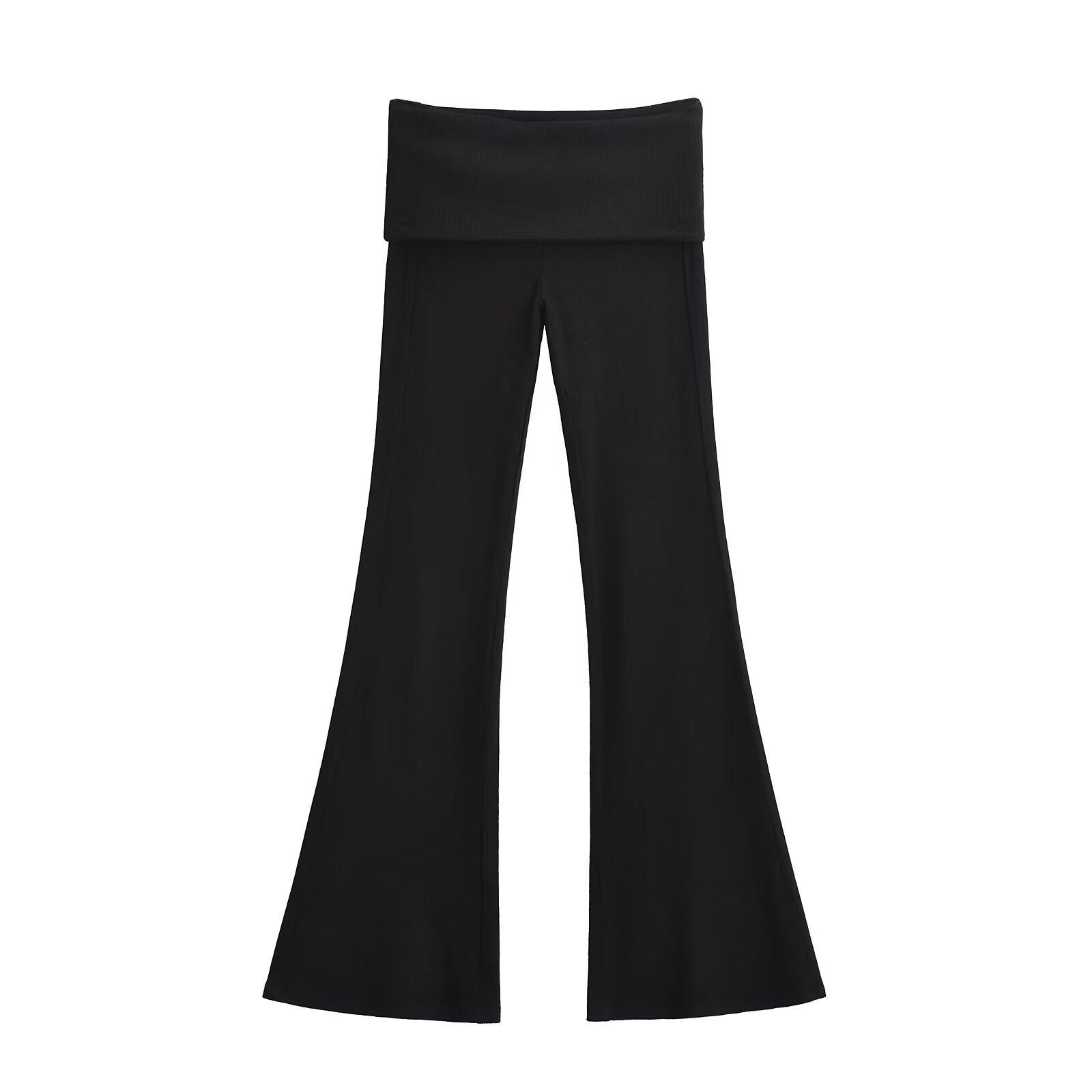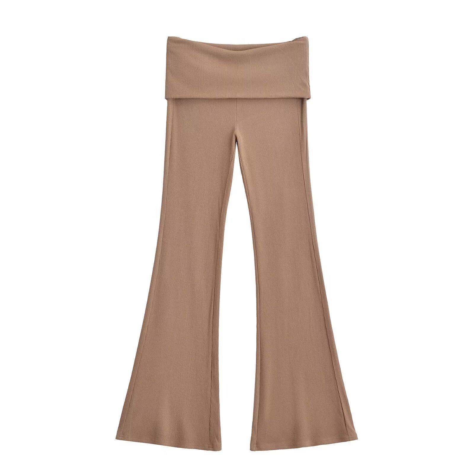 Diseño sentido pila cintura vuelta micro acampanados pantalones mujer 2024 otoño nuevo europeo y americano chica caliente casual elástico pantalones casuales