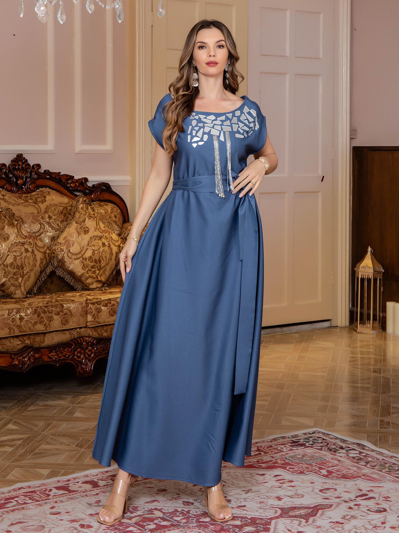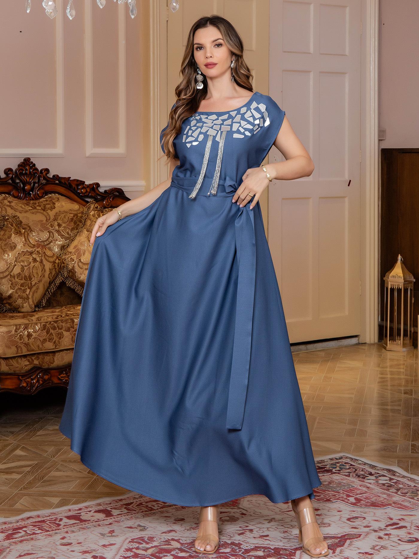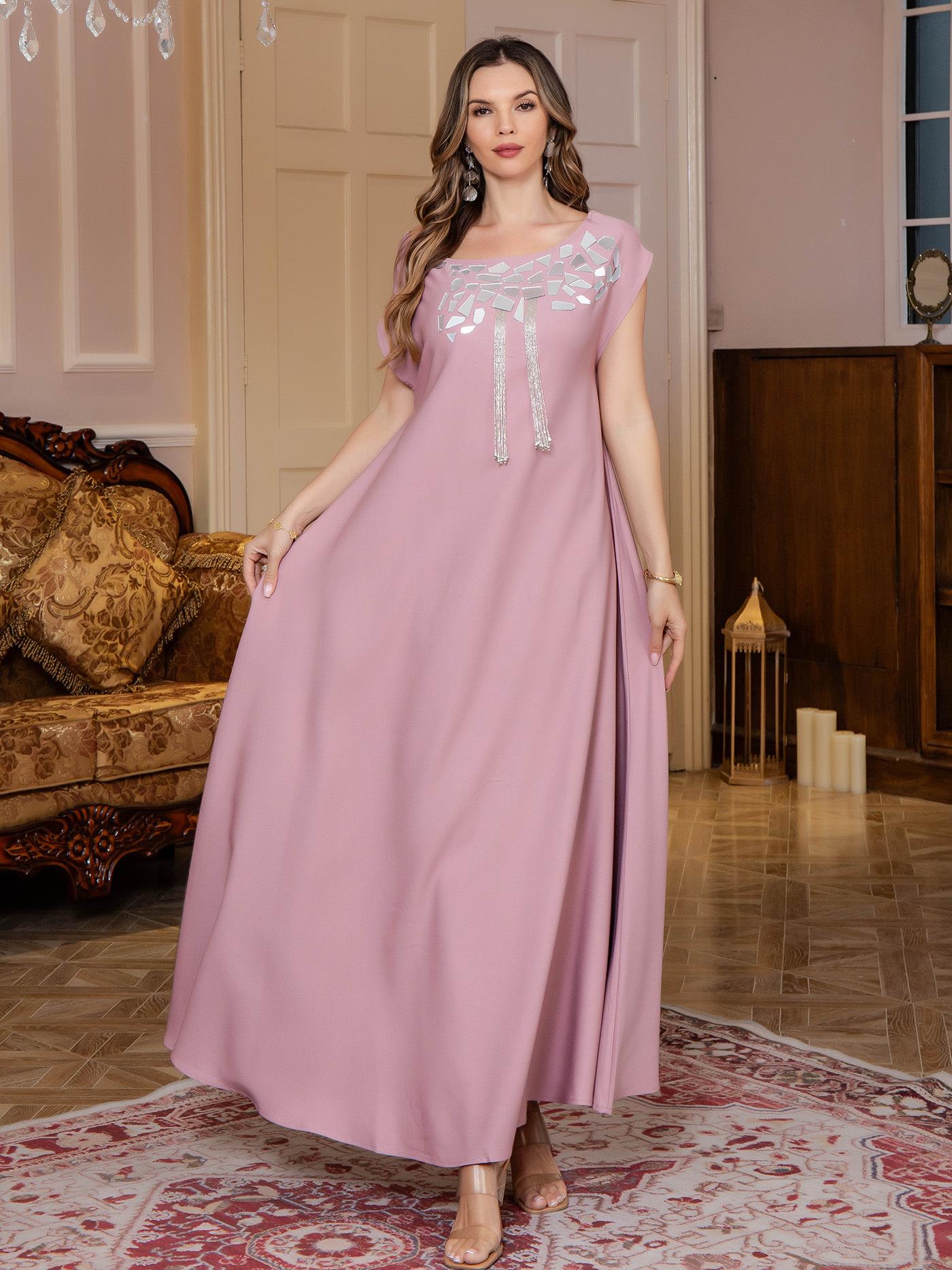 Comercio exterior Mujeres musulmanas Túnica musulmana Oriente Medio Ligero Lujo Vestido de lentejuelas Abaya Vestido de noche Venta al por mayor