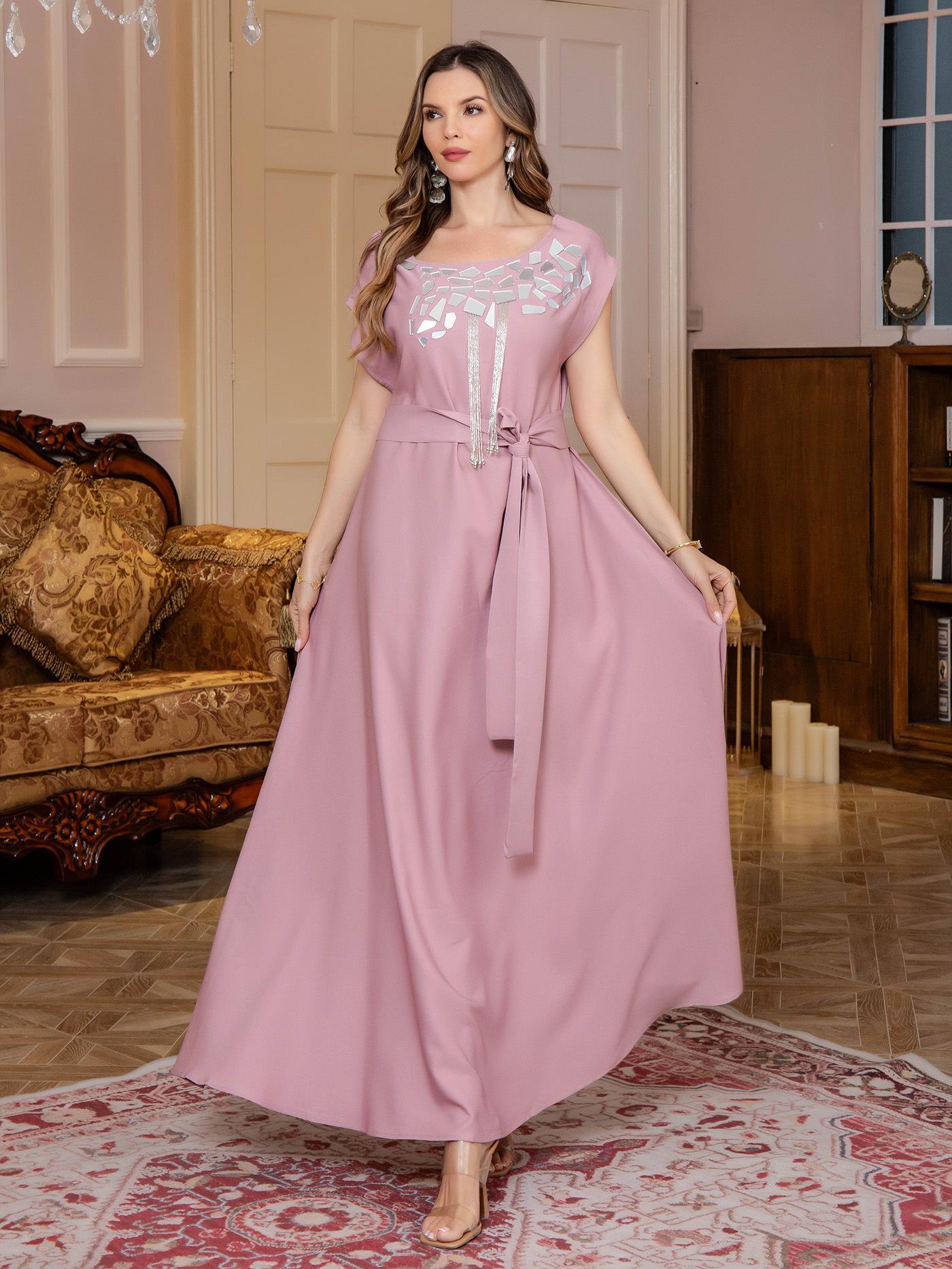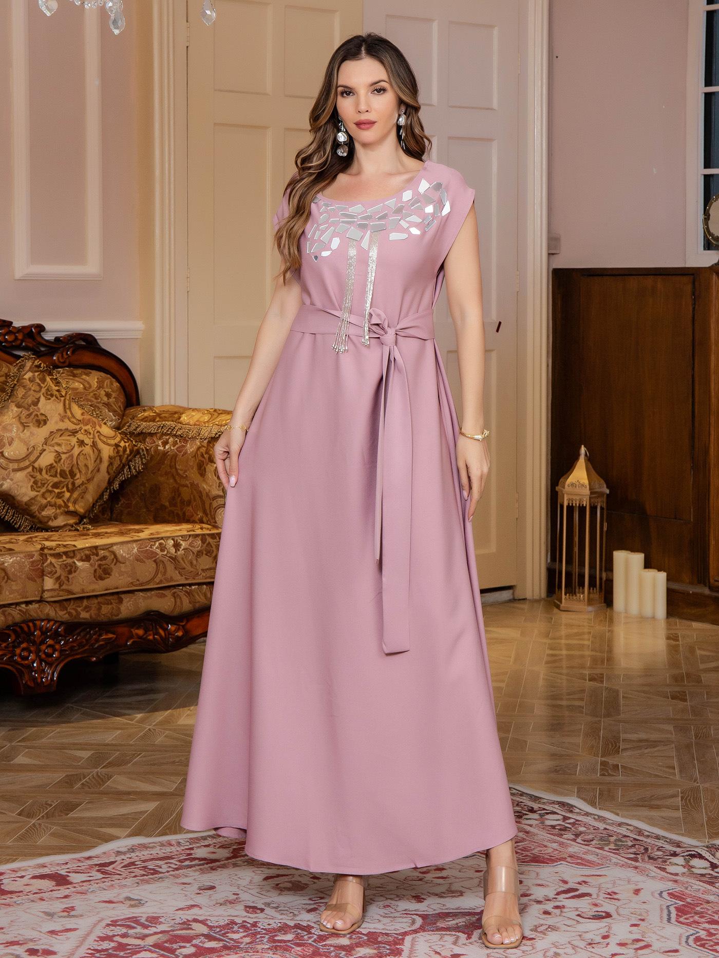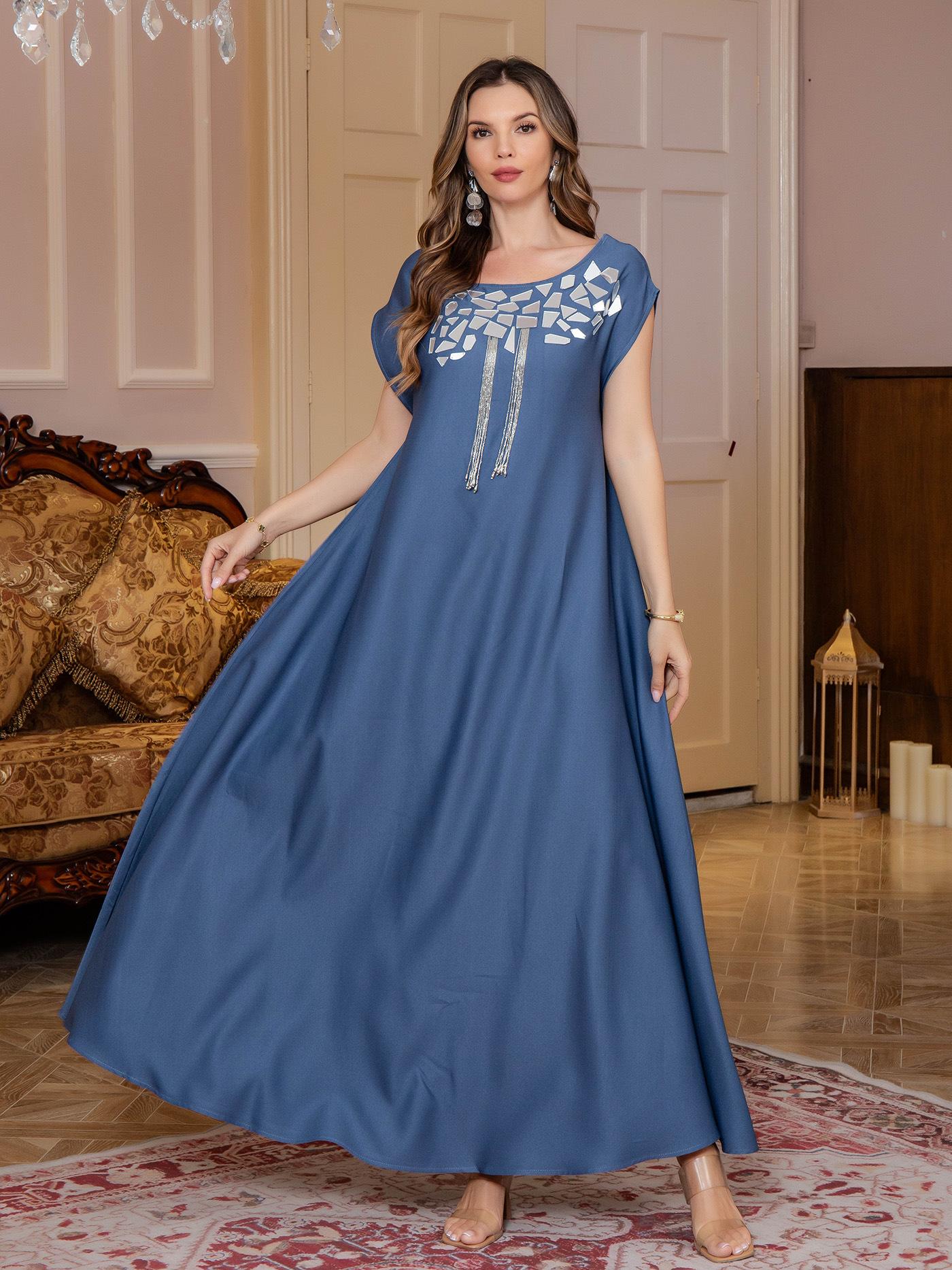 Comercio exterior Mujeres musulmanas Túnica musulmana Oriente Medio Ligero Lujo Vestido de lentejuelas Abaya Vestido de noche Venta al por mayor