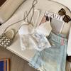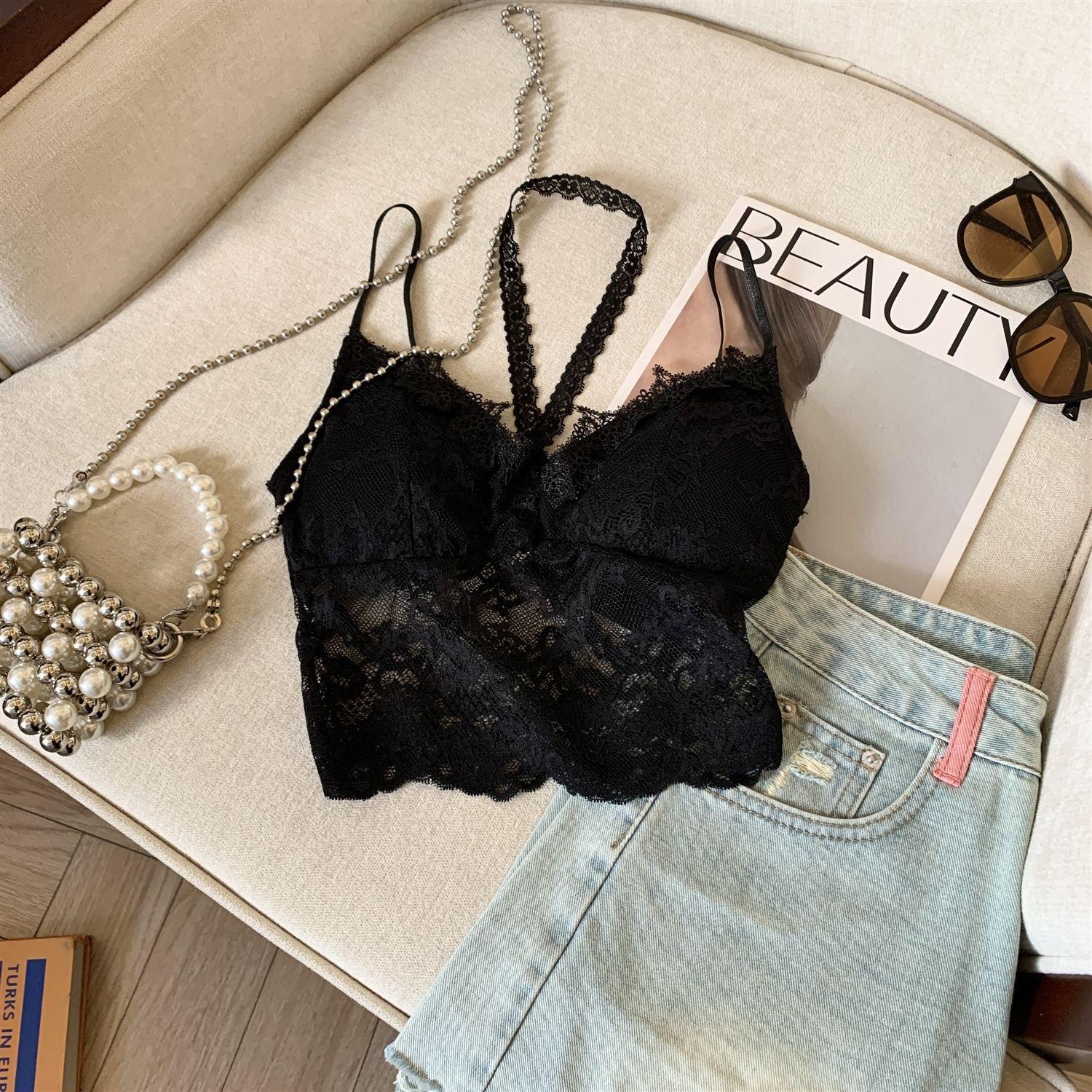 Camisola de verano n.° 792 con cuello de encaje, nueva, para mujer, con almohadillas para el pecho y diseño hueco de encaje, Pure Desire.