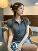 Camiseta de Manga Corta con Cuello Polo Estilo Universitario Coreano para Mujer, Nueva Colección Primavera/Verano 2026 Estilo Americano Hombro Normal Adelgazante y Impresionante Top
