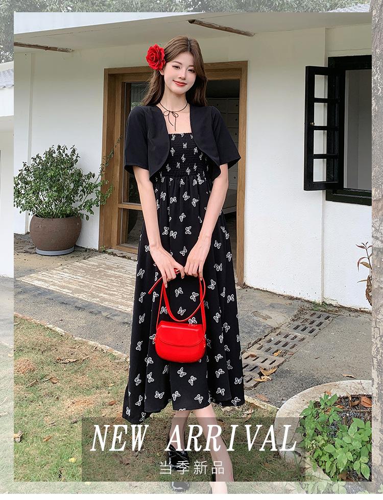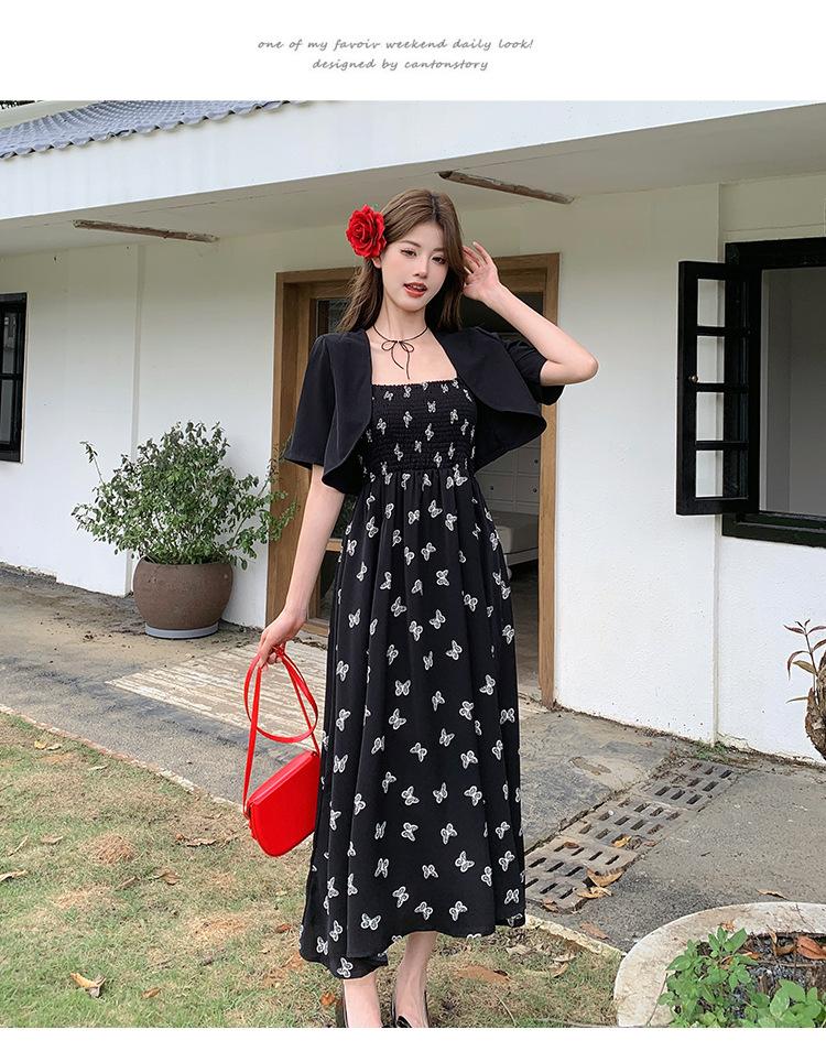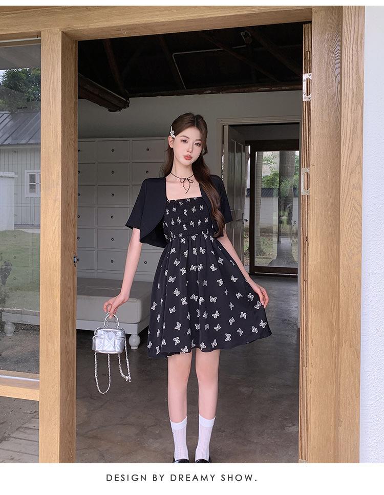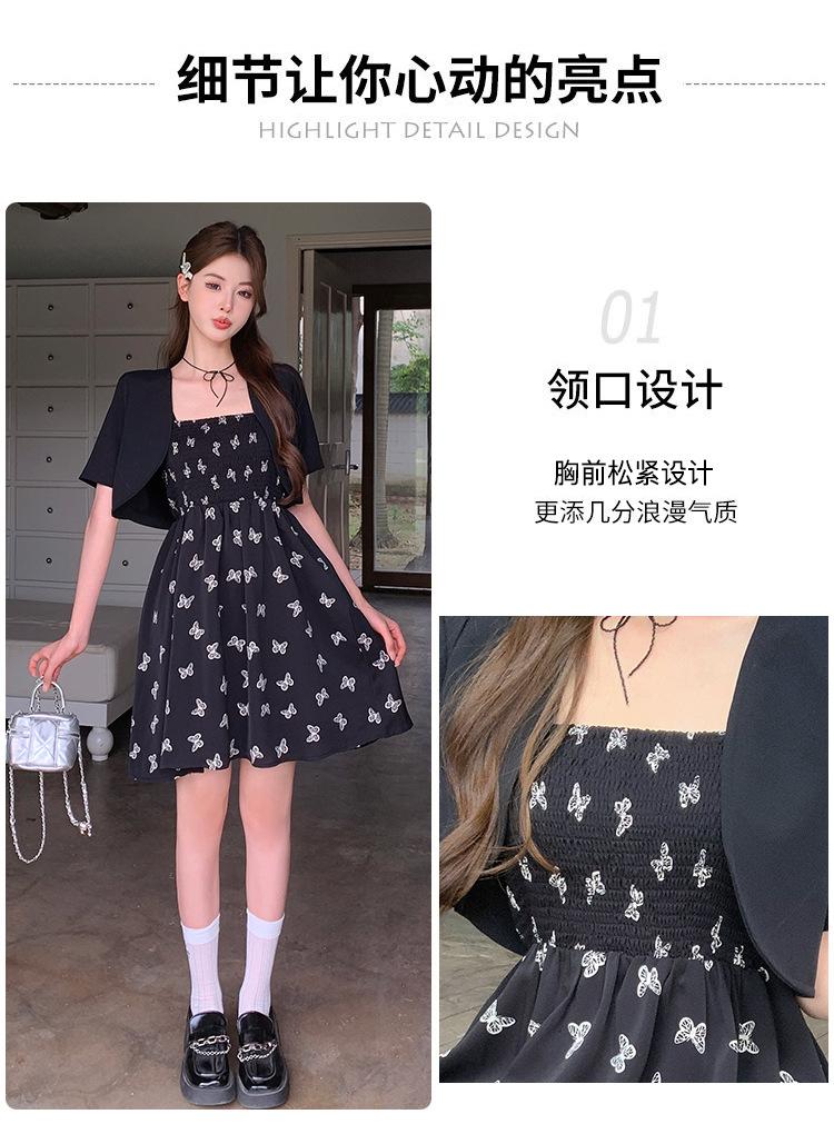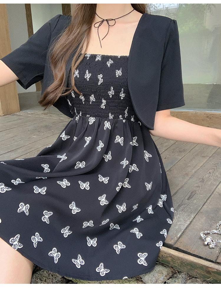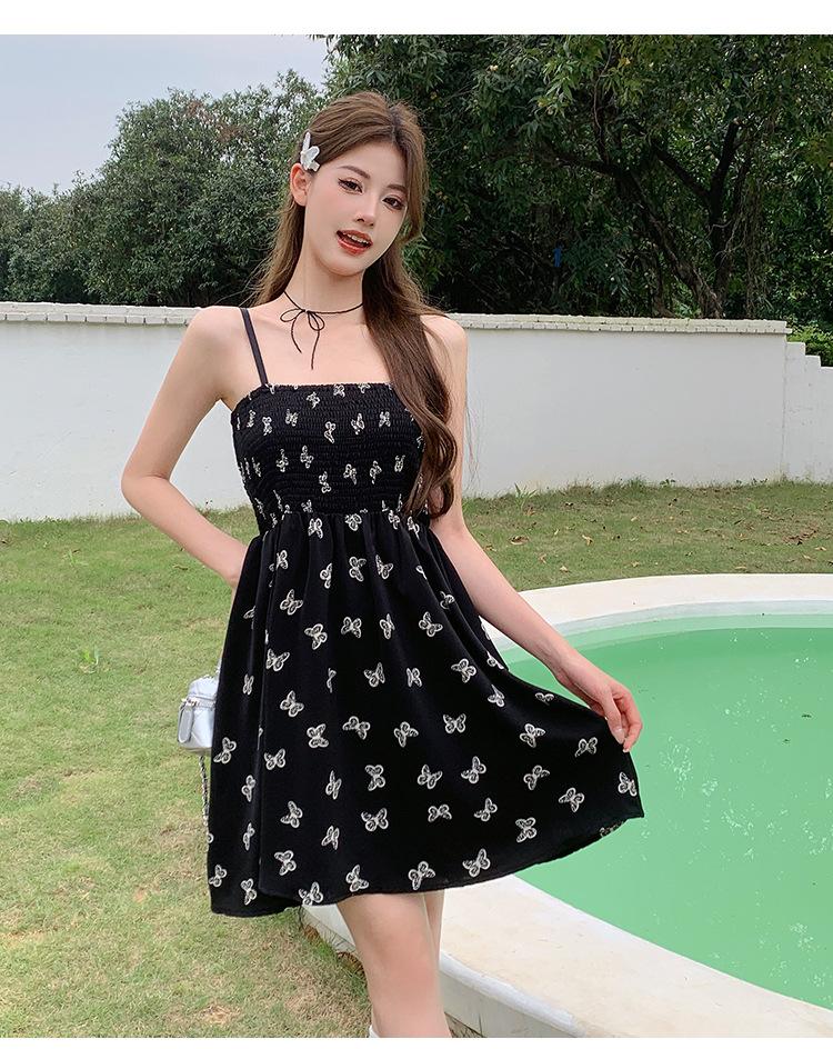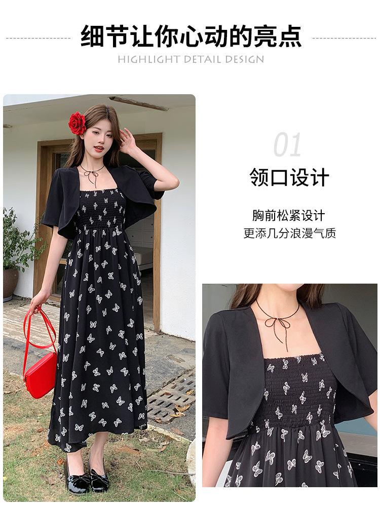 Talla grande Verano para mujer Nuevo chica gordita Citable Vestido traje Atmosférico Cintura Mariposa Falda Slip Chal Conjunto de dos piezas