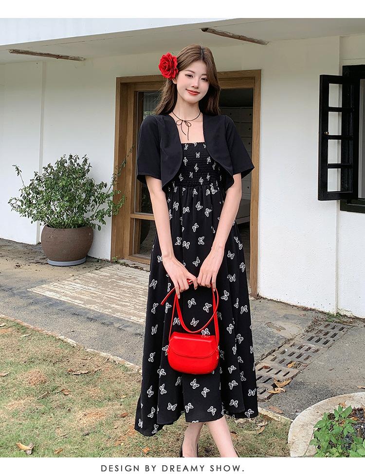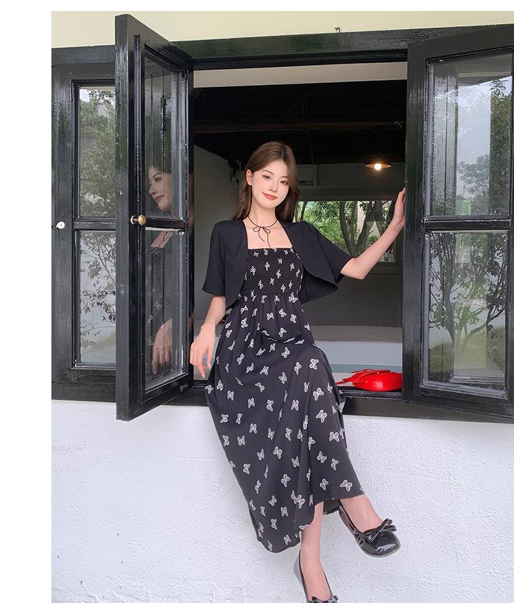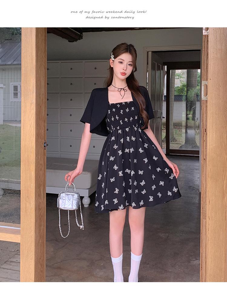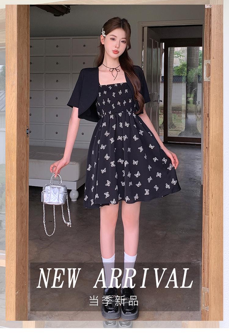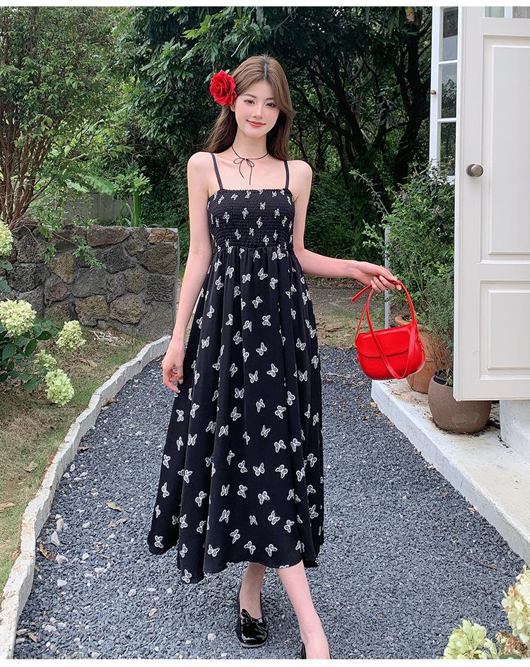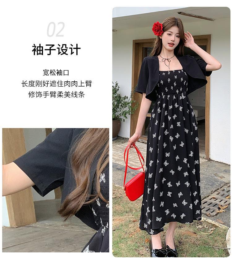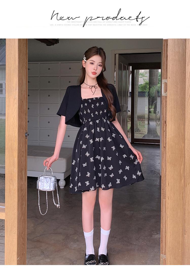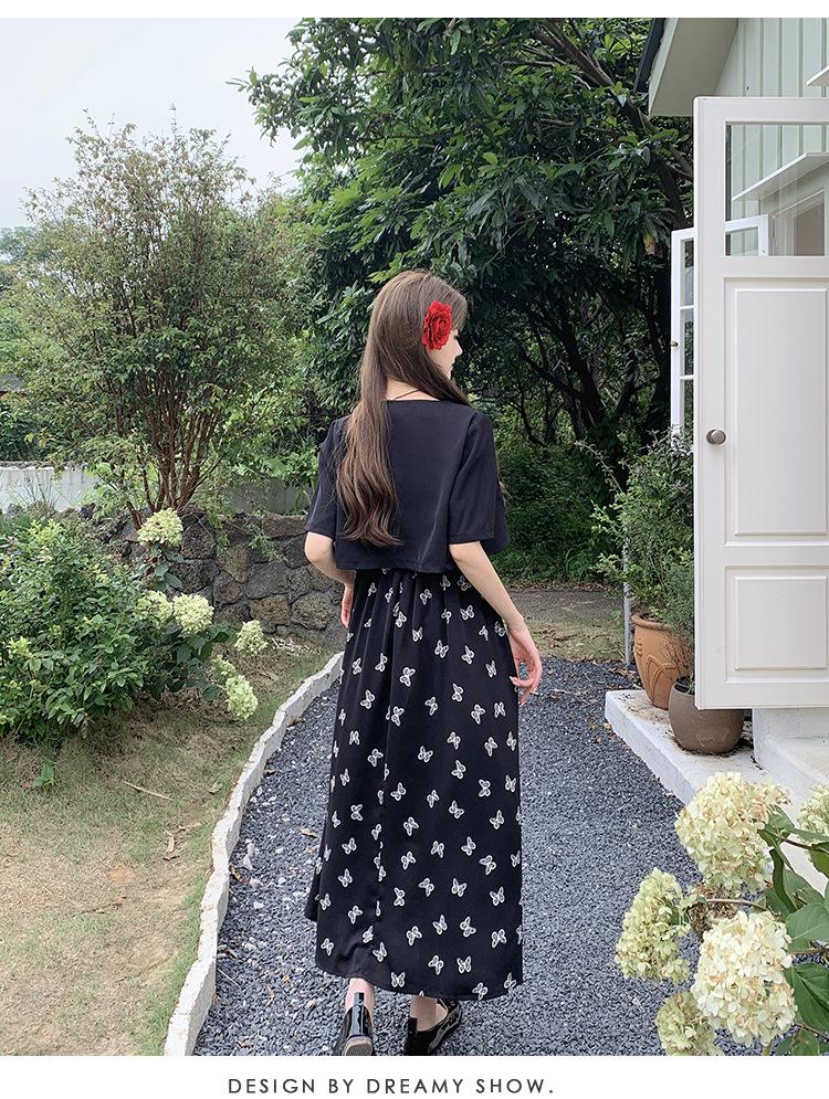 Talla grande Verano para mujer Nuevo chica gordita Citable Vestido traje Atmosférico Cintura Mariposa Falda Slip Chal Conjunto de dos piezas