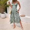 Vestido de Tirantes Estilo Vacacional Europeo y Americano para Mujer Transfronterizo Primavera y Verano 2025 Nuevo Estilo Diseño Asimétrico a Rayas Falda Larga