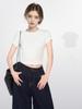 Camiseta Blanca de Cuello Redondo con Hombro Descubierto de Manga Corta para Mujer Verano Corta con Ombligo Descubierto Ajustada Camiseta Interior Básica Top Irregular de Chica Caliente