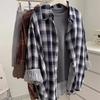 ¡Camisa de algodón a cuadros doble AB! 25 Camisa Protectora Solar Delgada de Otoño Temprano Holgada Coreana Delgada para Mujer