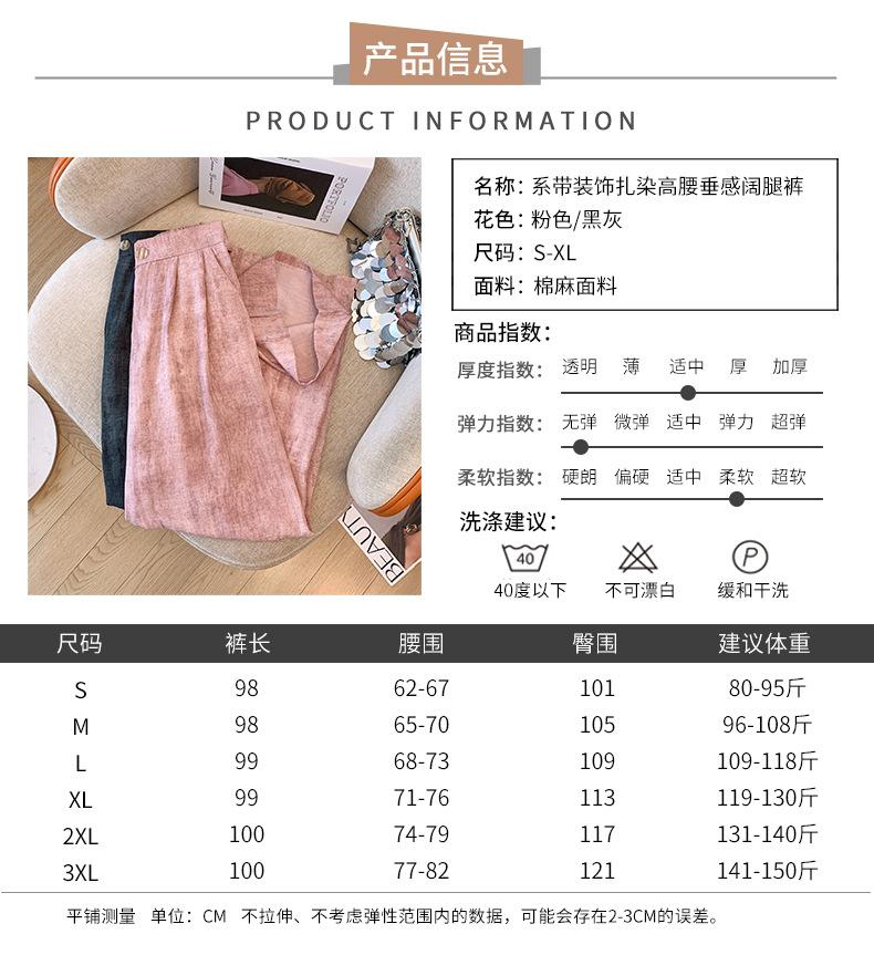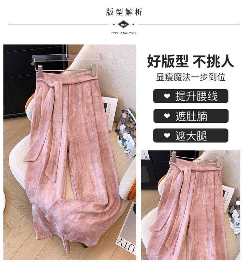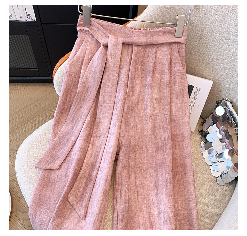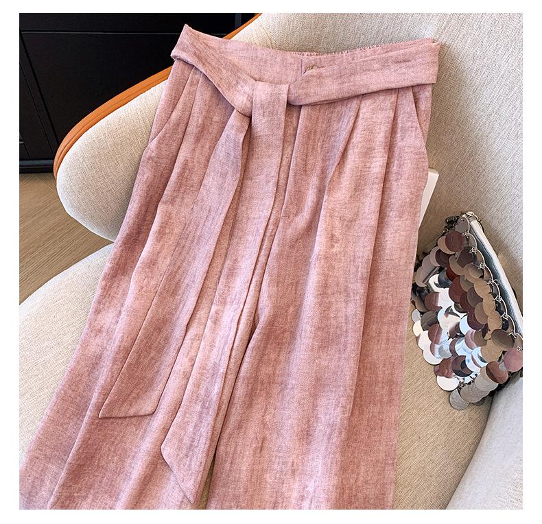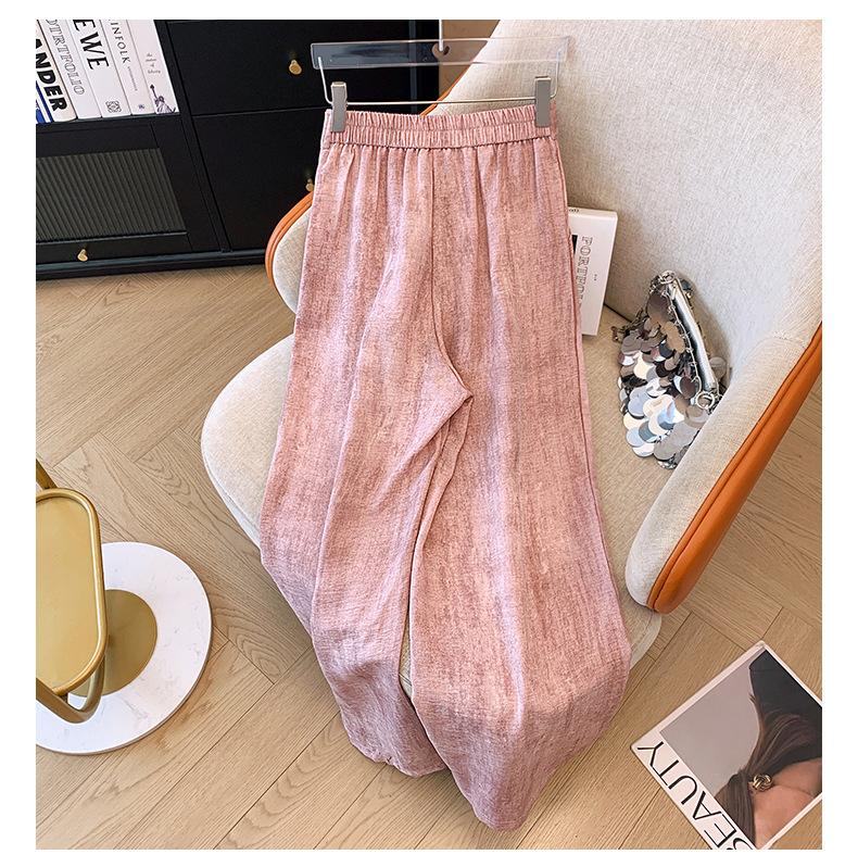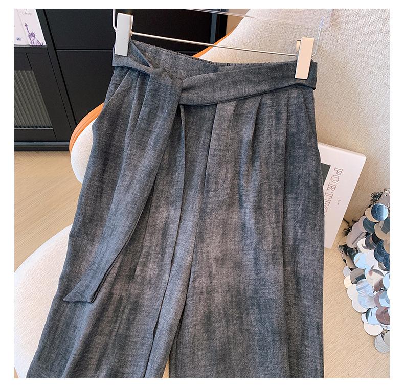 Pantalones anchos de cintura alta de lino teñido anudado de seda helada para mujer, pantalones casuales rectos de cintura alta, primavera 2025