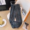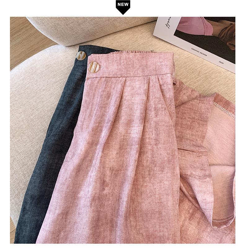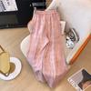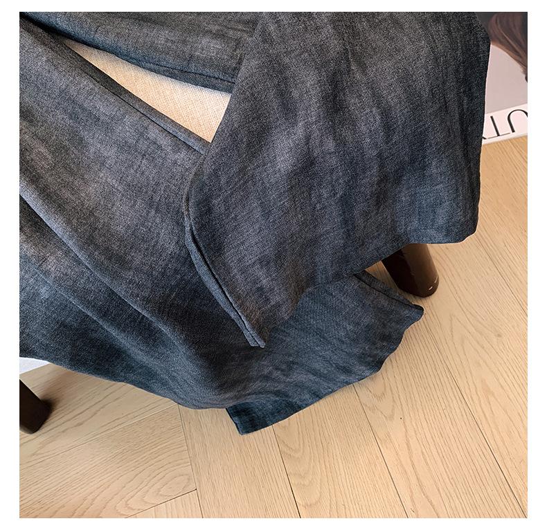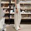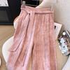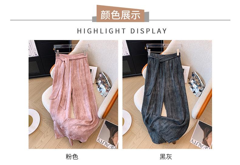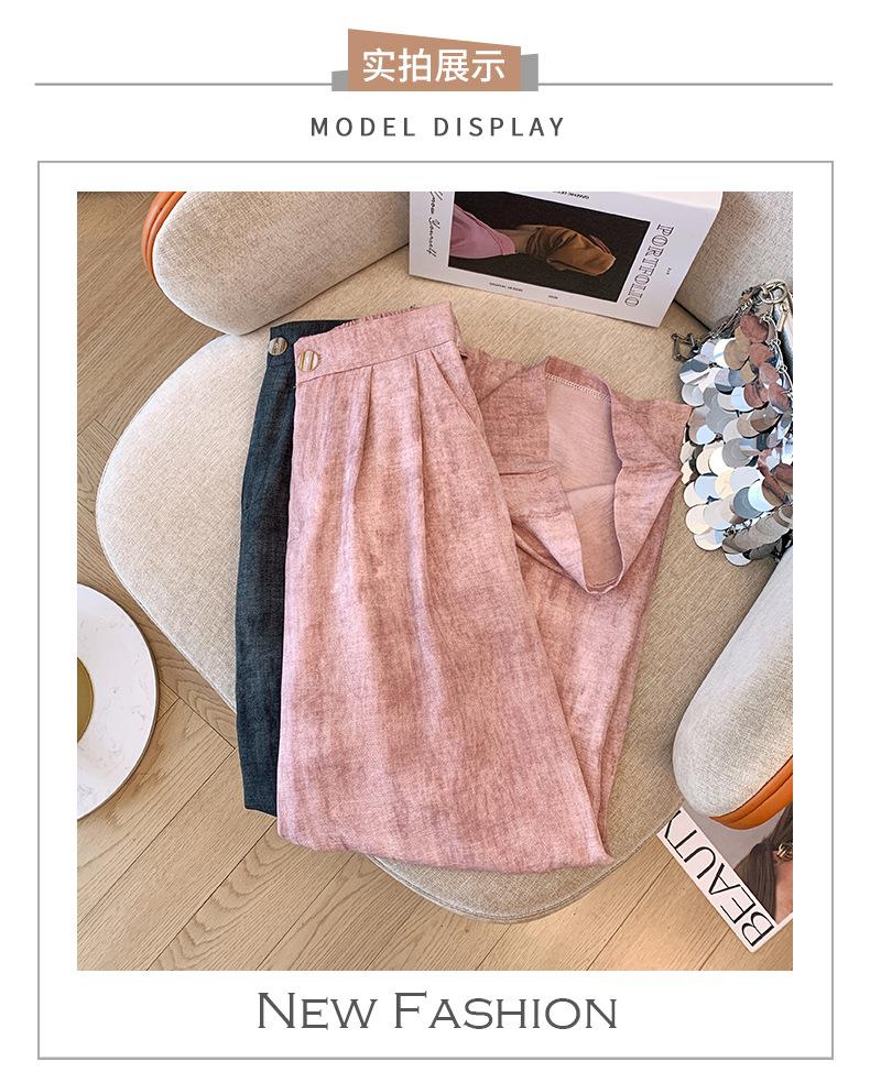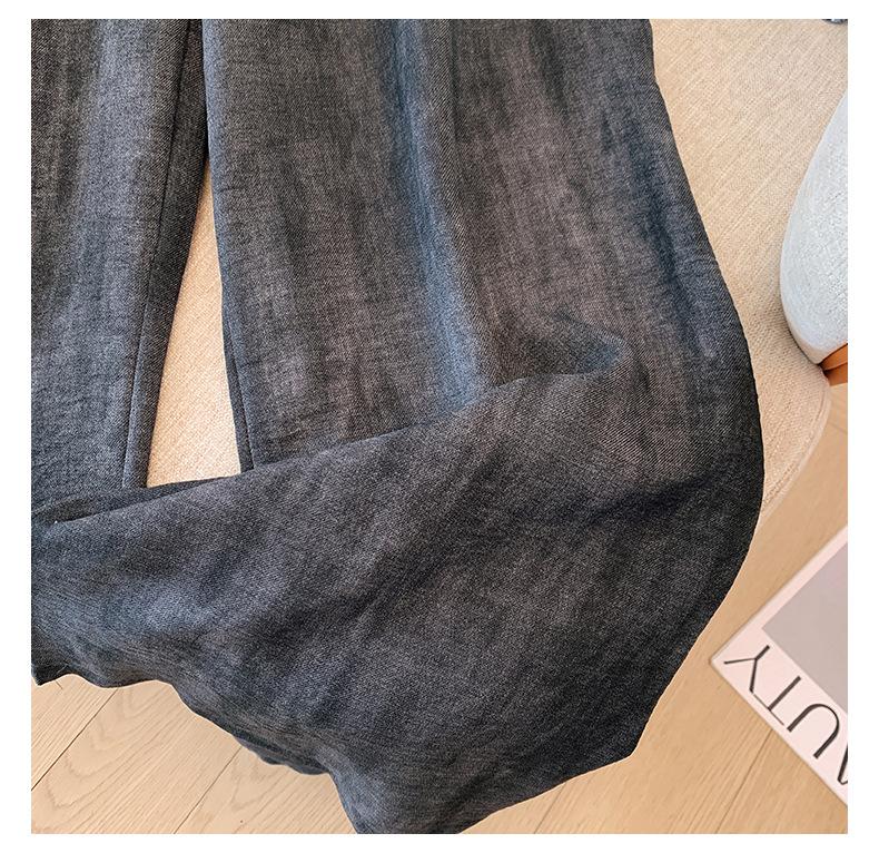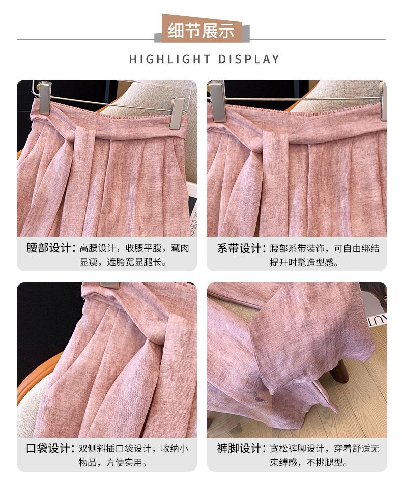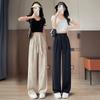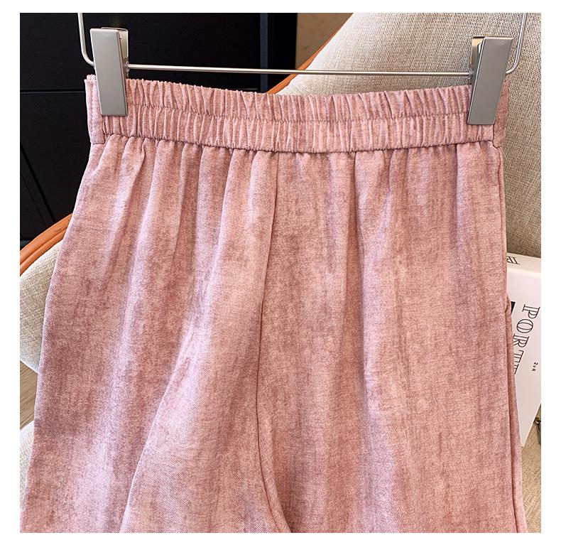 Pantalones anchos de cintura alta de lino teñido anudado de seda helada para mujer, pantalones casuales rectos de cintura alta, primavera 2025