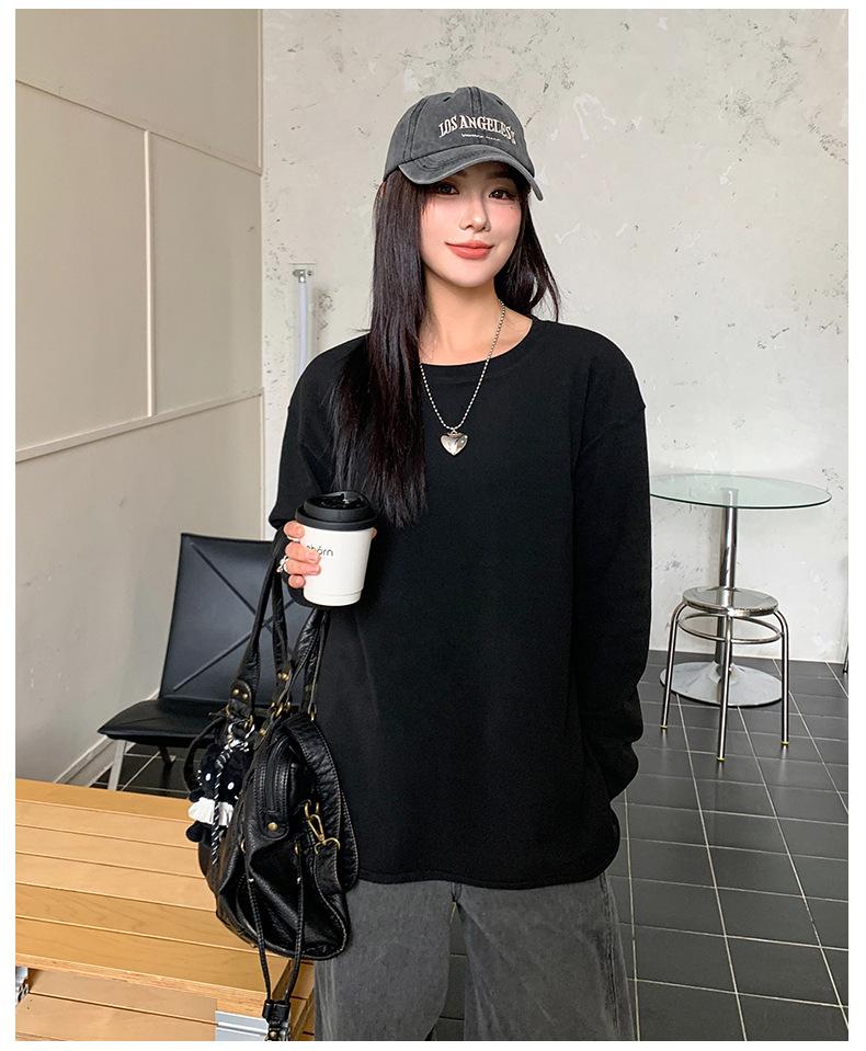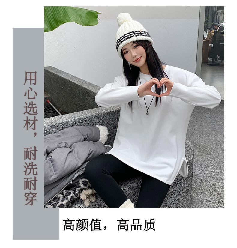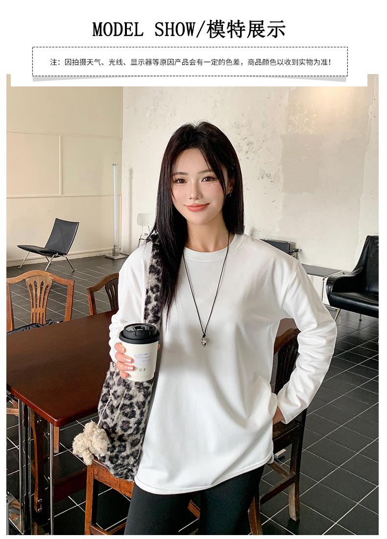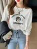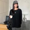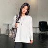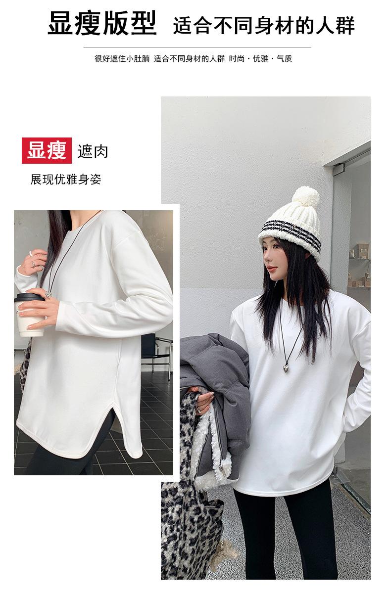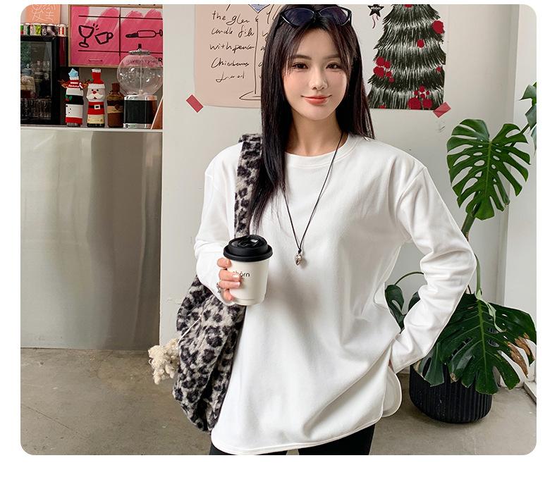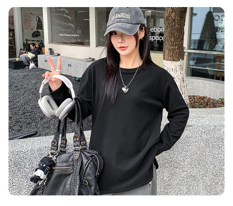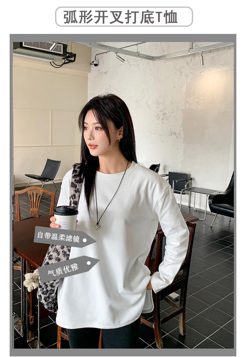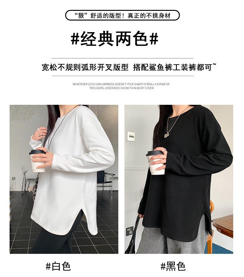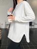 Camiseta blanca de manga larga con abertura curva para mujer, primavera y otoño, sencilla, holgada, de talla grande, color liso