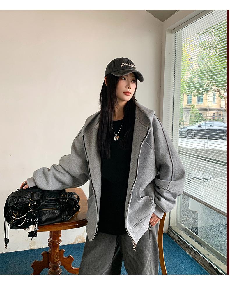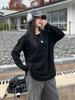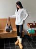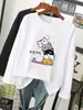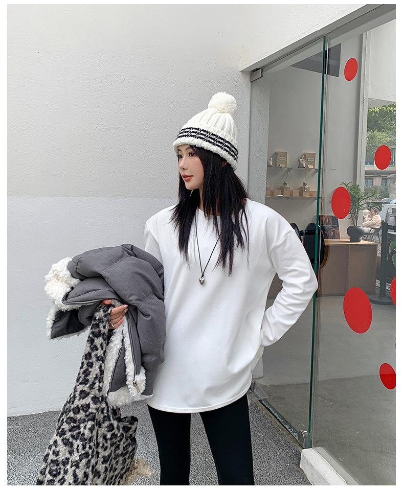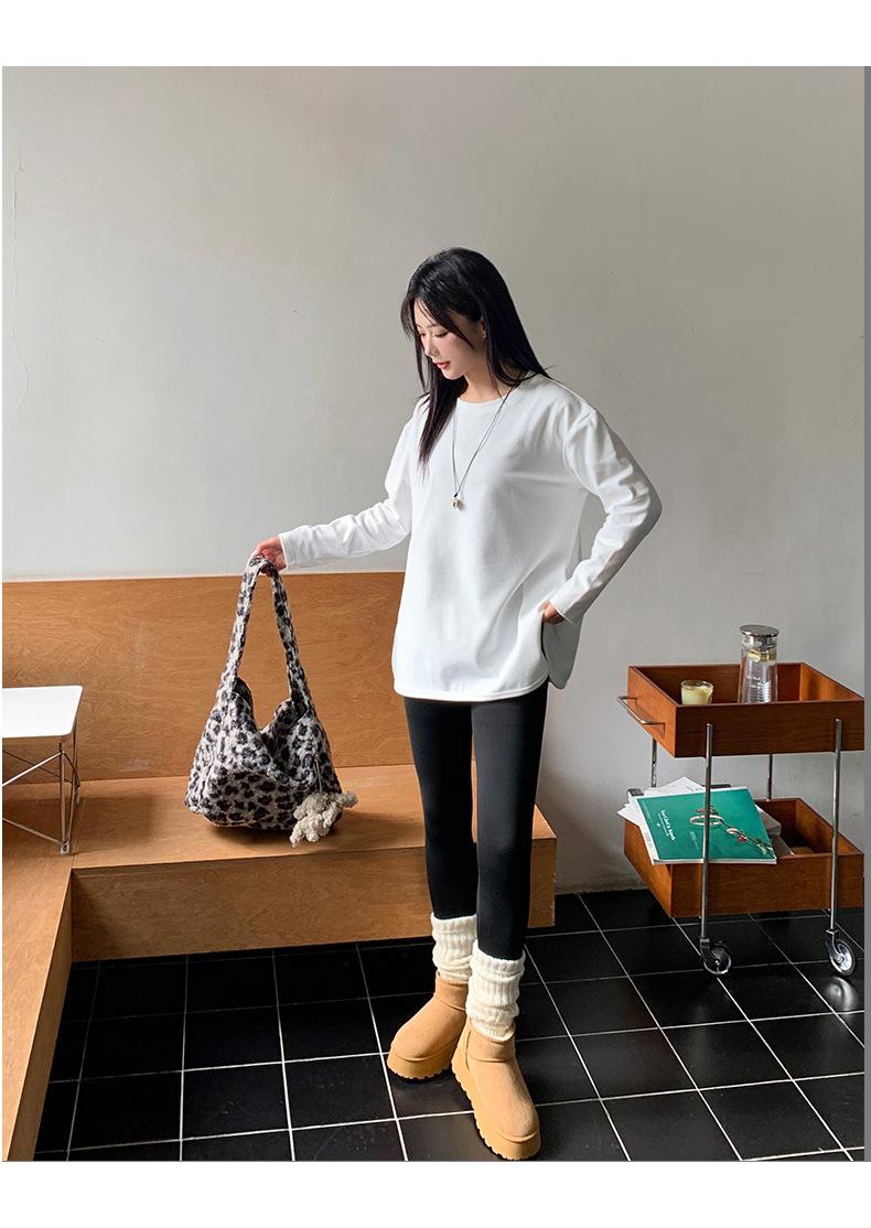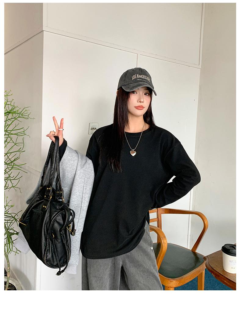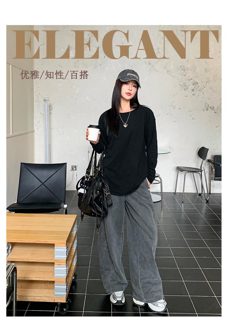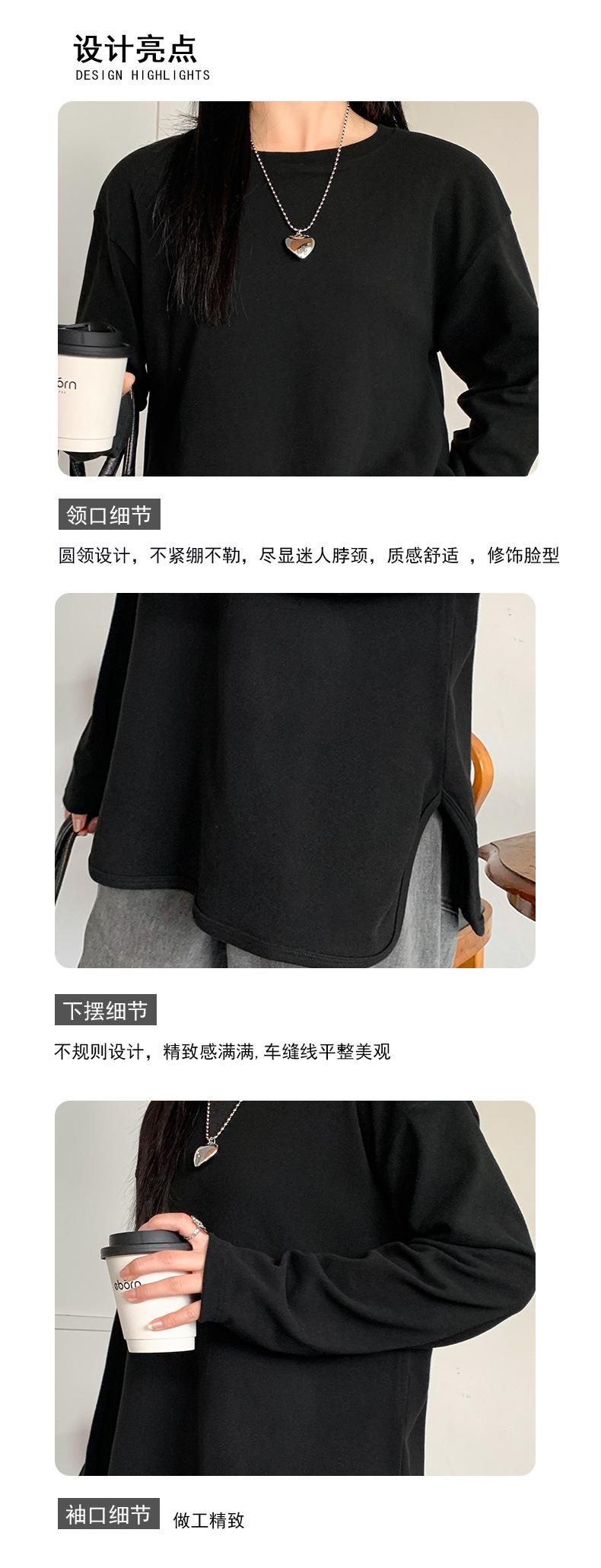 Camiseta blanca de manga larga con abertura curva para mujer, primavera y otoño, sencilla, holgada, de talla grande, color liso
