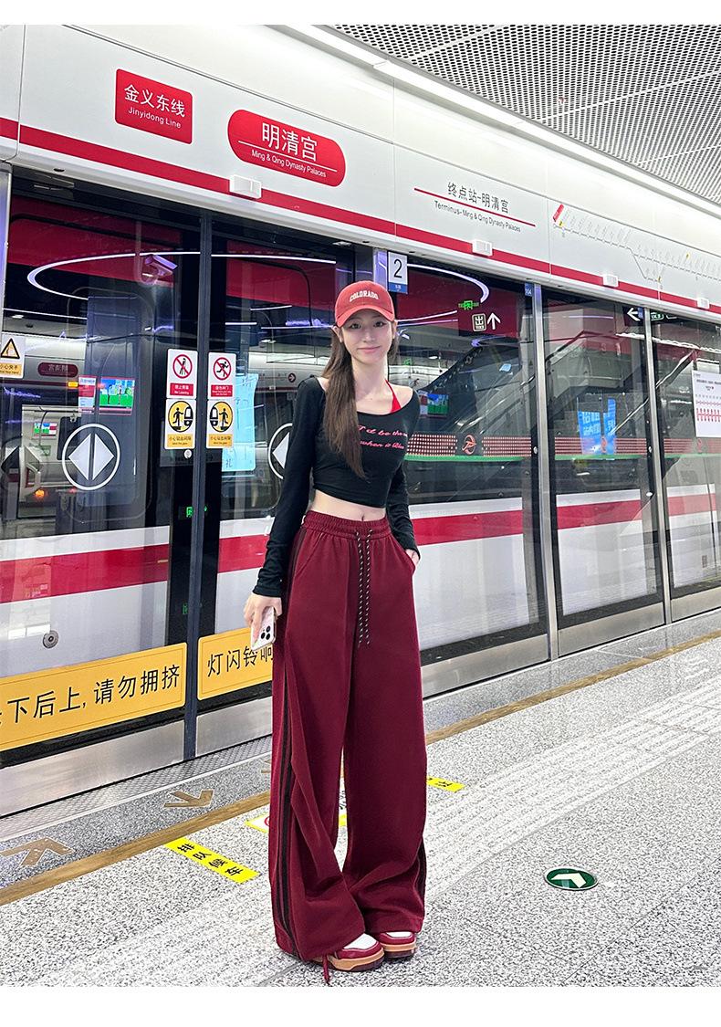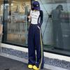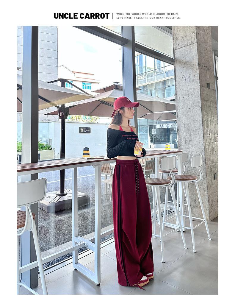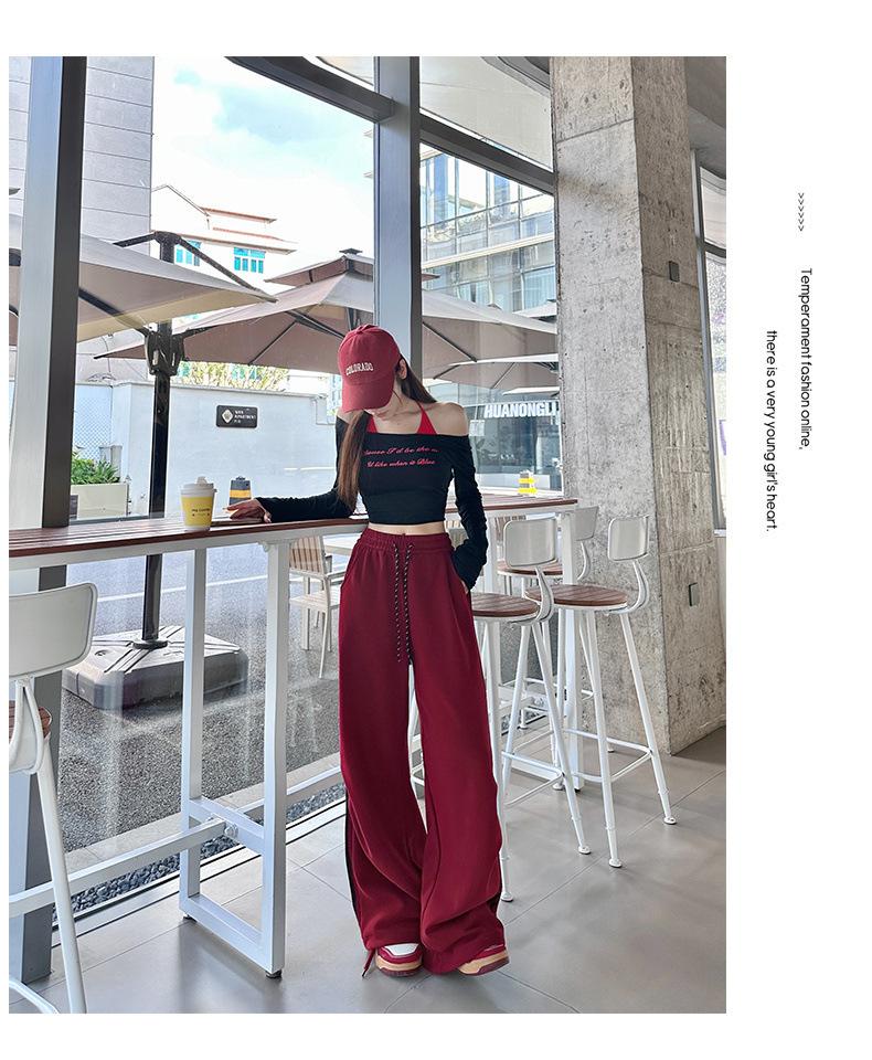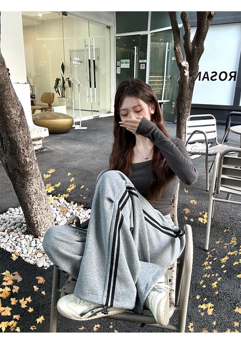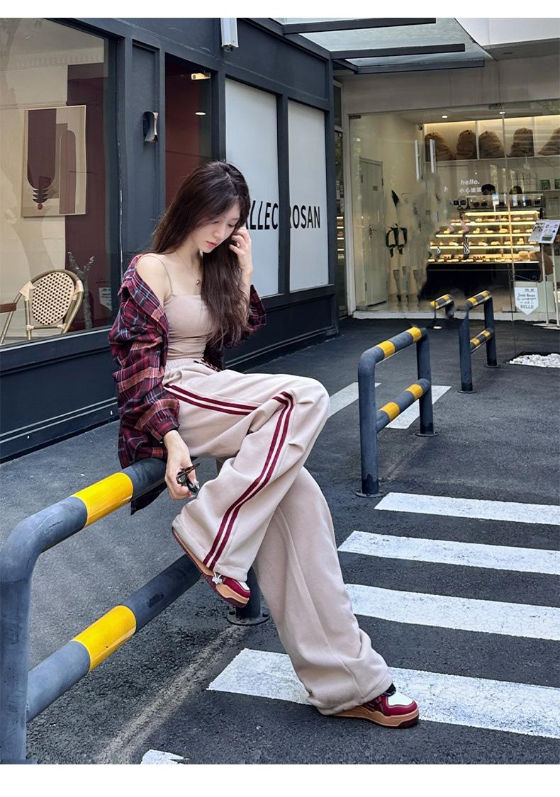 Pantalones deportivos de moda americana para mujer, primavera y otoño 2024, holgados, adelgazantes, de pierna recta, informales, a rayas, combinables.