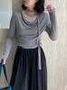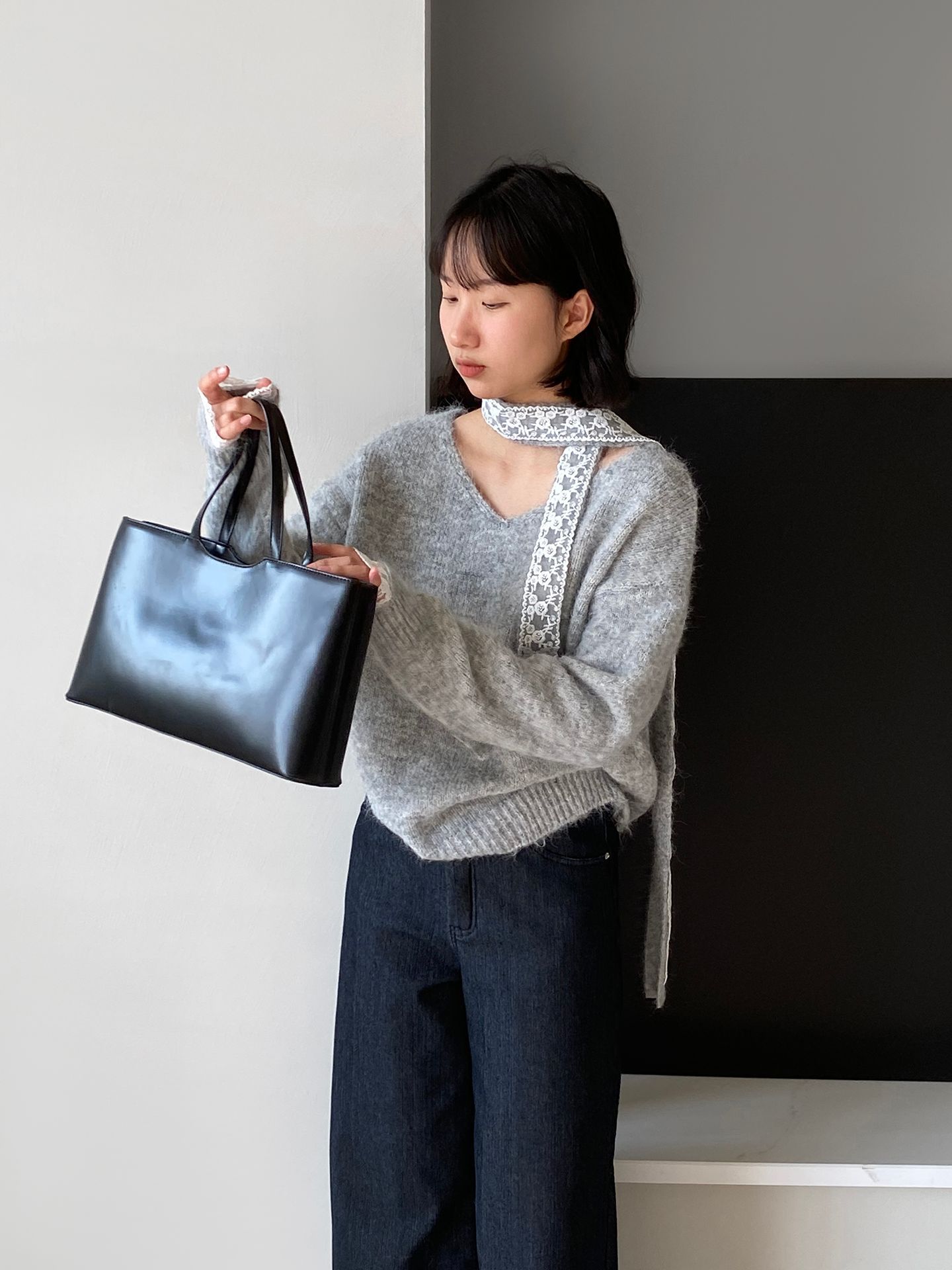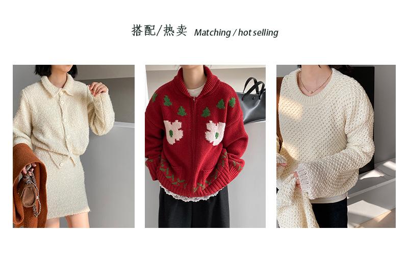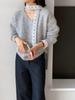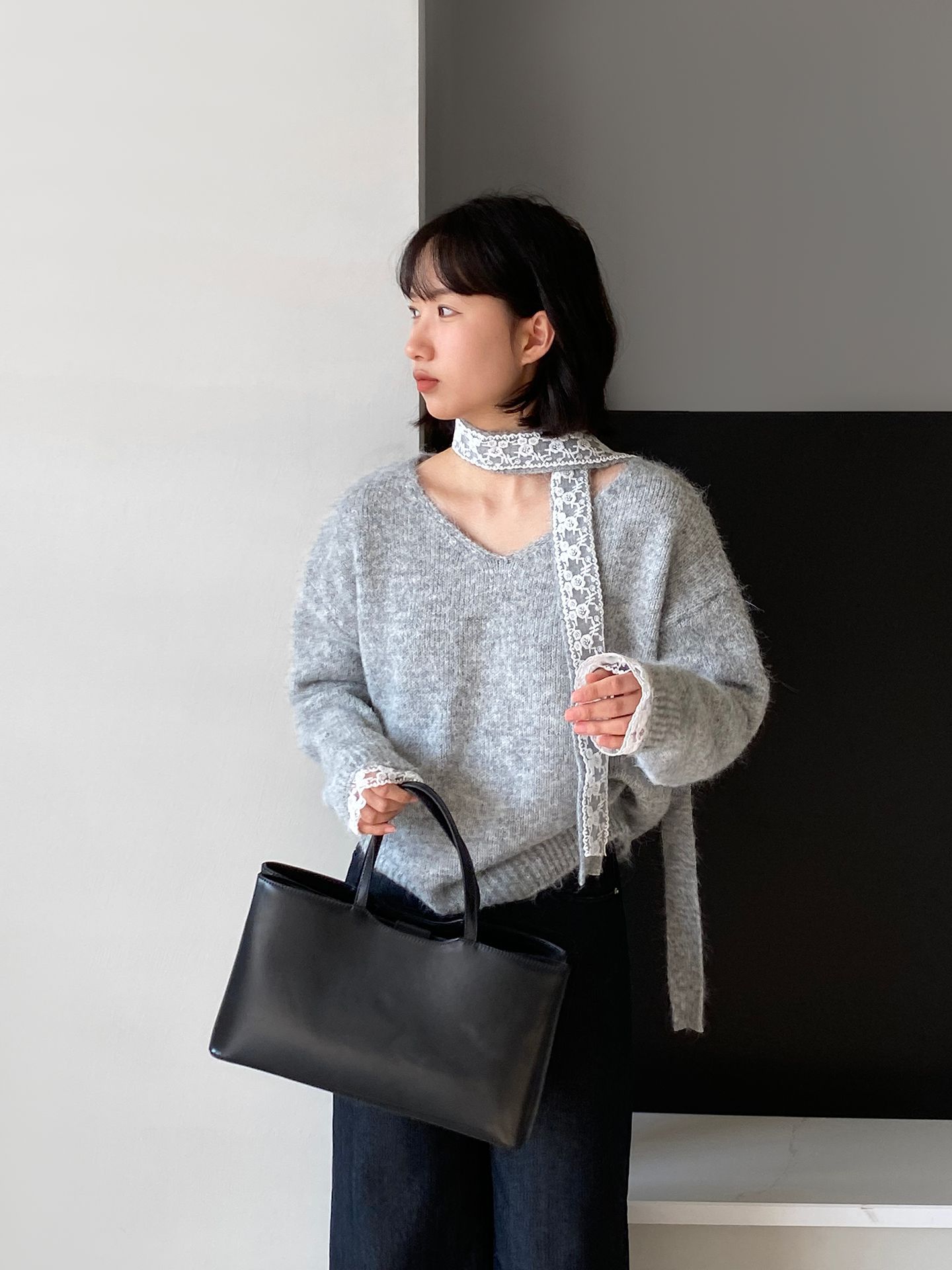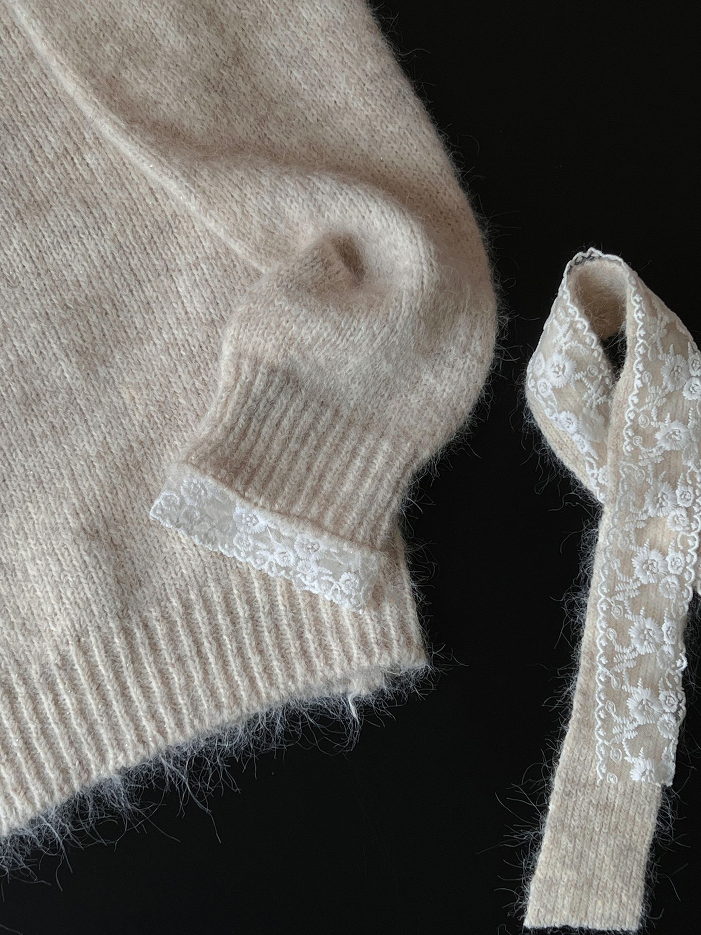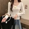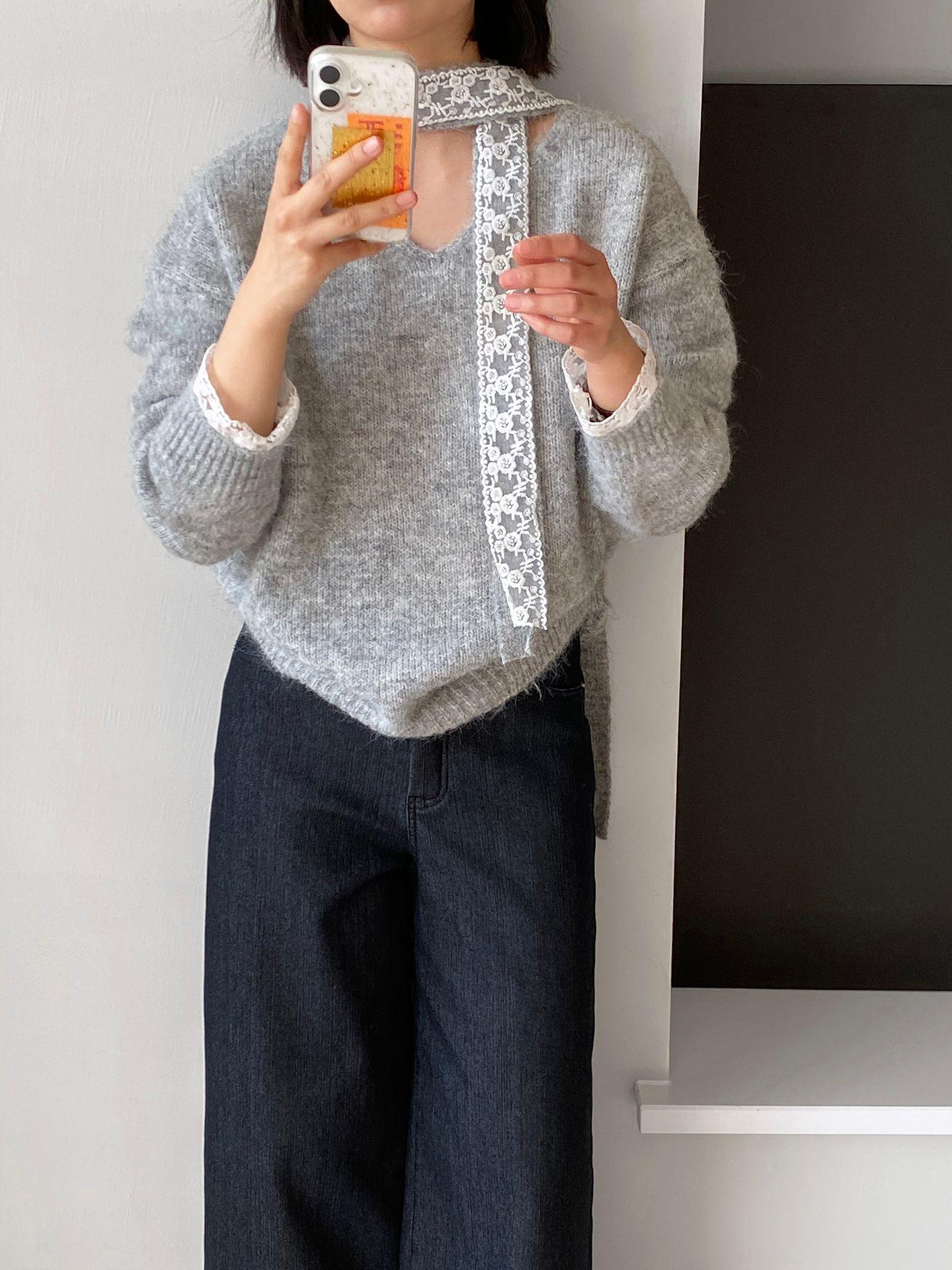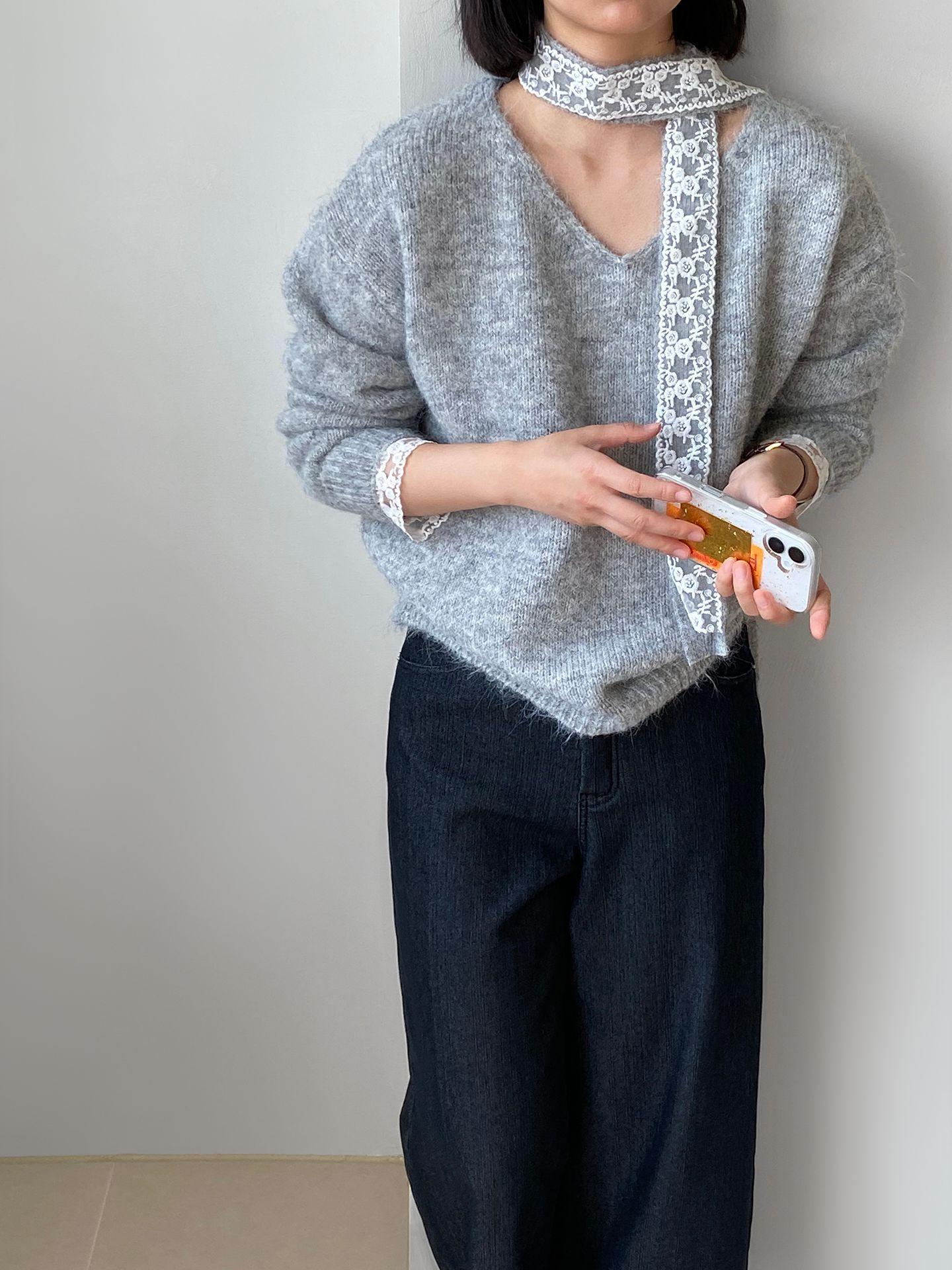 Suéter de punto suelto coreano de manga larga con cuello en V y cinta de encaje suave y ceroso de Jiangzuo para mujer, primavera y otoño, 8593