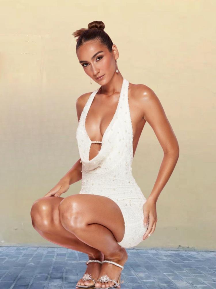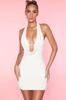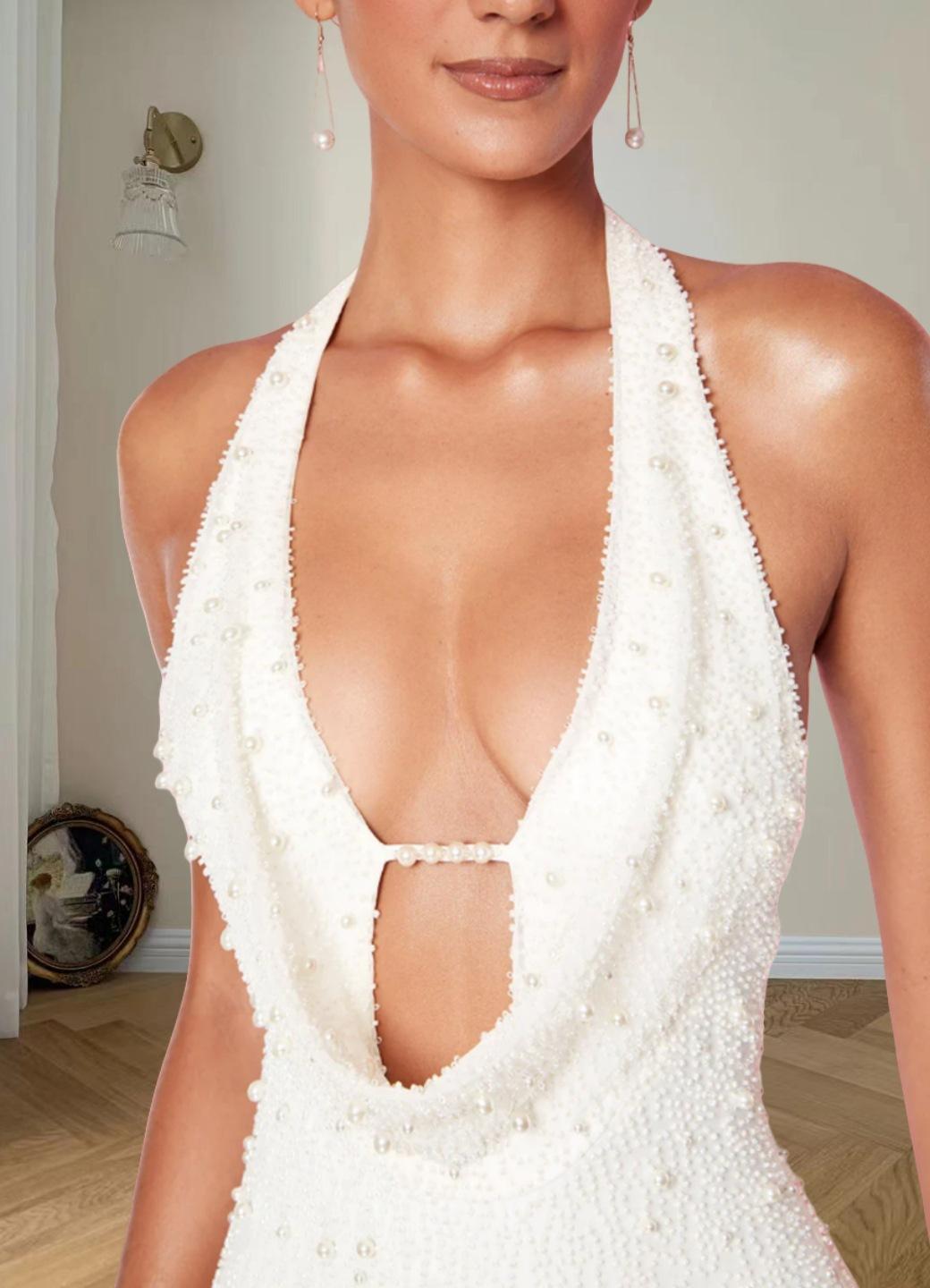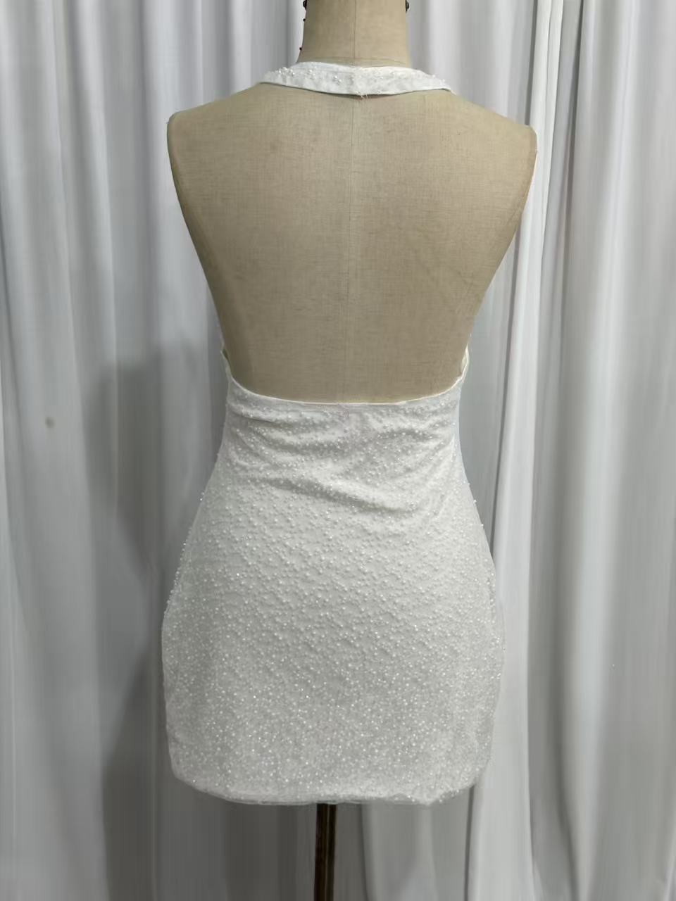 Falda Sexy de Chica Caliente Ajustada que Abraza las Caderas 2024 Invierno Nuevo Diseño con Cuentas Corte Profundo Abertura Halter Cuello Falda Corta